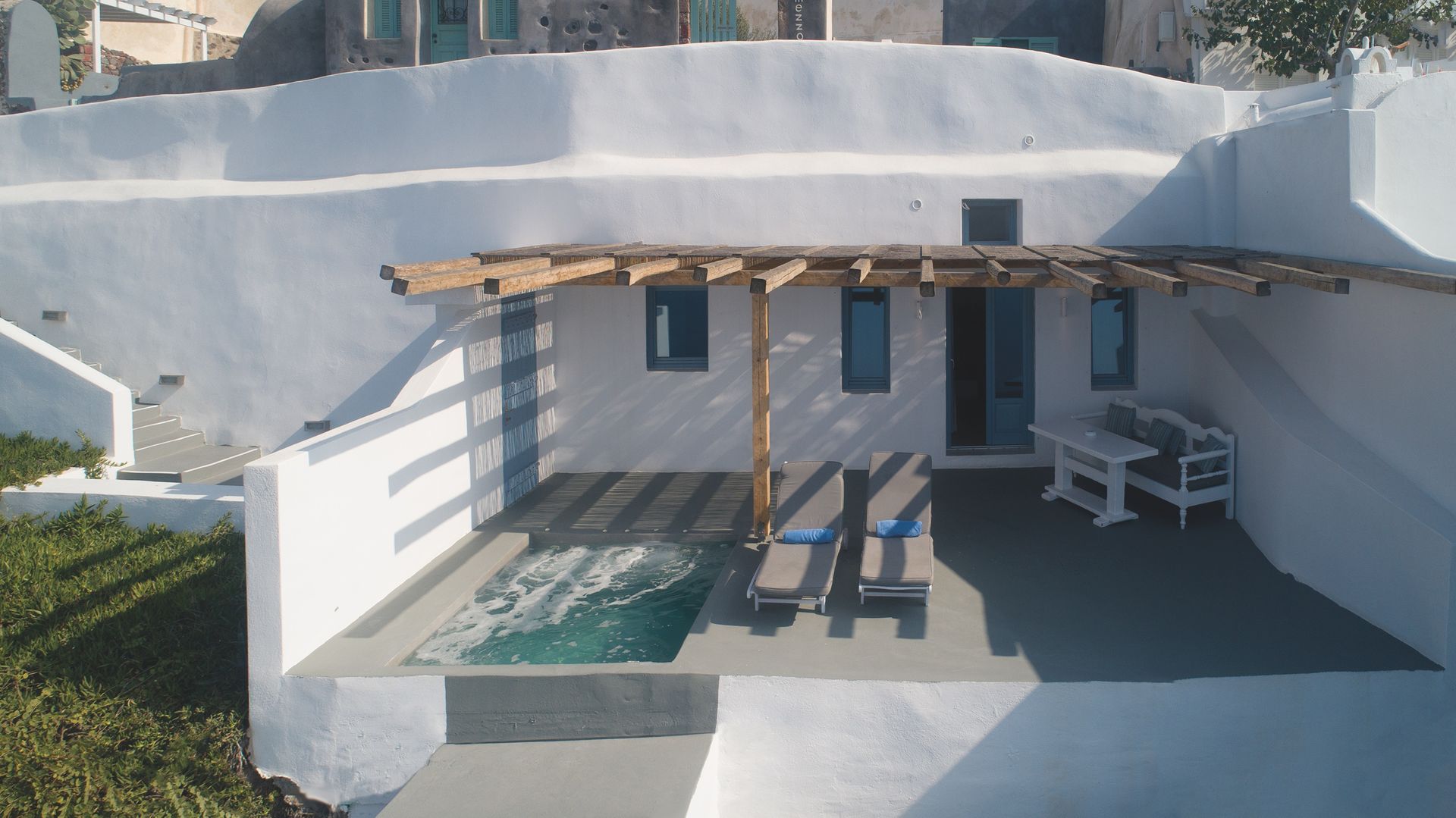 The house clinging to the edge of the cliff are considered the ultimate location because of the jaw-dropping view, but this villa beats it all because of a rare detail that you will only notice if you know Santorini.