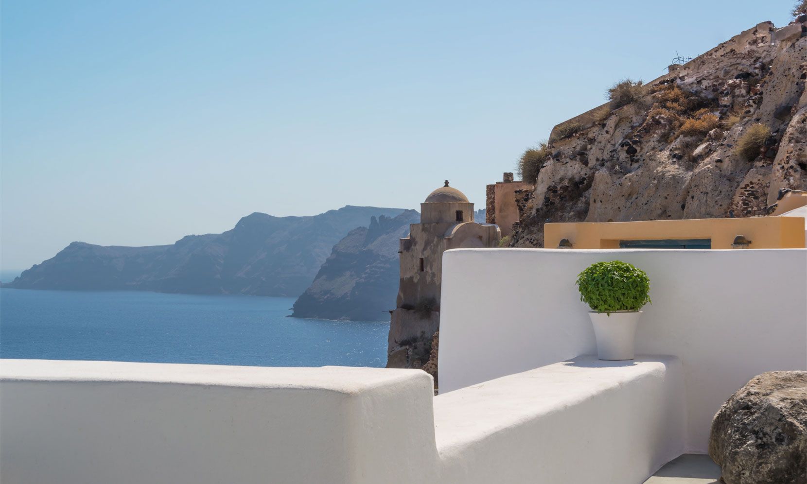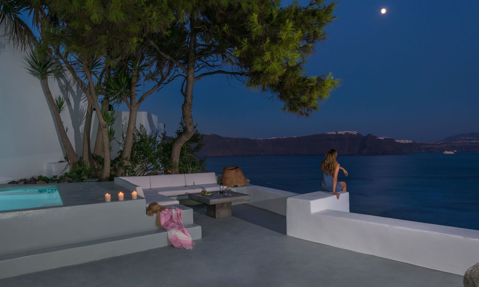 Santorini Villa Palma is a luxury, intimate hideaway for 2 on the beautiful island of Santorini, perfect for a romantic retreat. Situated in the boutique village of Oia near the Venetian Castle, on the lower paths facing into the caldera and with direct volcano views. The villa and terrace are canava-style renivated, the original features of curves and arches blend perfectly with the modern additions for luxury holiday comforts.