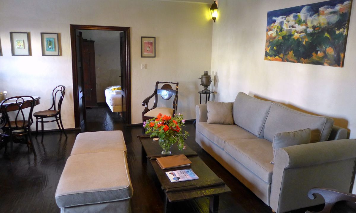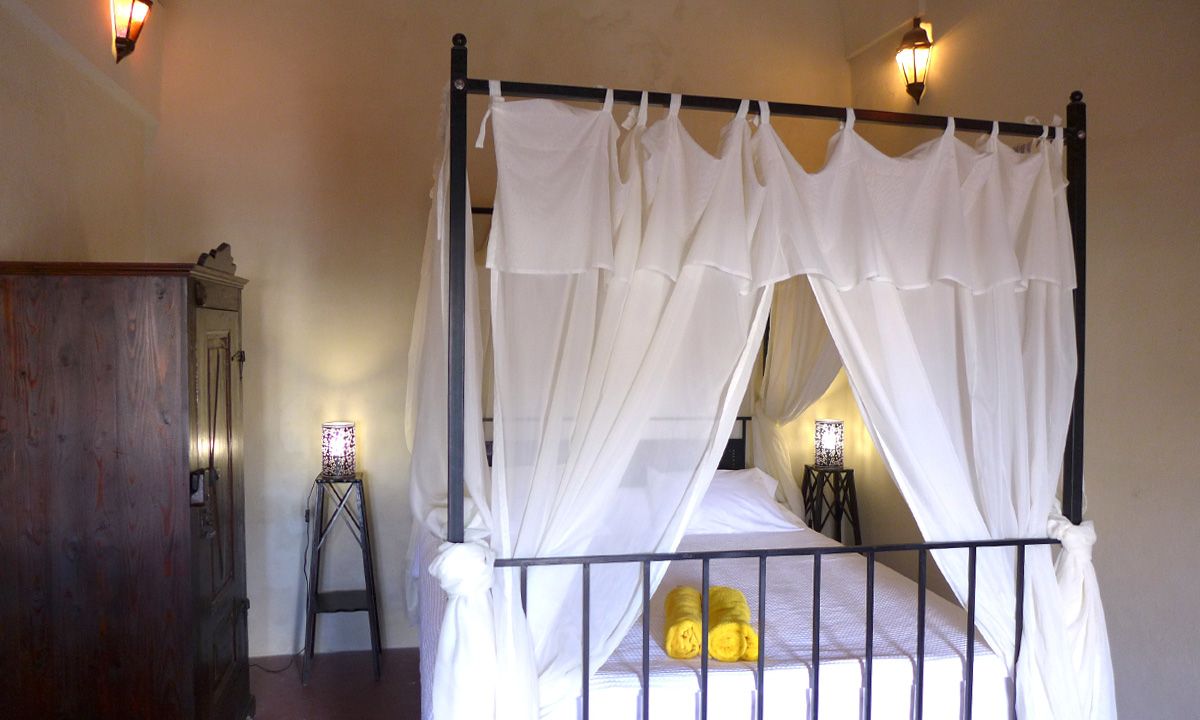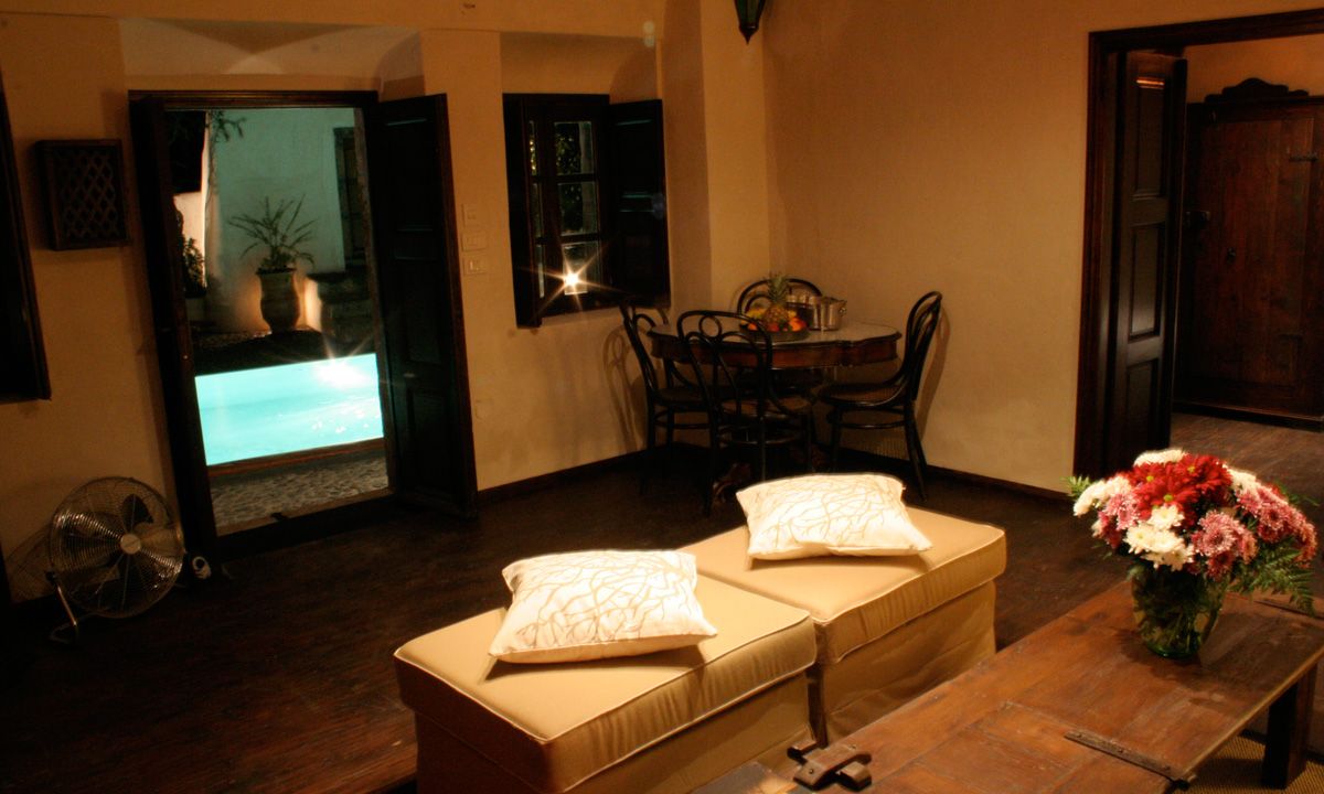 The villa has been beautifully renovated to provide all modern amenities, yet retaining the character and style of the original house. Double doors lead directly from the courtyard into a spacious living and dining area with superb high vaulted ceilings and original polished wooden floors. The two bedrooms lead off from either side of the central living room. One bathroom in hushed hues with modern amenities is shared between both bedrooms. The kitchen has an original stone arch which now serves as a washing up and preparation area. Modern amenities include air-conditioning in both bedrooms, free internet access, satellite TV & DVD, Ipod&Ipod docking station and a complimentary mobile phone.