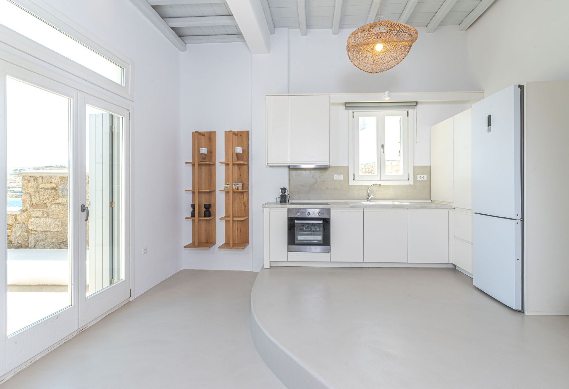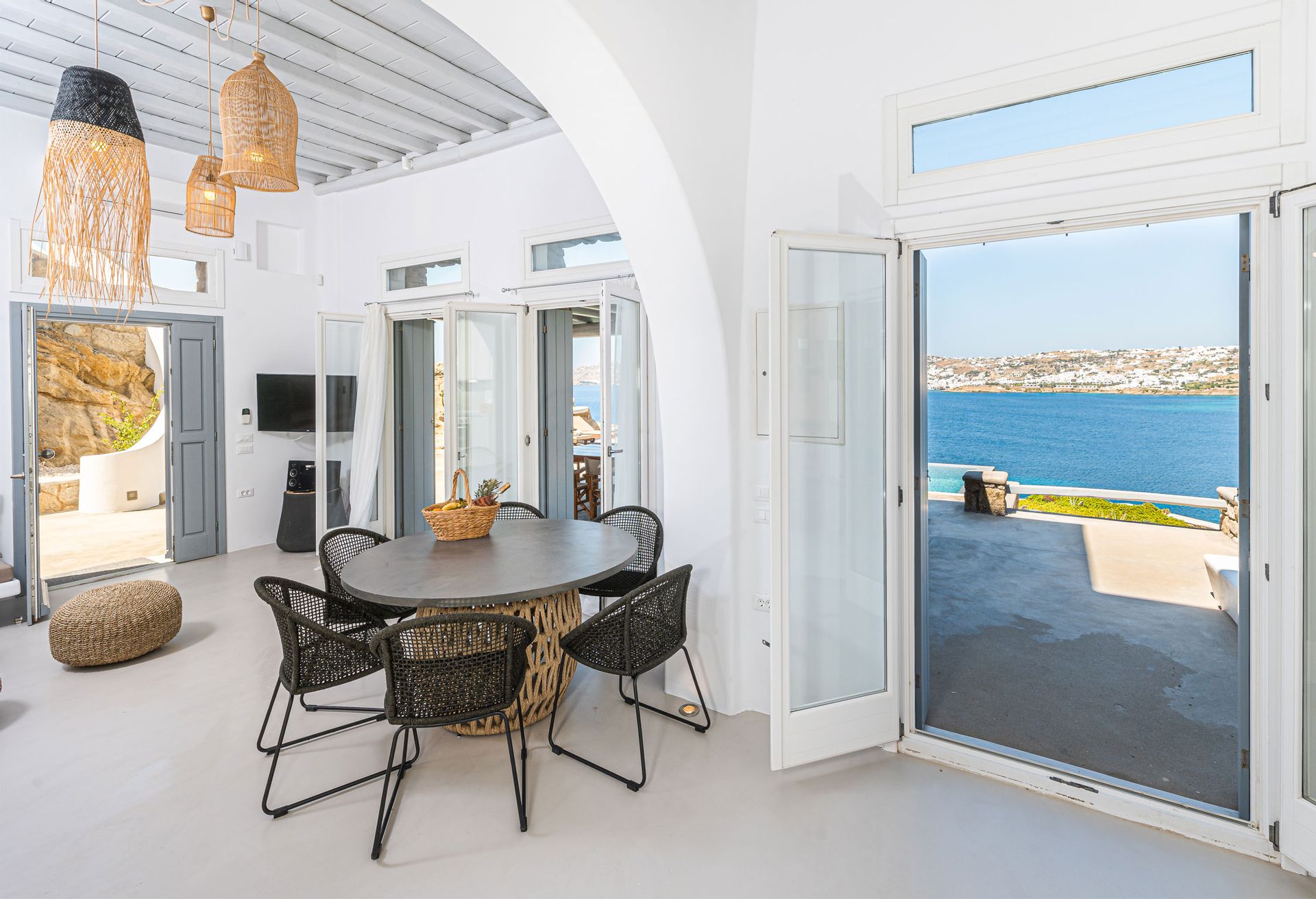 A 160 square meters, two-level property, all in white, perched on a hillside with breath-taking, panoramic views over the Aegean Sea boasting a large open plan living area indoors and outdoors and offering privacy and seclusion in a very idyllic spot.