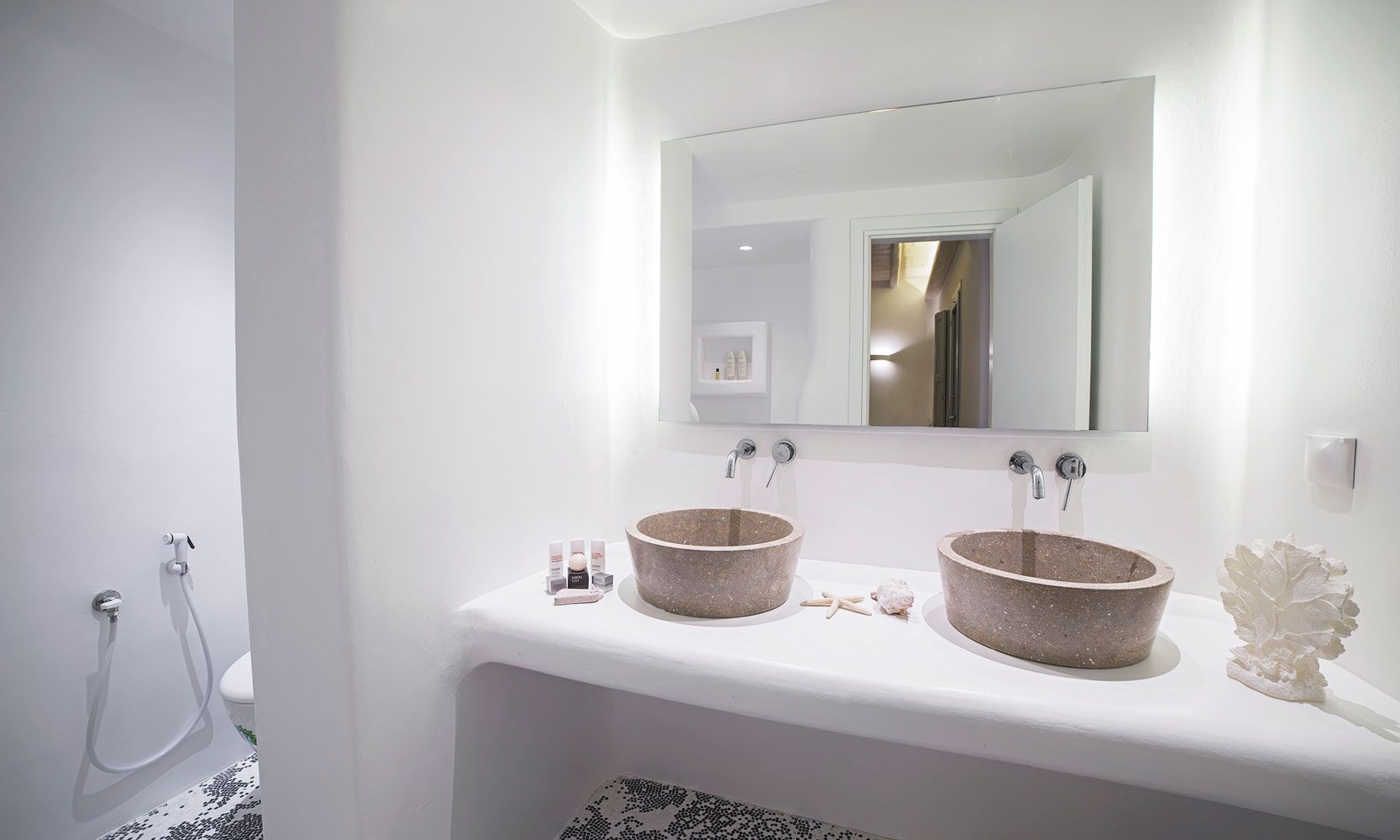 Each room has a private bathroom and the living room has a guest toilet.