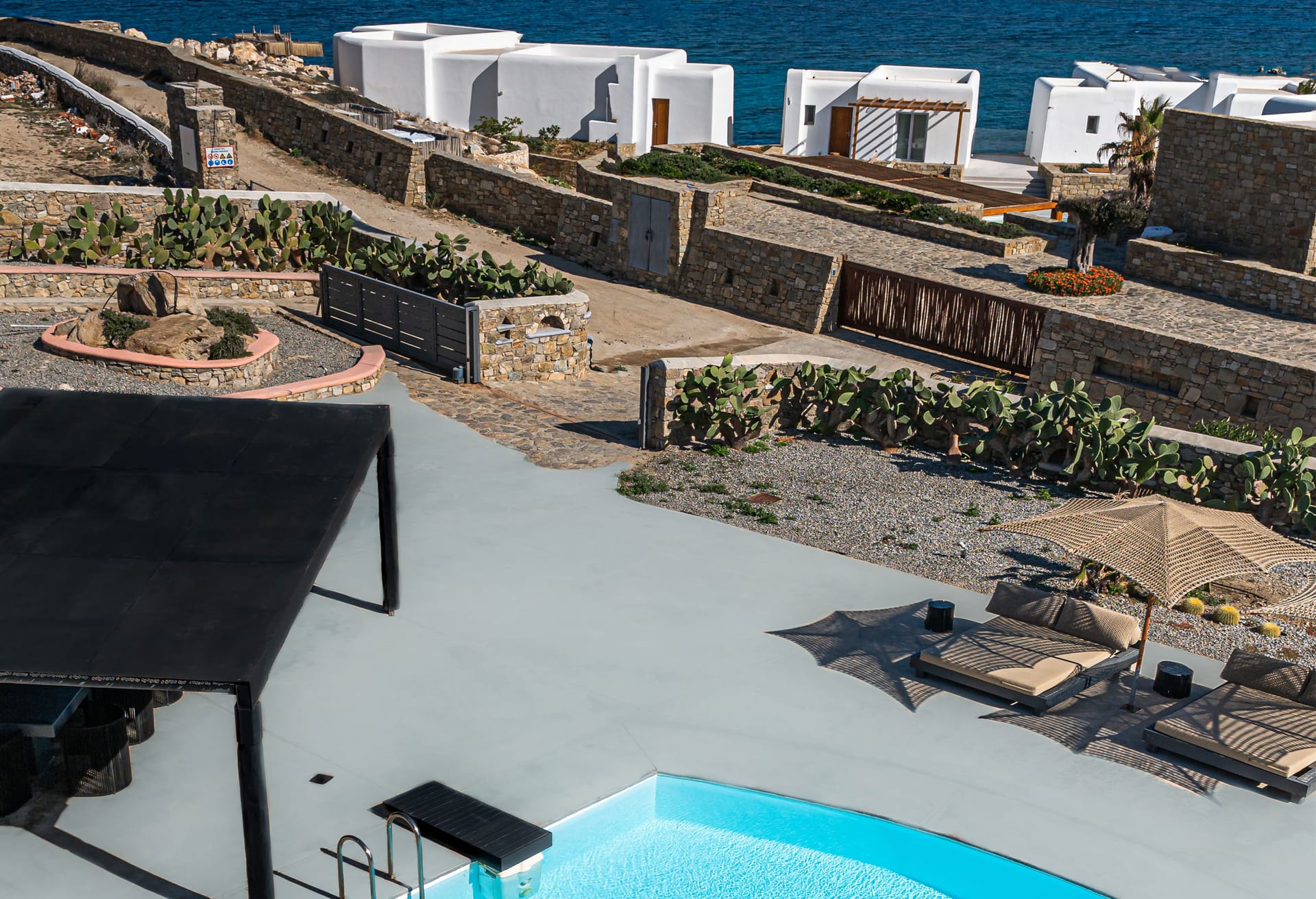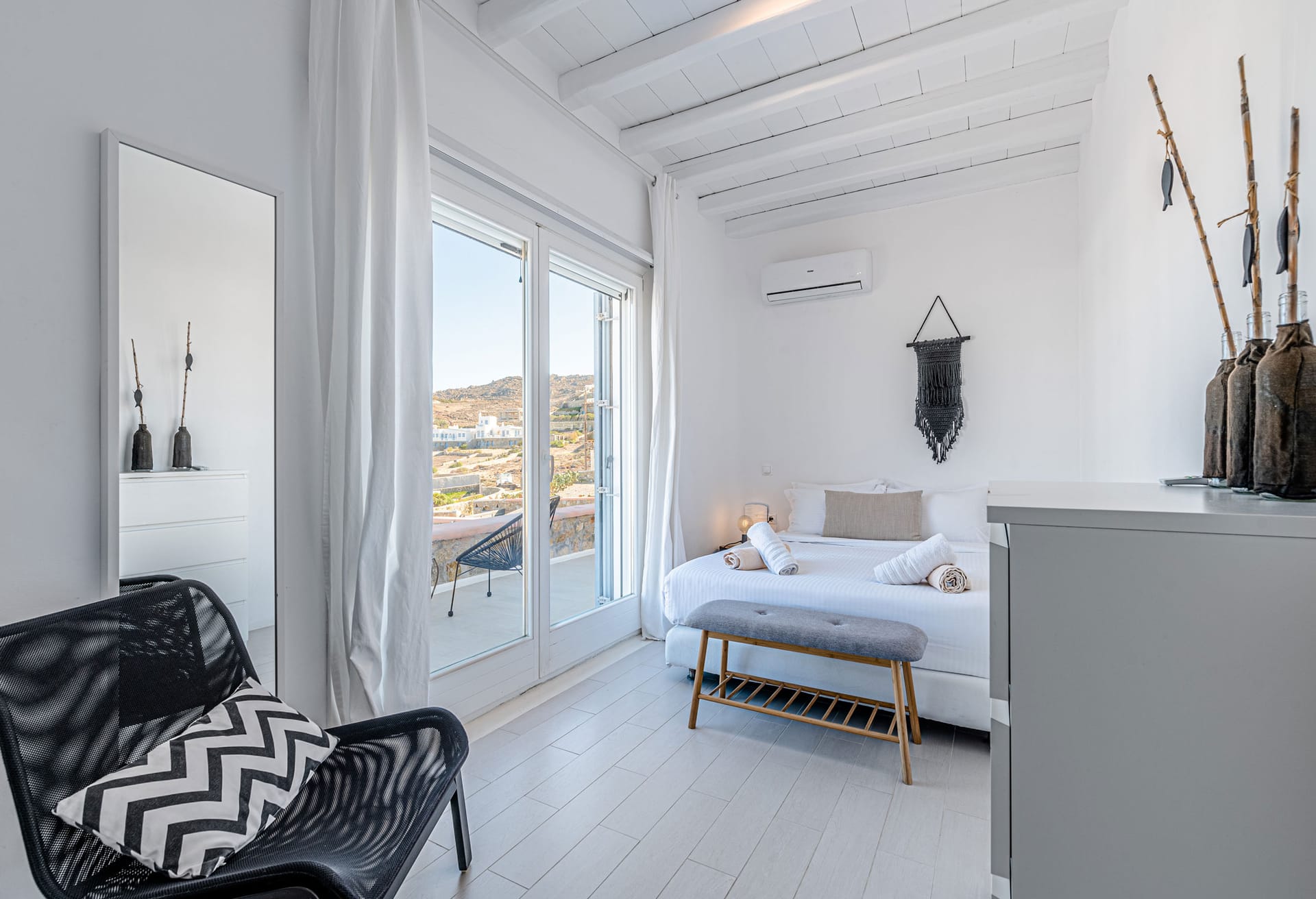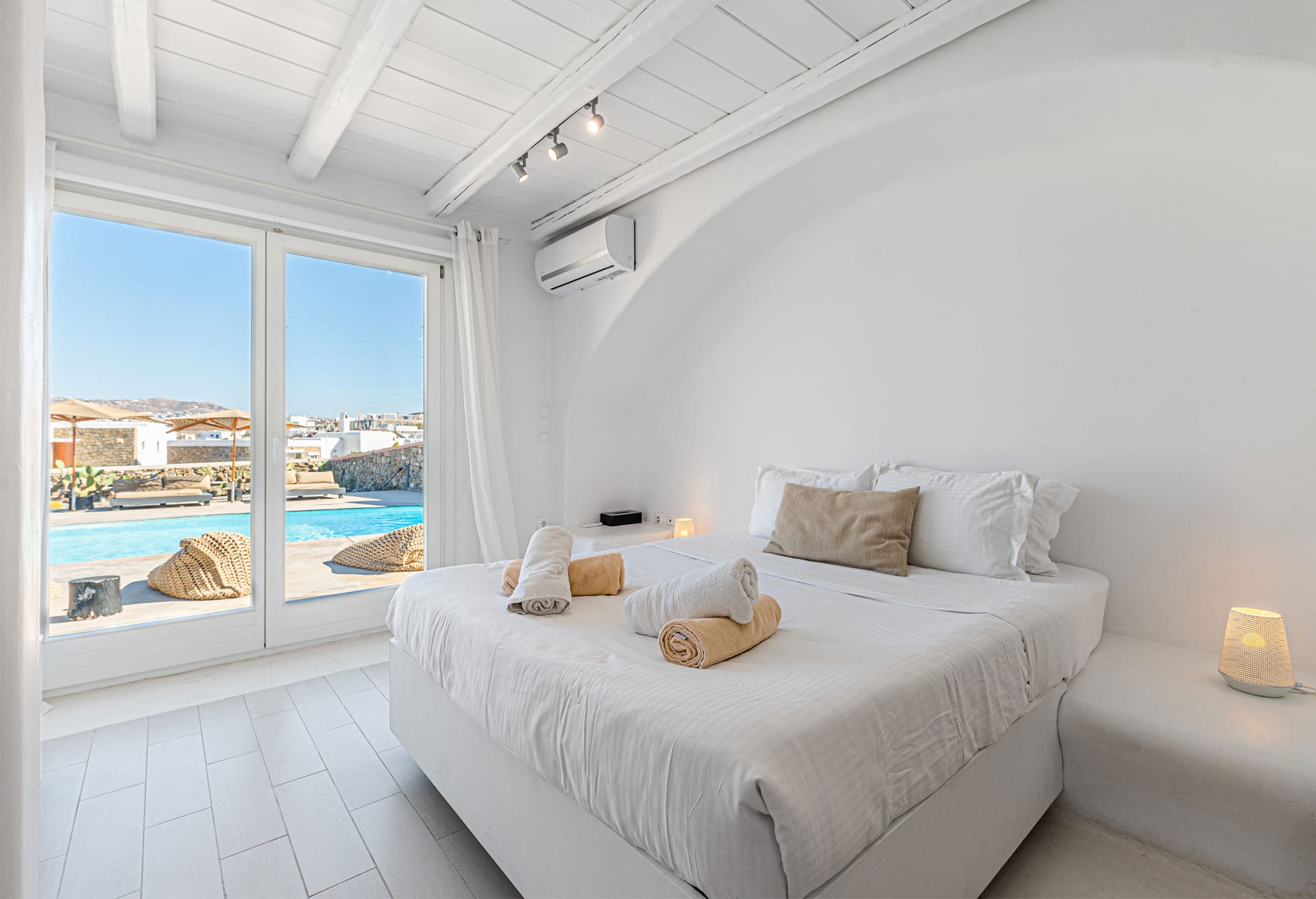 From your secluded location, you can have views across the sparkling blue waters of the Aegean Sea and Mykonos Town.