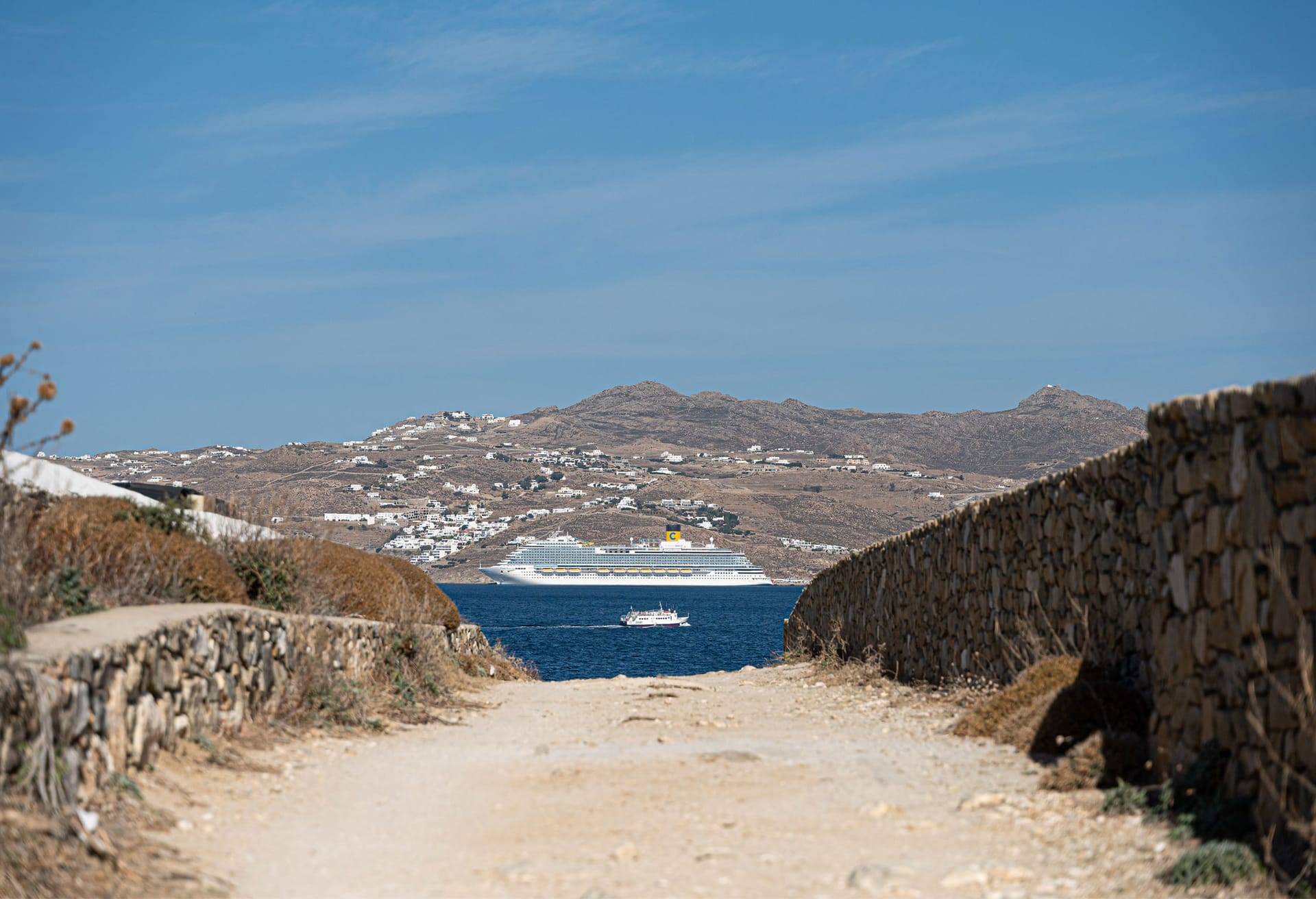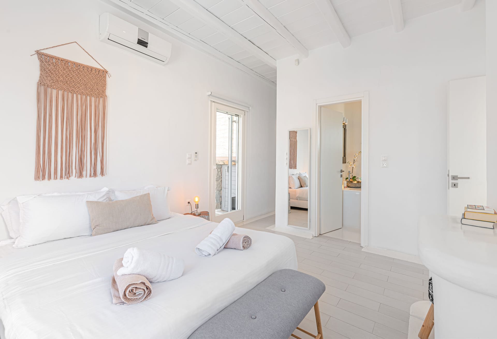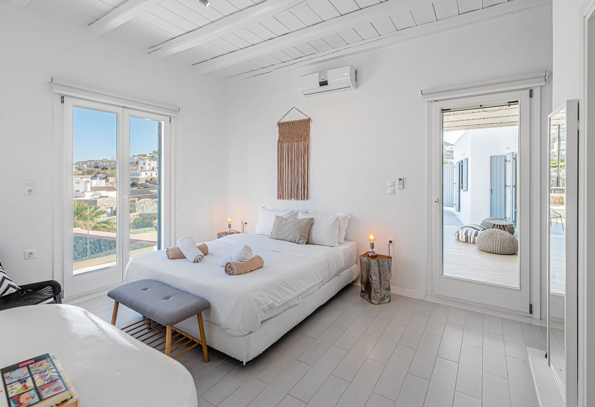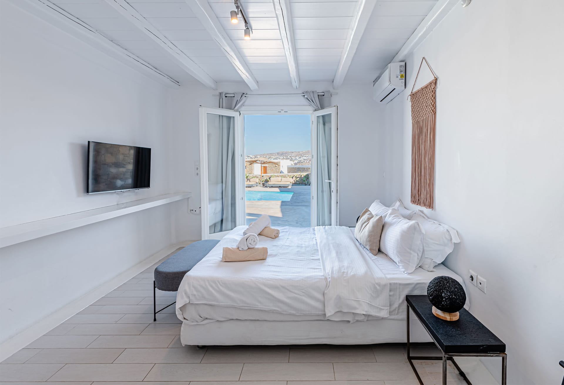 From your secluded location, you can have views across the sparkling blue waters of the Aegean Sea and Mykonos Town.