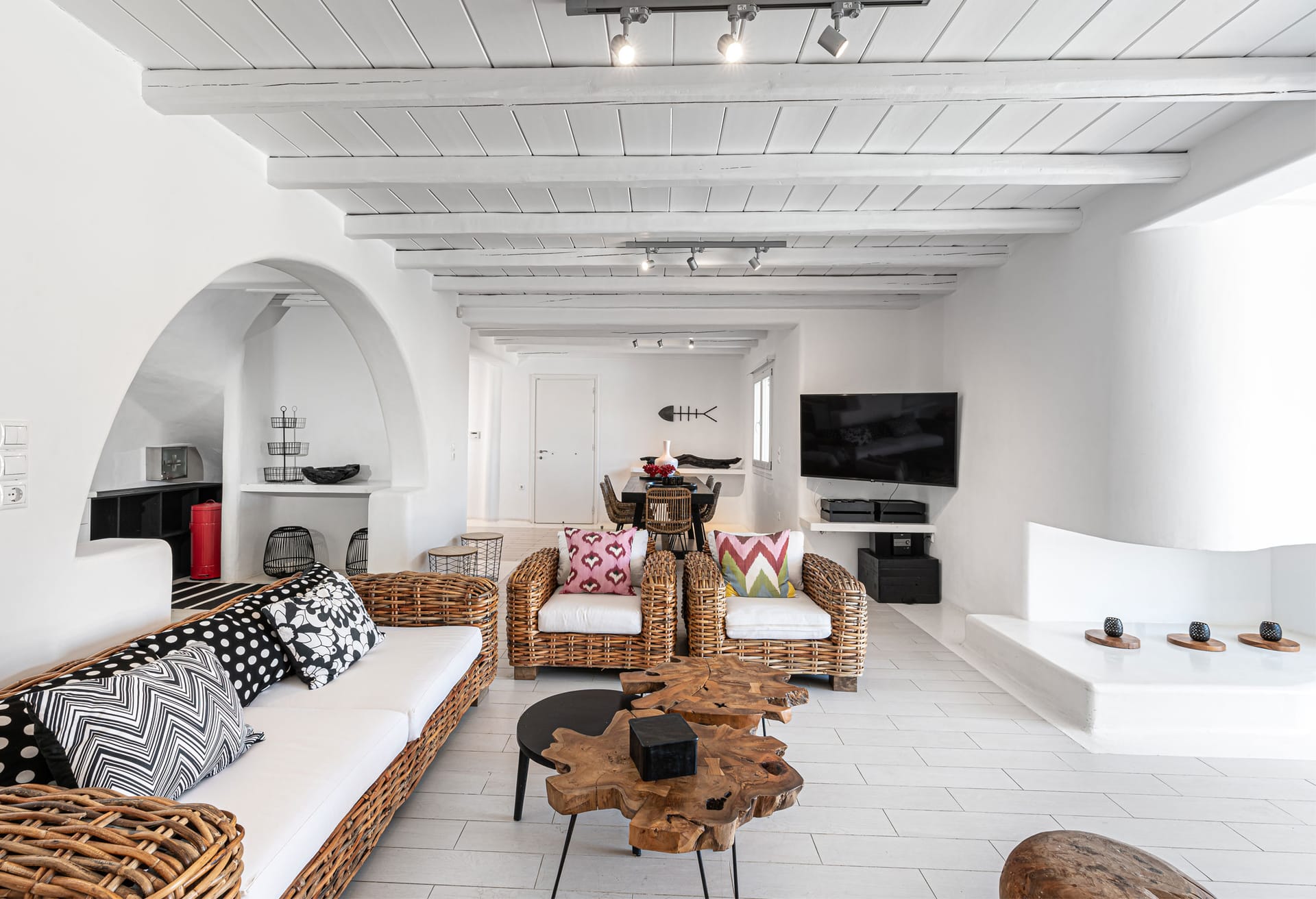 The traditional Greek touch is fused with the luxurious and tasteful design of the villa and the colorful sunset view complete the perfect picture that makes every Greek myth a reality.