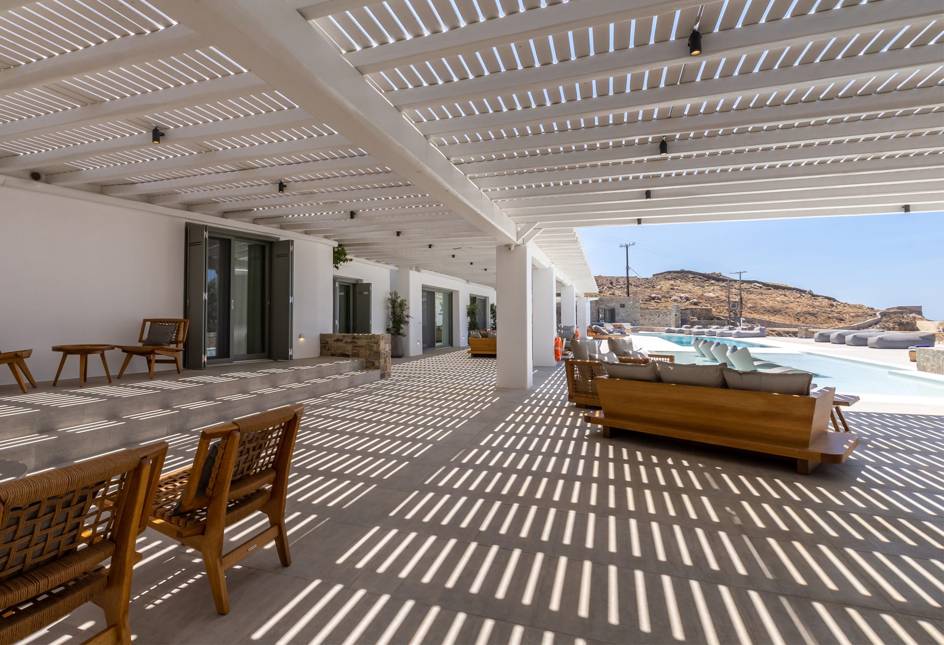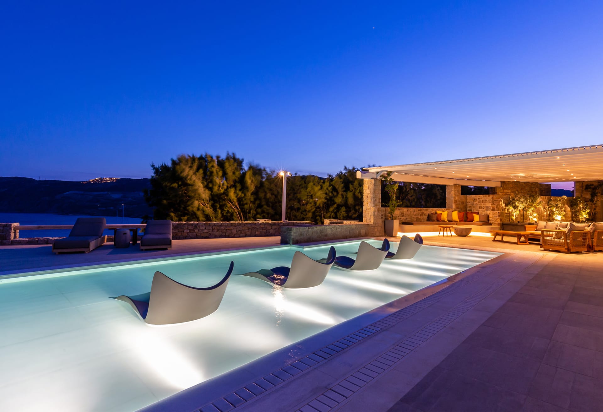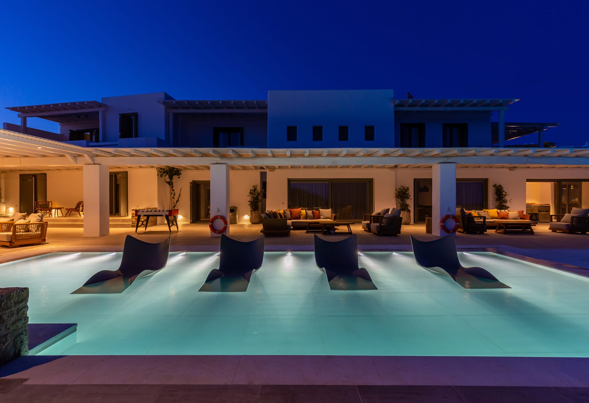 Villa Azeus is a luxury property, ideally placed in the famous island of Mykonos. Azeus is the best location for luxury accommodation of large groups, sleeps 38, as well as for spectacular high-end events featuring exceptional