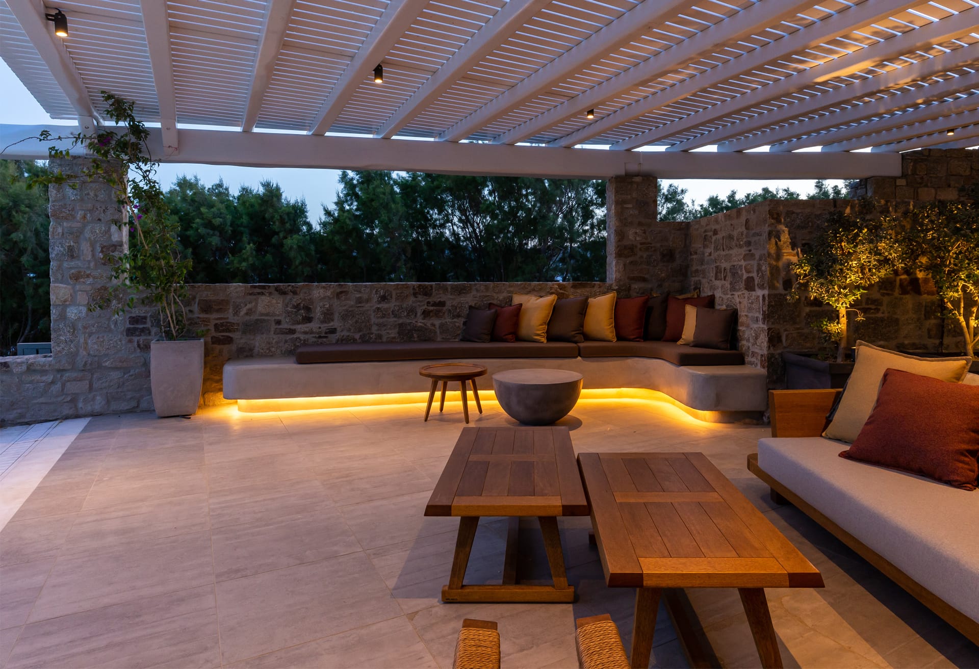 – Grand Shaded living space with dining area, sits 40 guests close to the BBQ area for romantic dinners or live evenings with music and BBQ delicacies prepared for the unique guests.