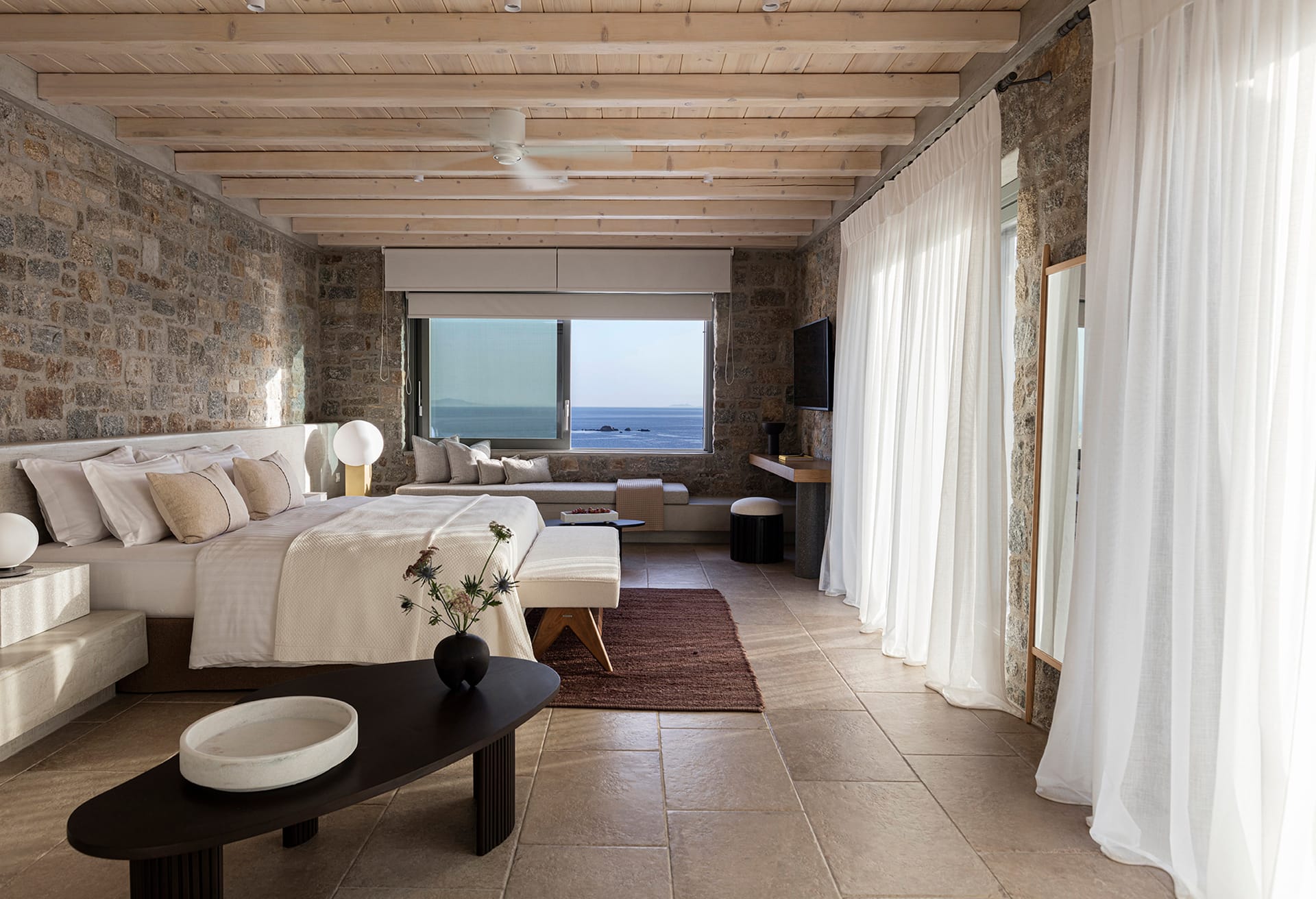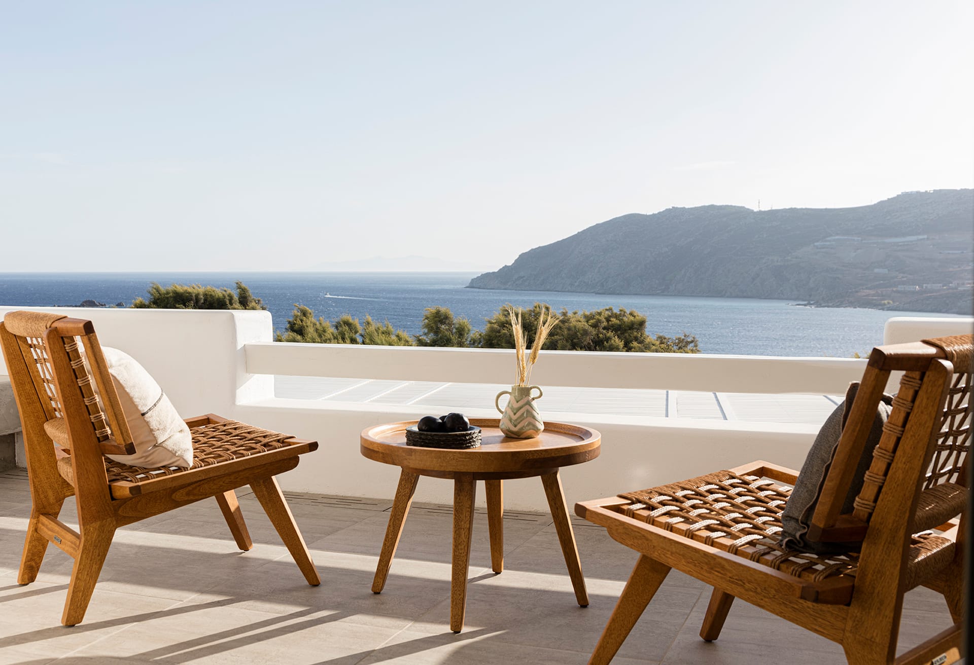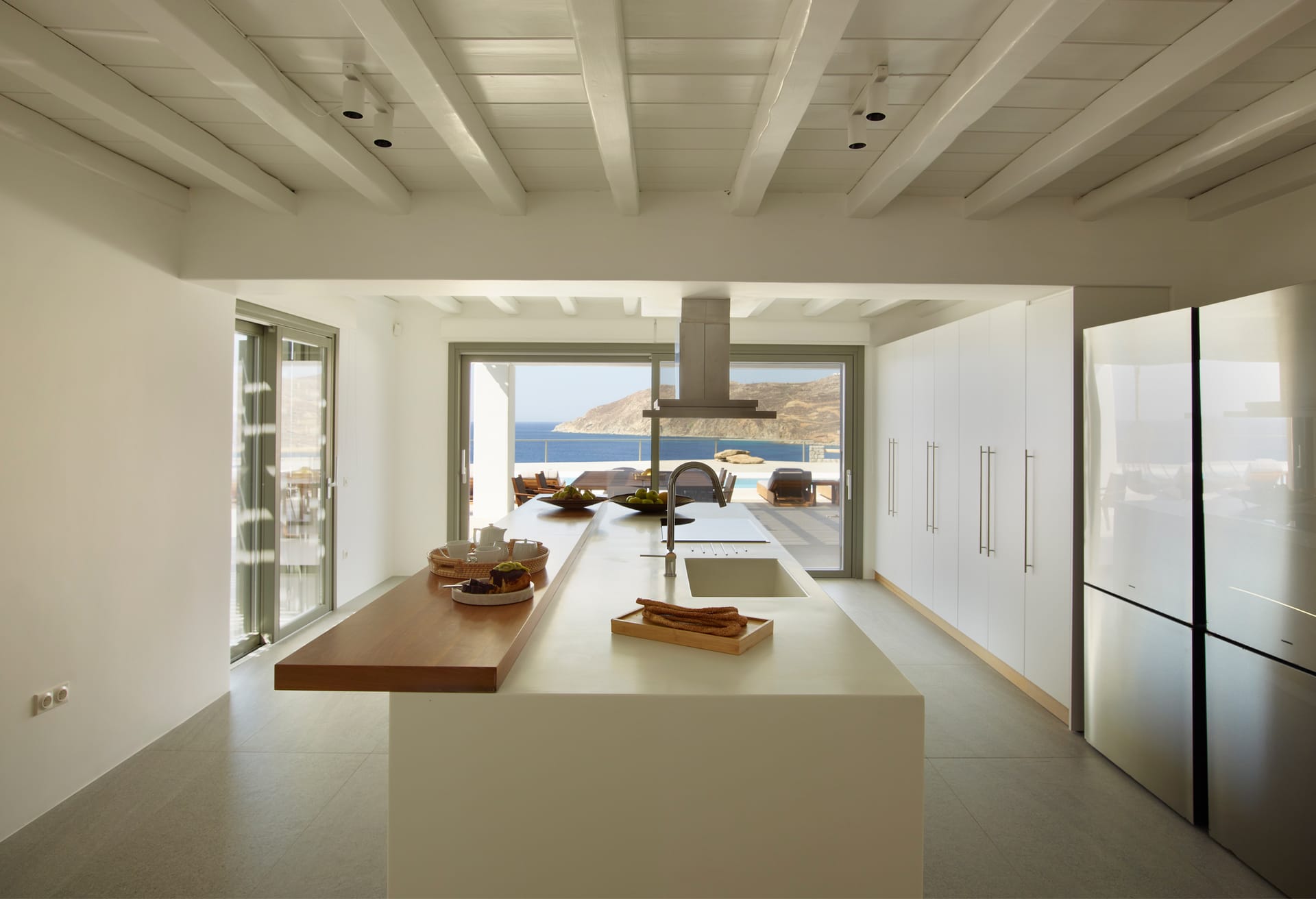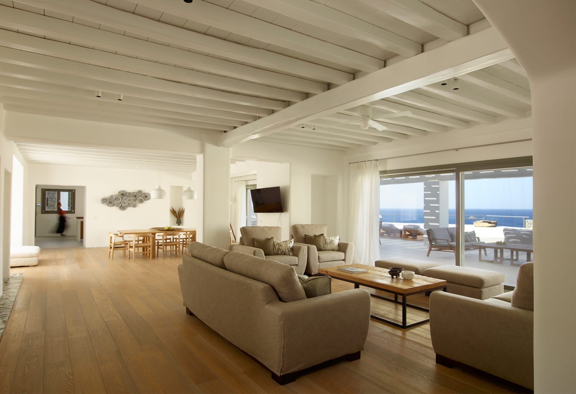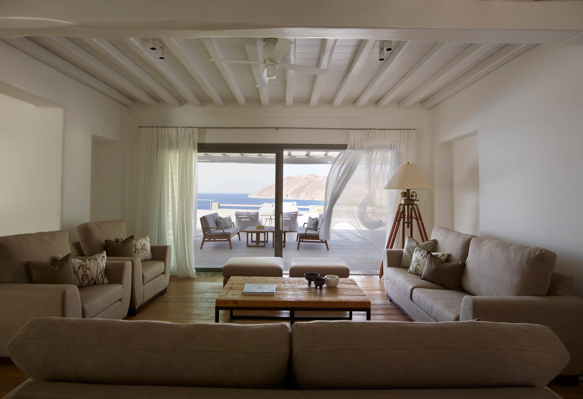 This unique Villa with magnificent sea view is built on top of the sea in walking distance 1-3 minutes, from the seaside and the most beautiful beaches of Kalo Livadi Mykonos. Not far from Villa Azeus you will find the idyllic beaches of Agia Anna & Kalafatis, as well as for their great restaurants such as Solymar at Kalo Livadi & Spilia at Agia Anna.