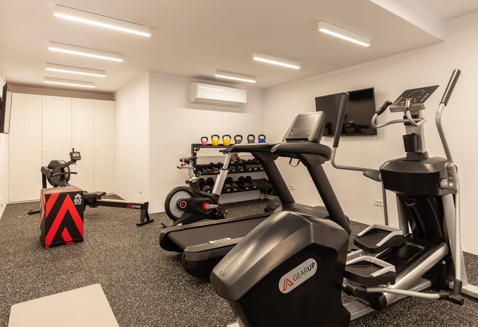– Gym fully equipped (2 treadmills, 1 steady bicycle, 1 multi-functional fitness machine, Fitness dumbbells, gym mats)