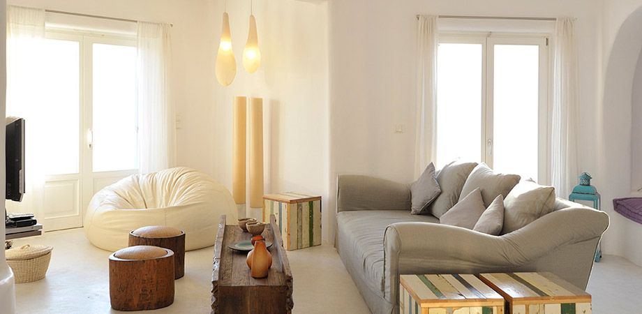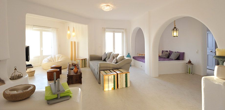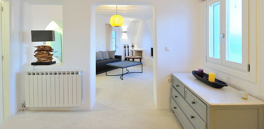 This luxury villa occupies the highest position of the “ Berenice Villas in Mykonos ” complex and offers the most panoramic view of the Aegean and surrounding islands from a vantage point. It can be used as one house or two separate accommodation areas. The two- floor villa has a configuration that can be utilized as two apartments to suit your own individual needs.