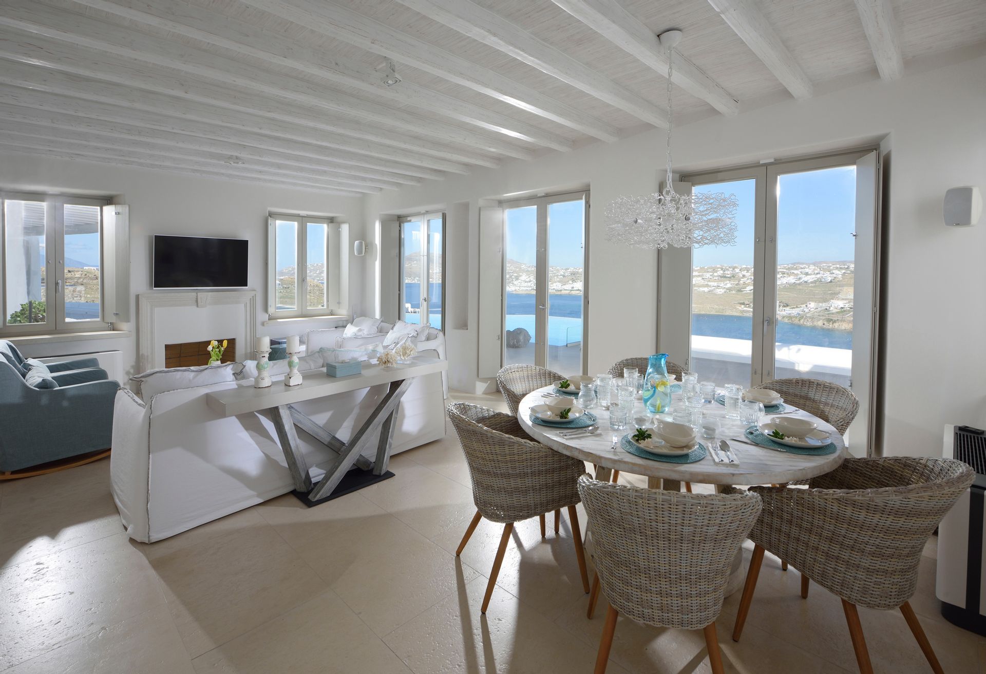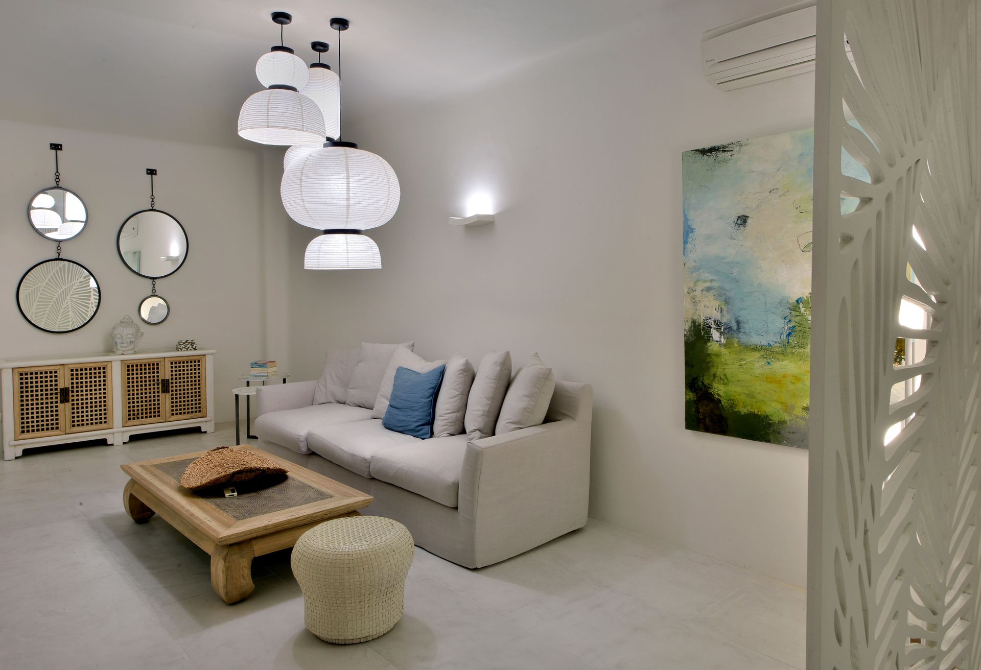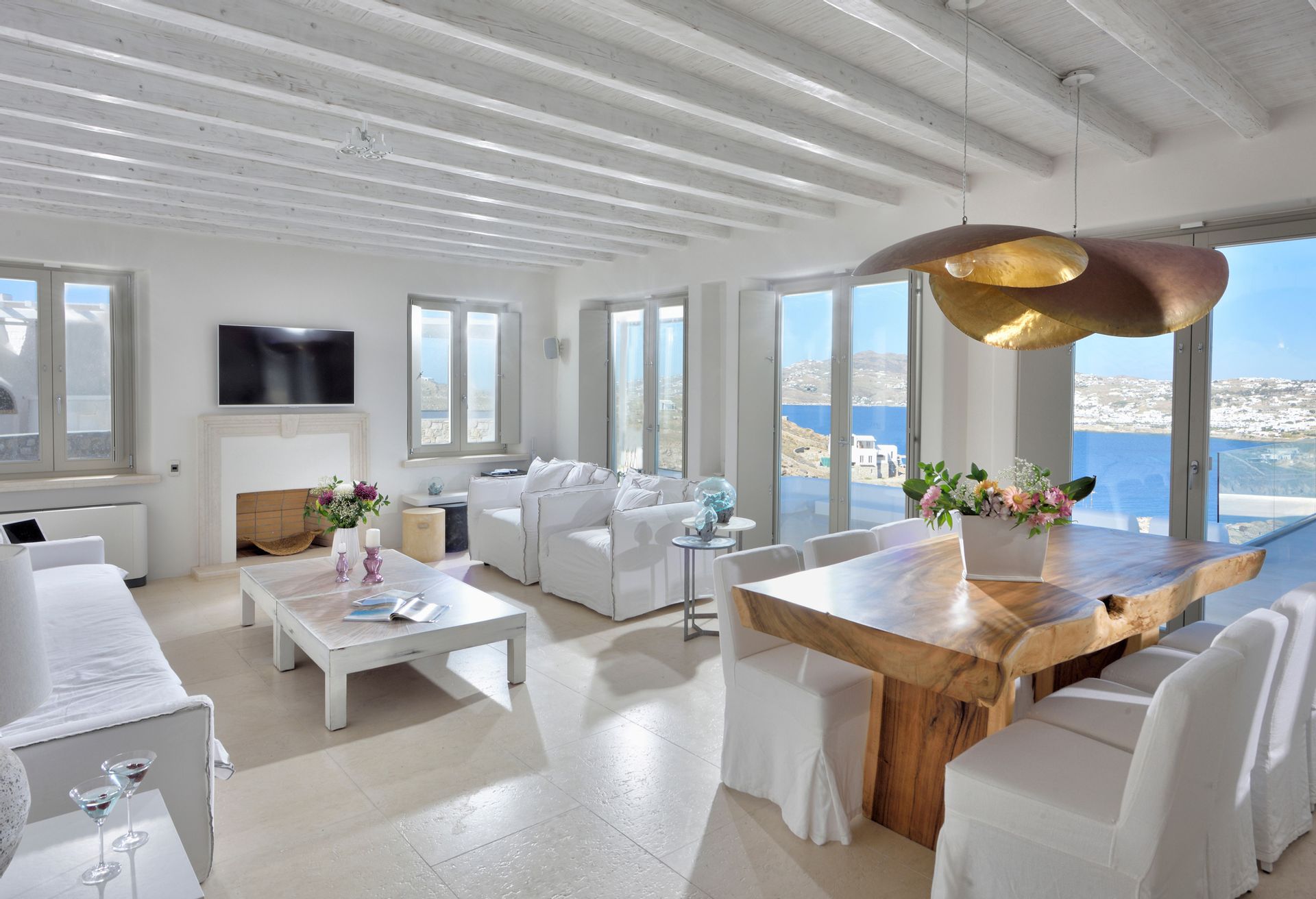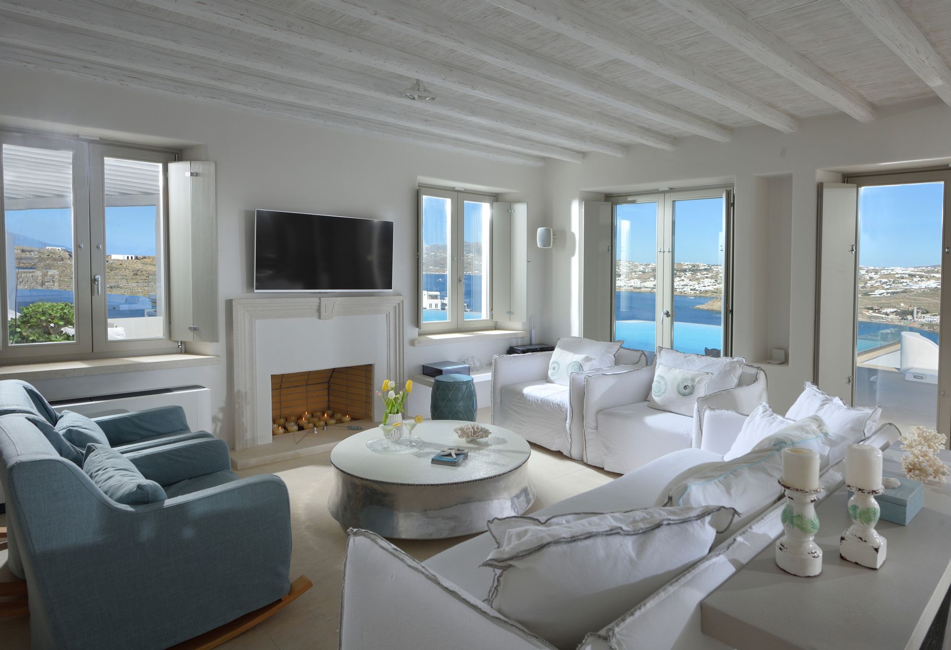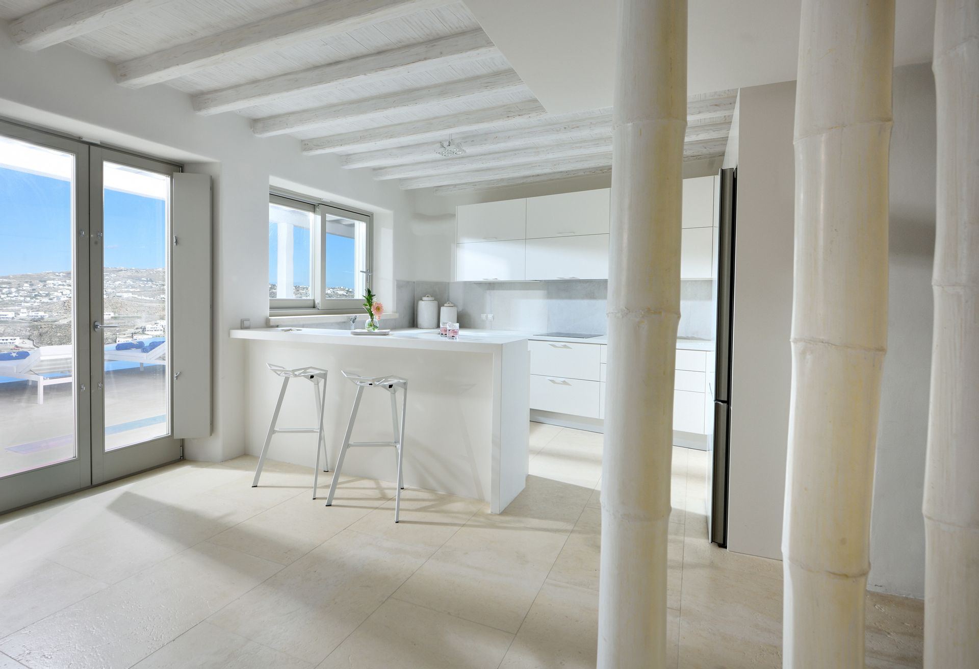 Villa Blance is a brand new property nested in the hills above Ornos Bay. The elevated position grants both great views over the Aegean sea and Mykonos Town with great level of privacy, both of which can be enjoyed from the various outdoor spaces.