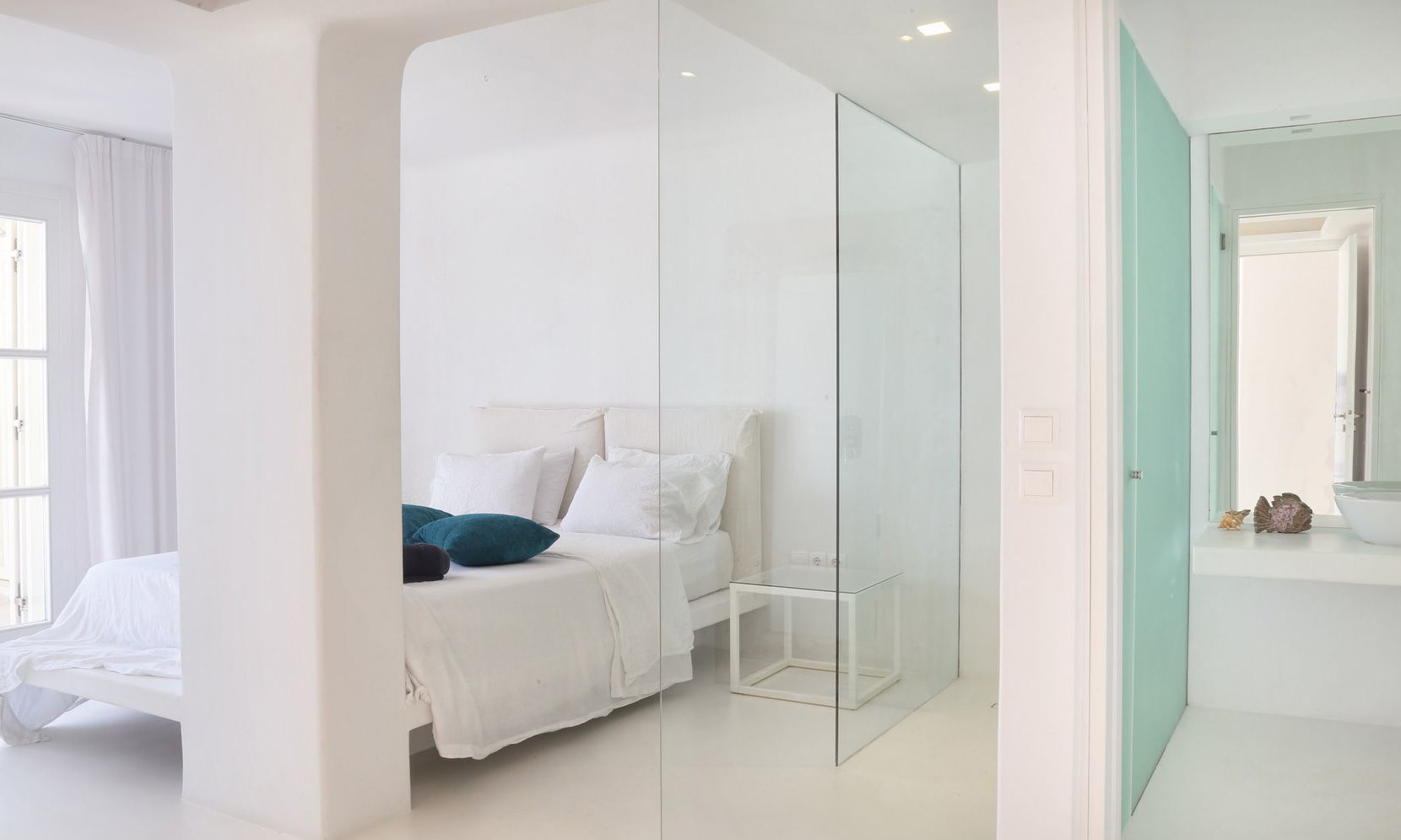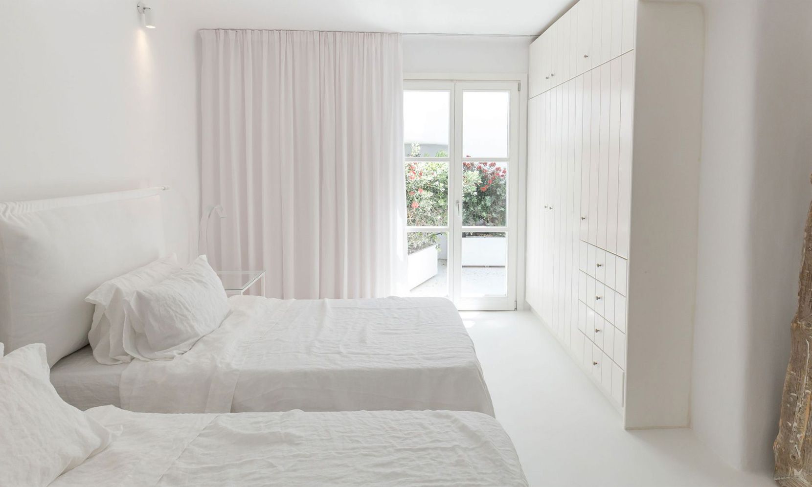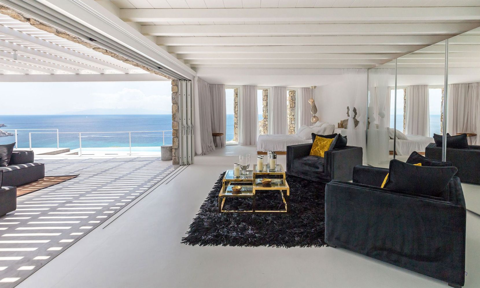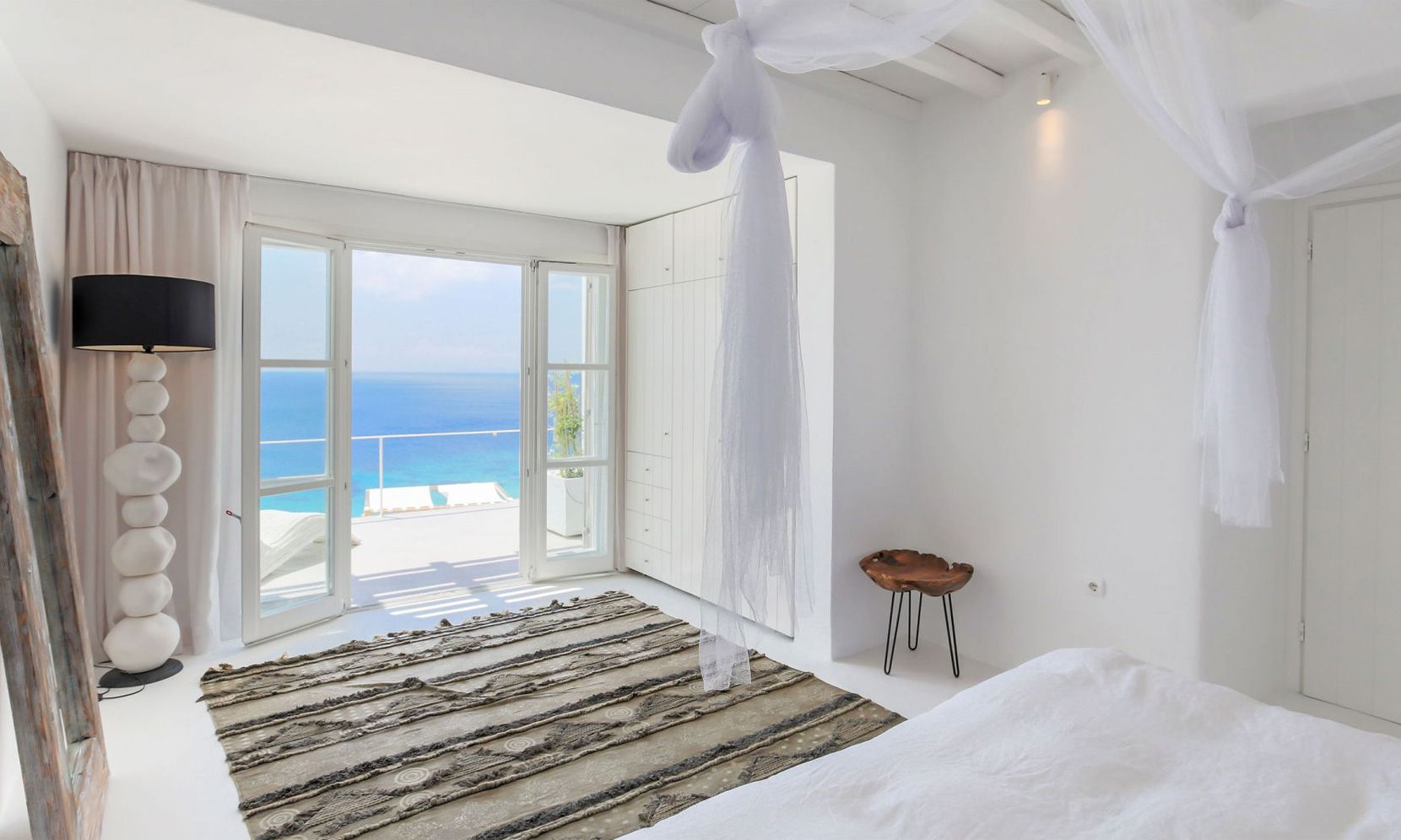 The same theme is found in the property’s bedrooms, some of which might not have the same view as the others but are all appointed in a stylish manner to assure a chic ambience to all. Brigitte is a great property to get away from the more busy areas of Mykonos during the crowded summers and cherish moments of relaxation in a refined atmosphere or delve in the beach life of Elia just close by.