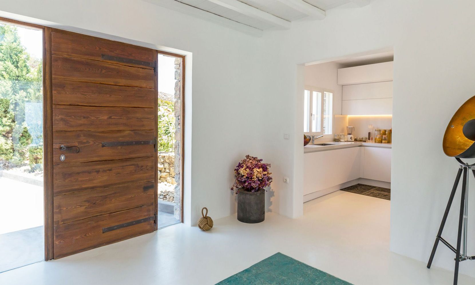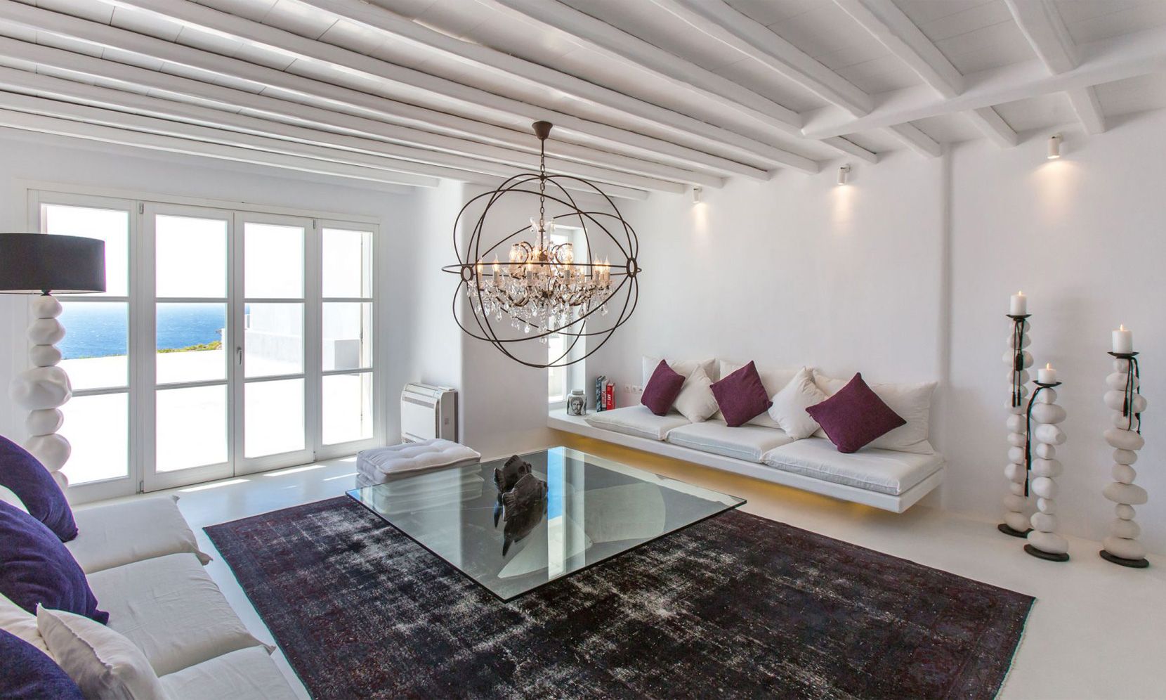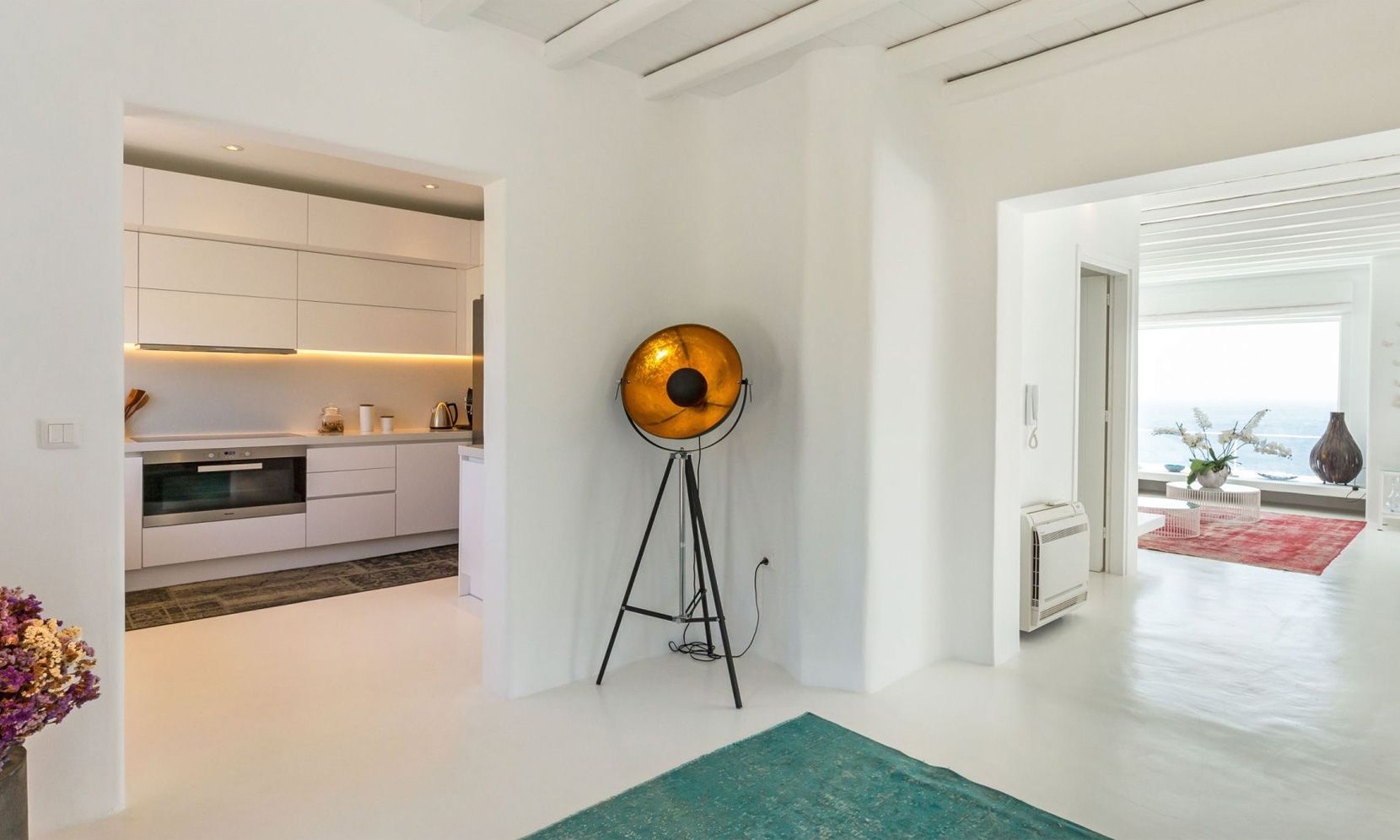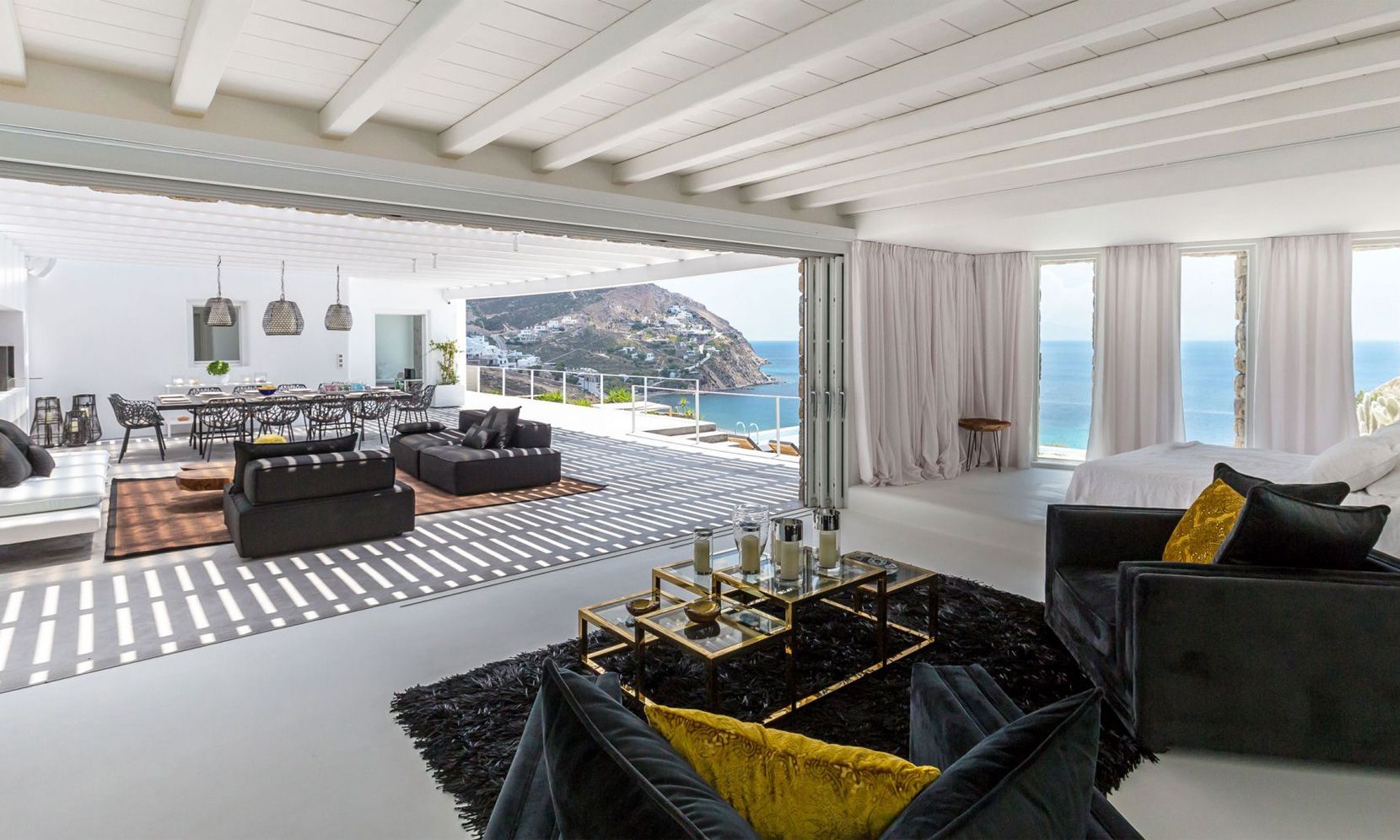 The same theme is found in the property’s bedrooms, some of which might not have the same view as the others but are all appointed in a stylish manner to assure a chic ambience to all. Brigitte is a great property to get away from the more busy areas of Mykonos during the crowded summers and cherish moments of relaxation in a refined atmosphere or delve in the beach life of Elia just close by.