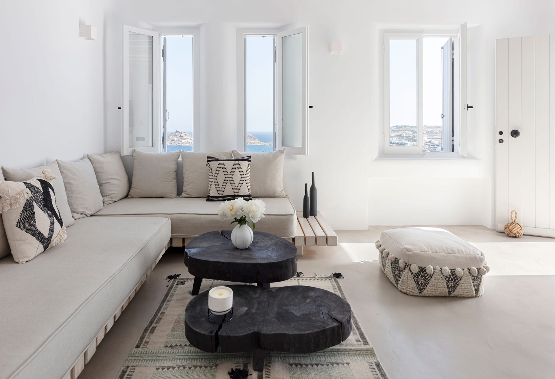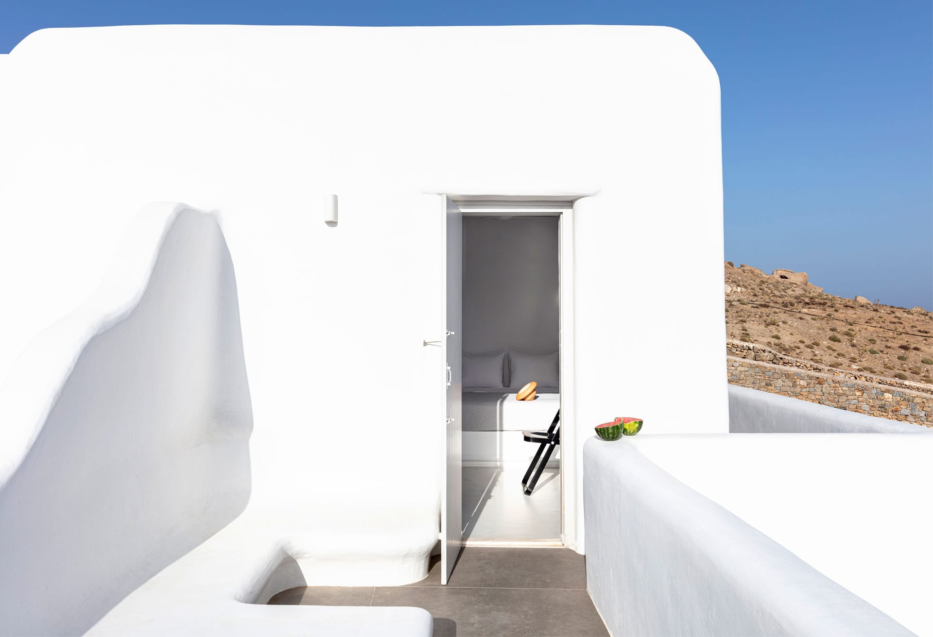 Designed to offer guests the utmost of a relaxed lifestyle, comfort and privacy in the middle of cosmopolitan Myconos, no detail here has been overlooked. The five bedroom villa is both in line with the local Myconian architecture, while including all luxuries of a contemporary lifestyle. They make the perfect accommodation for groups of friends and families alike.