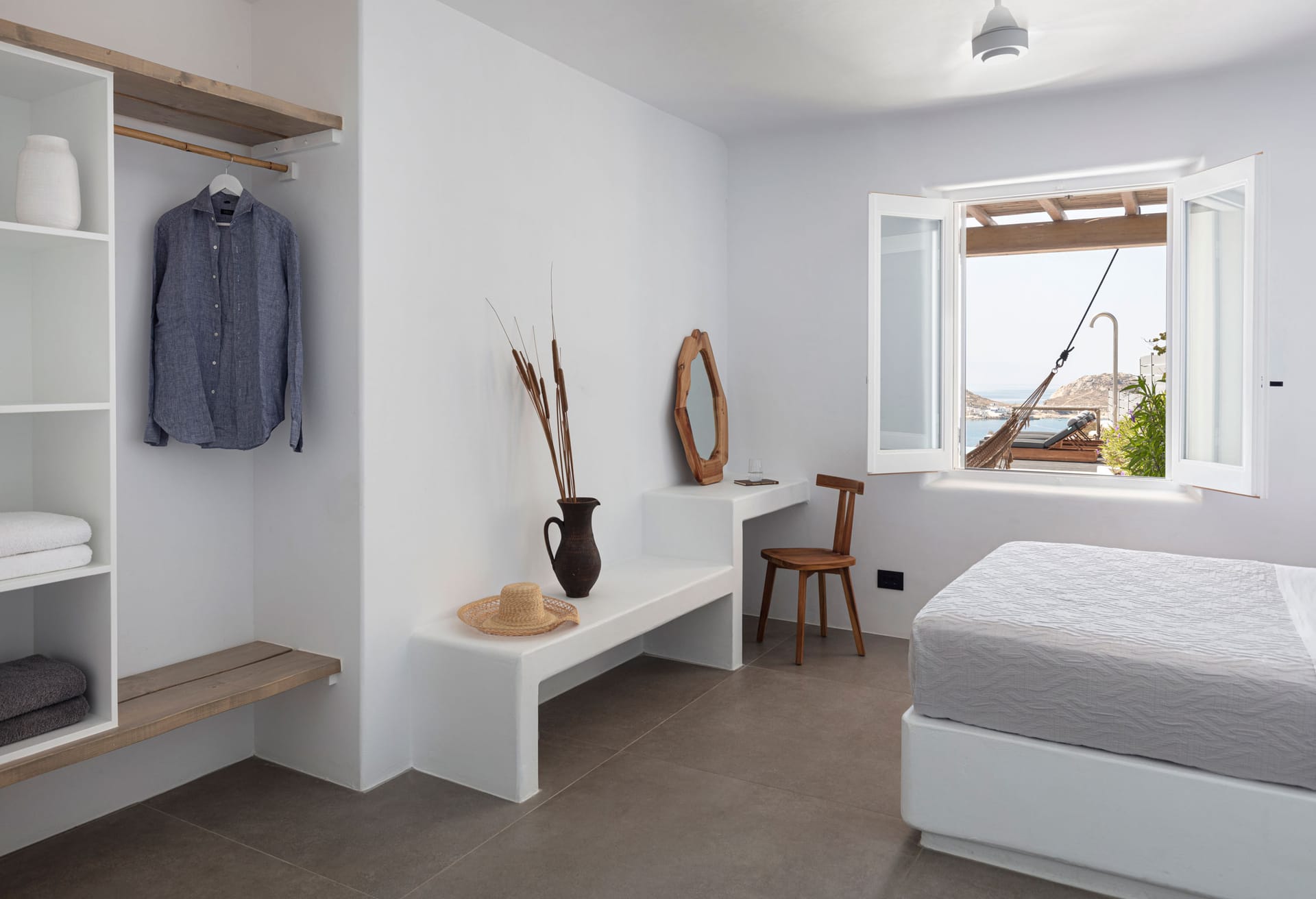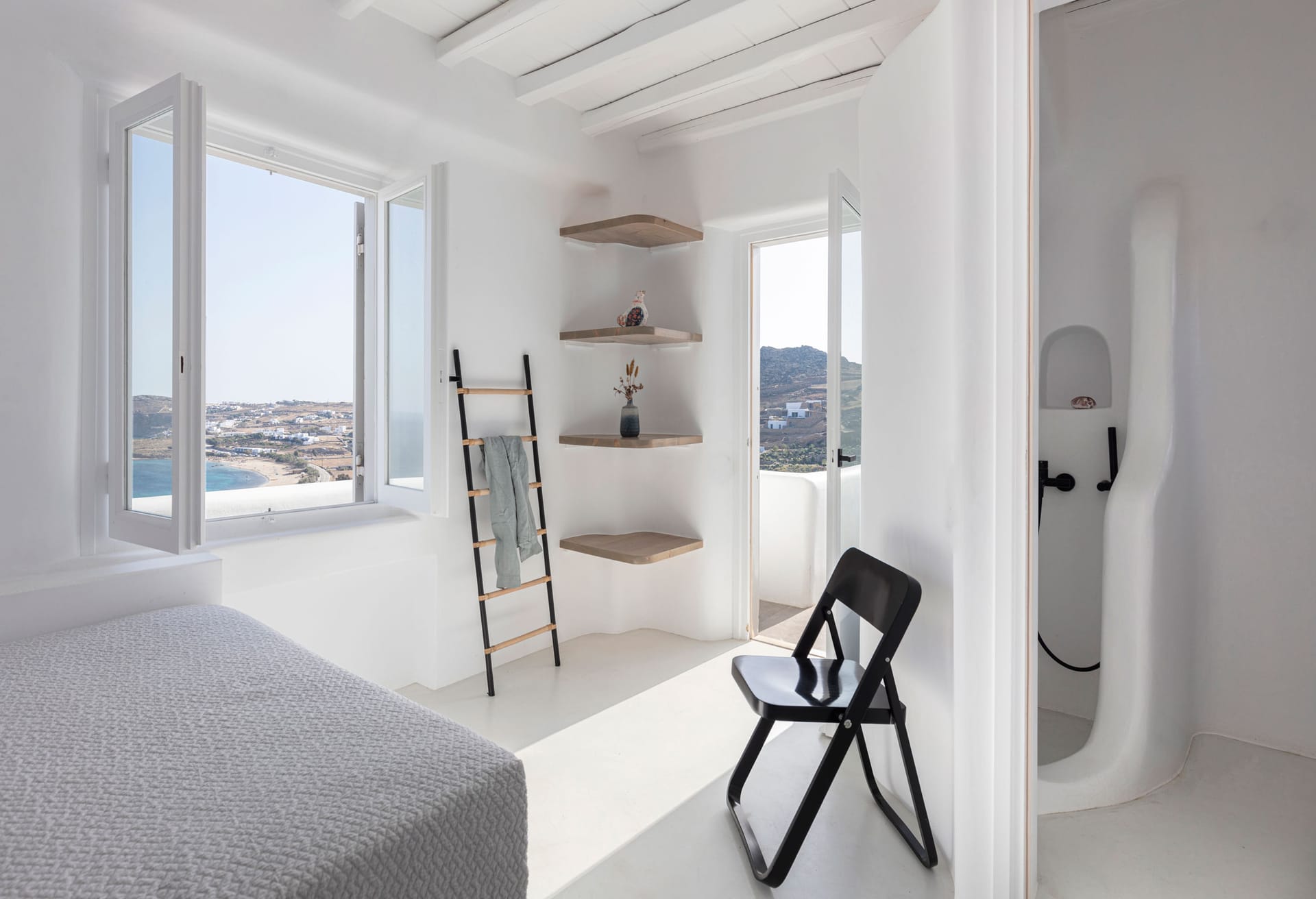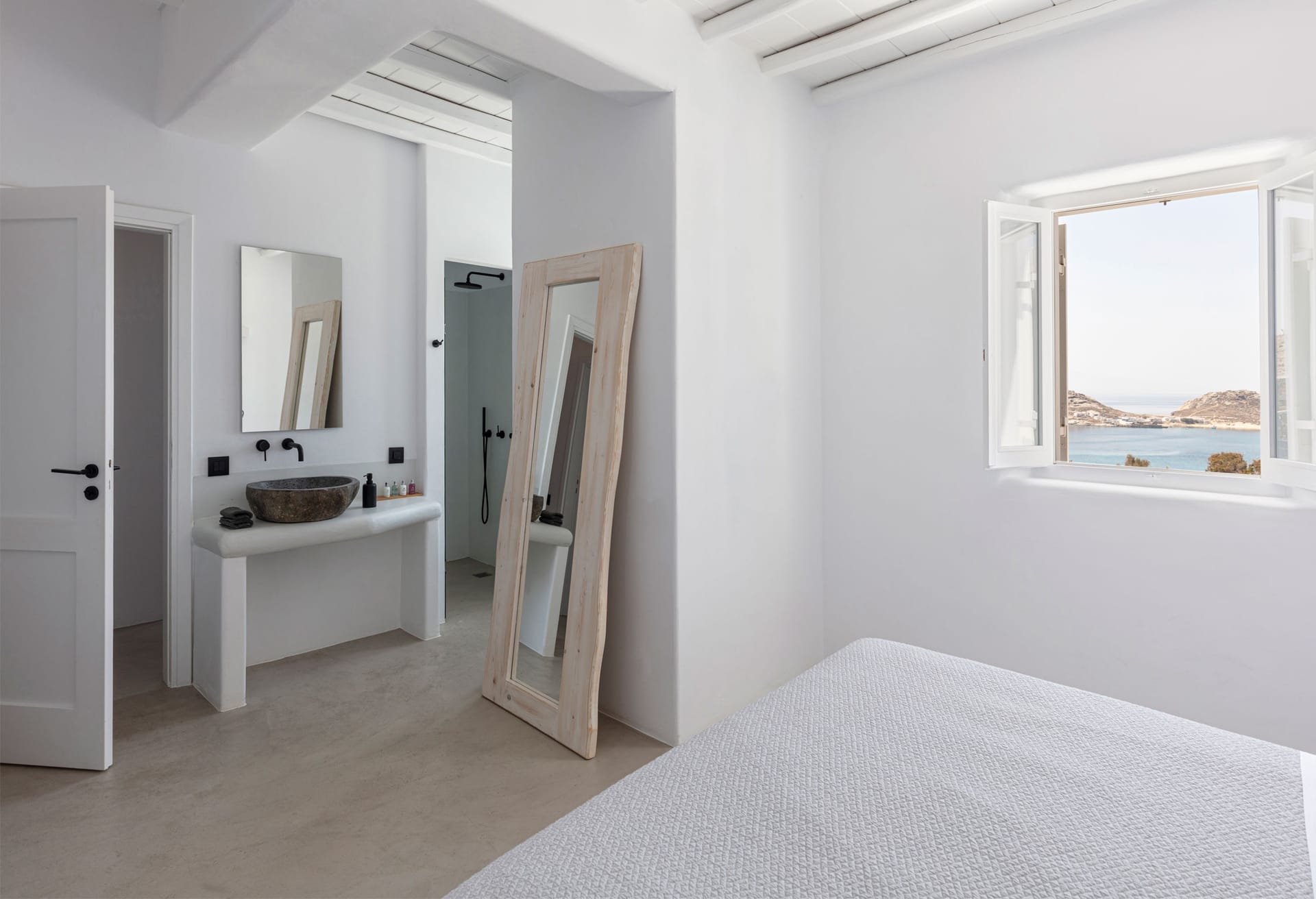 Bedroom with shower and sink (Queen size double bed), sea view