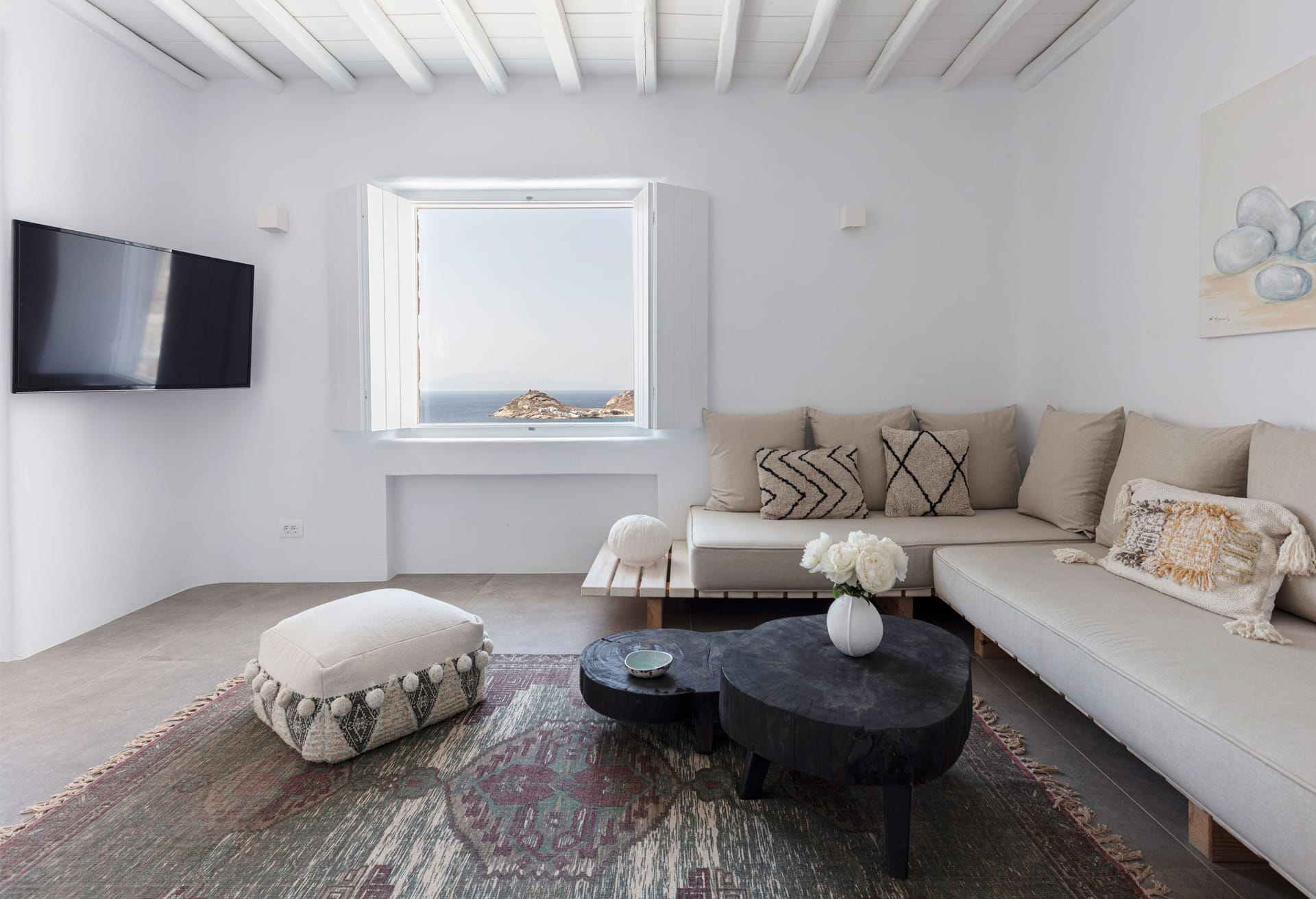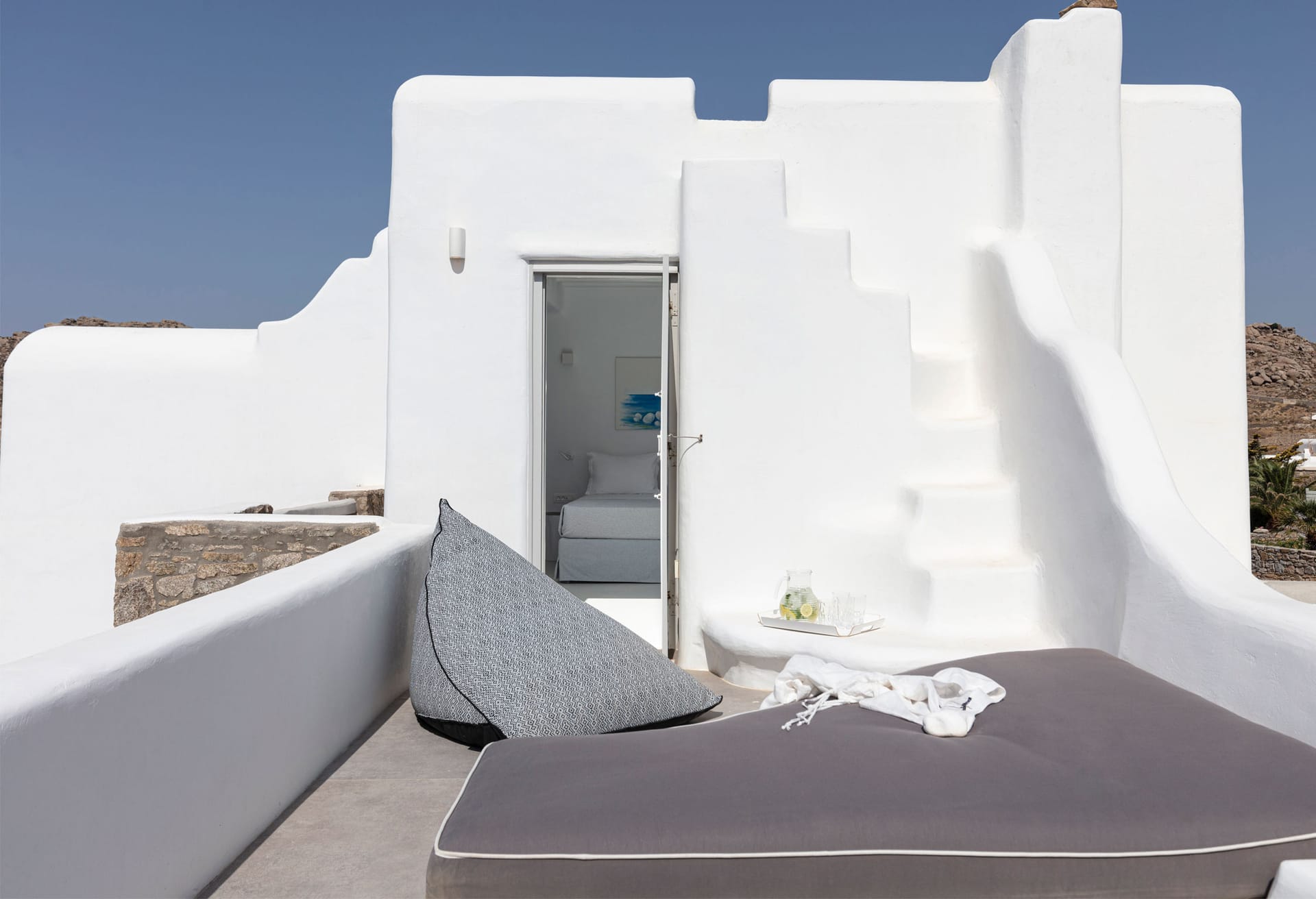 Designed to offer guests the utmost of a relaxed lifestyle, comfort and privacy in the middle of cosmopolitan Mykonos, no detail here has been overlooked. The five bedroom villa is both in line with the local Myconian architecture, while including all luxuries of a contemporary lifestyle. They make the perfect accommodation for groups of friends and families alike.