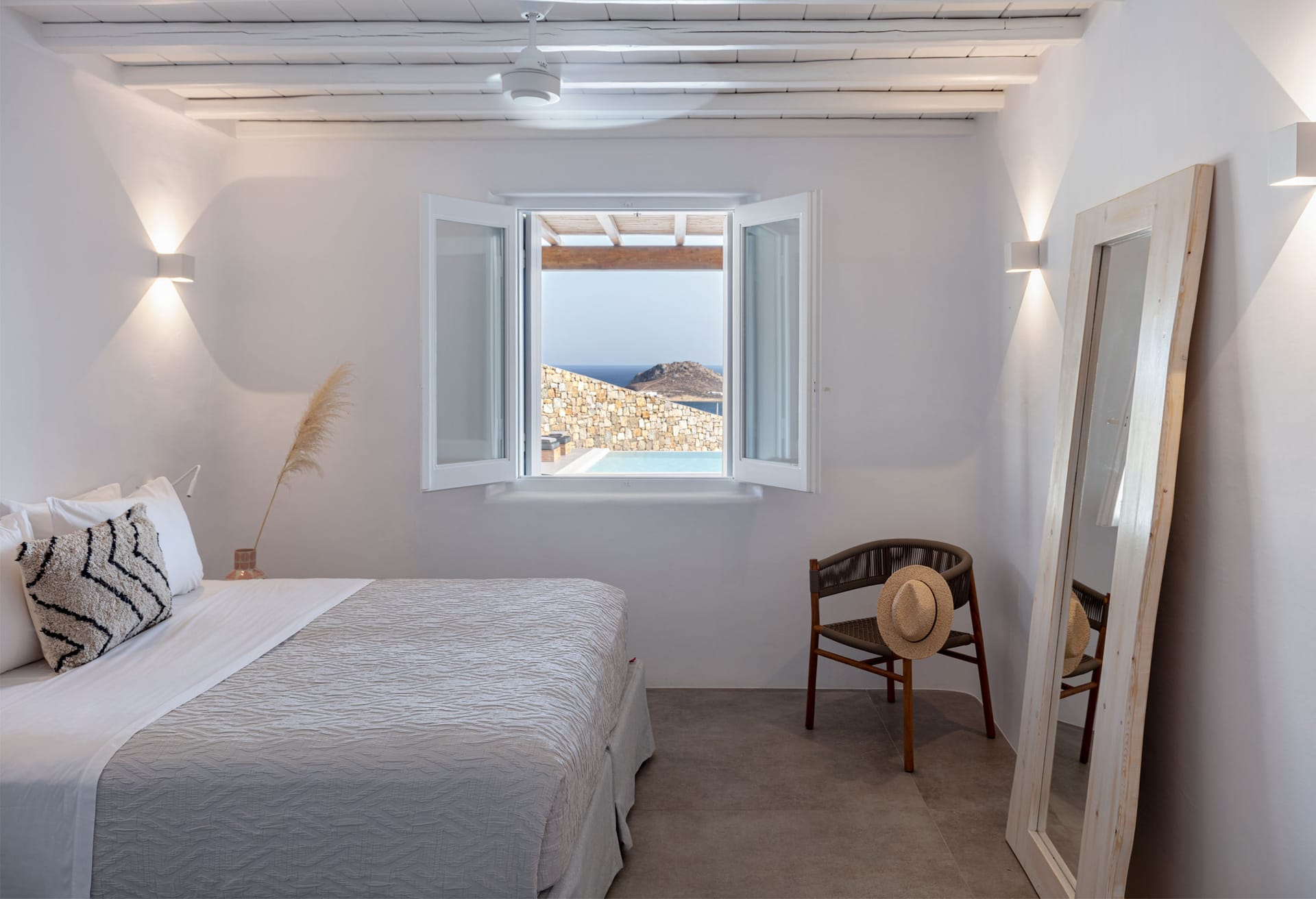 Relax here, while admiring the stunning scenery that lays in front of your eyes, where the infinity pool ends and the Cycladic seascape unfolds.