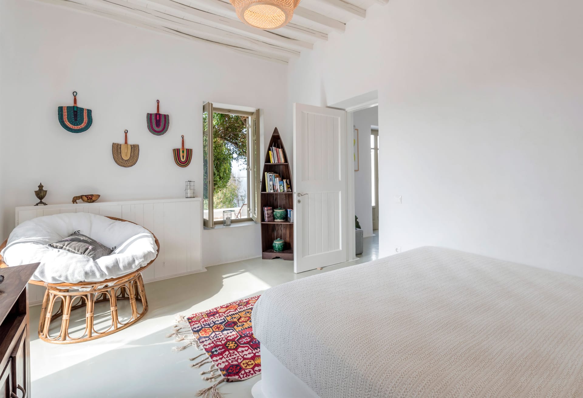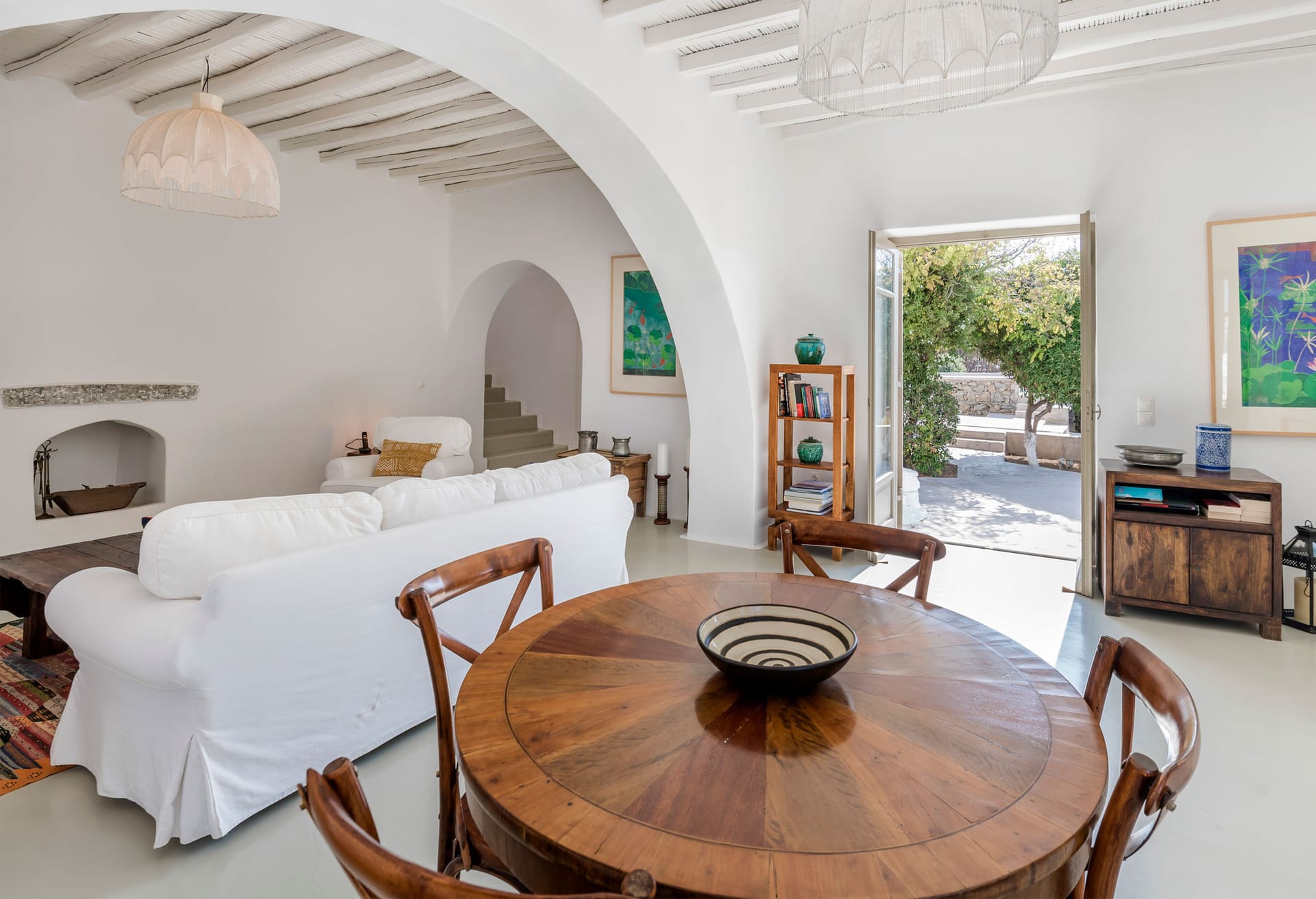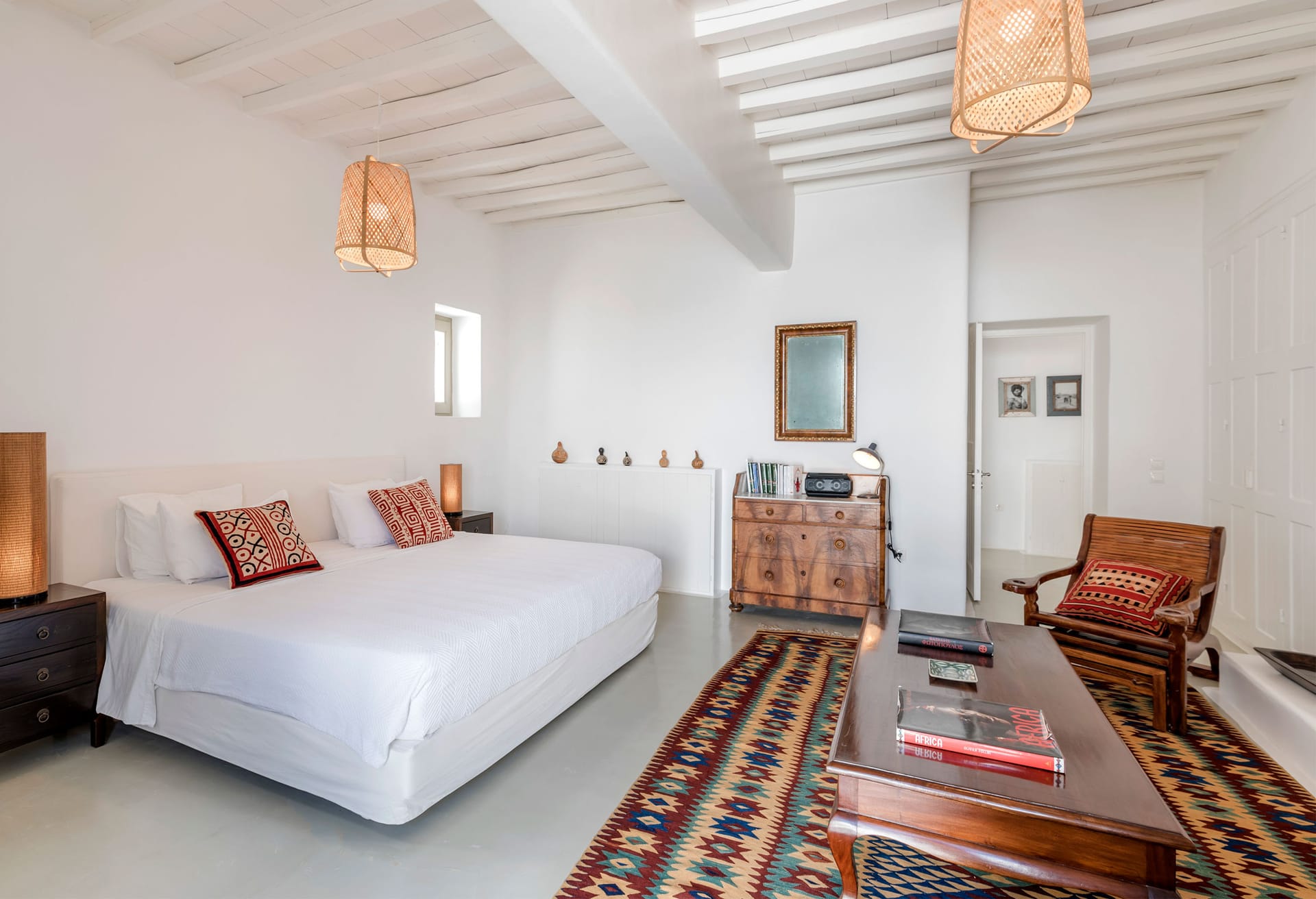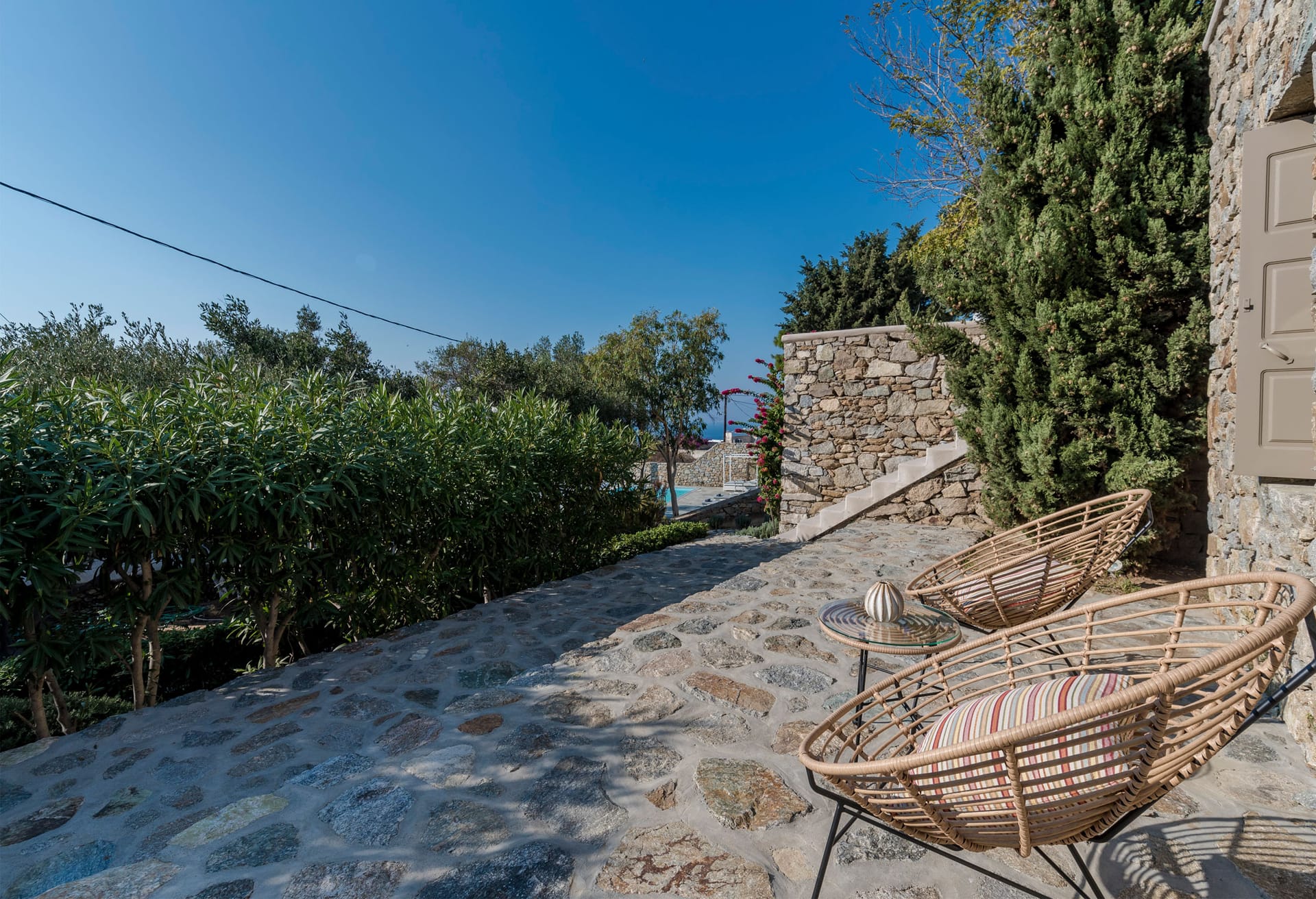 Indoors, it features elegant bohemian interior decoration with clean lines. Bright living room, spacious bedrooms dressed with carefully selected details offering elegance and comfort. The pool area is situated on a separate level at the front surrounded by wellmaintained gardens and lounge areas. Sunbathe around the pool and unwind or escape from the midday heat in the shady outdoor sitting areas under the pergola.
