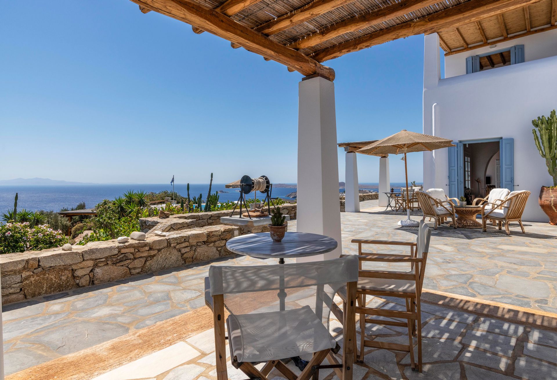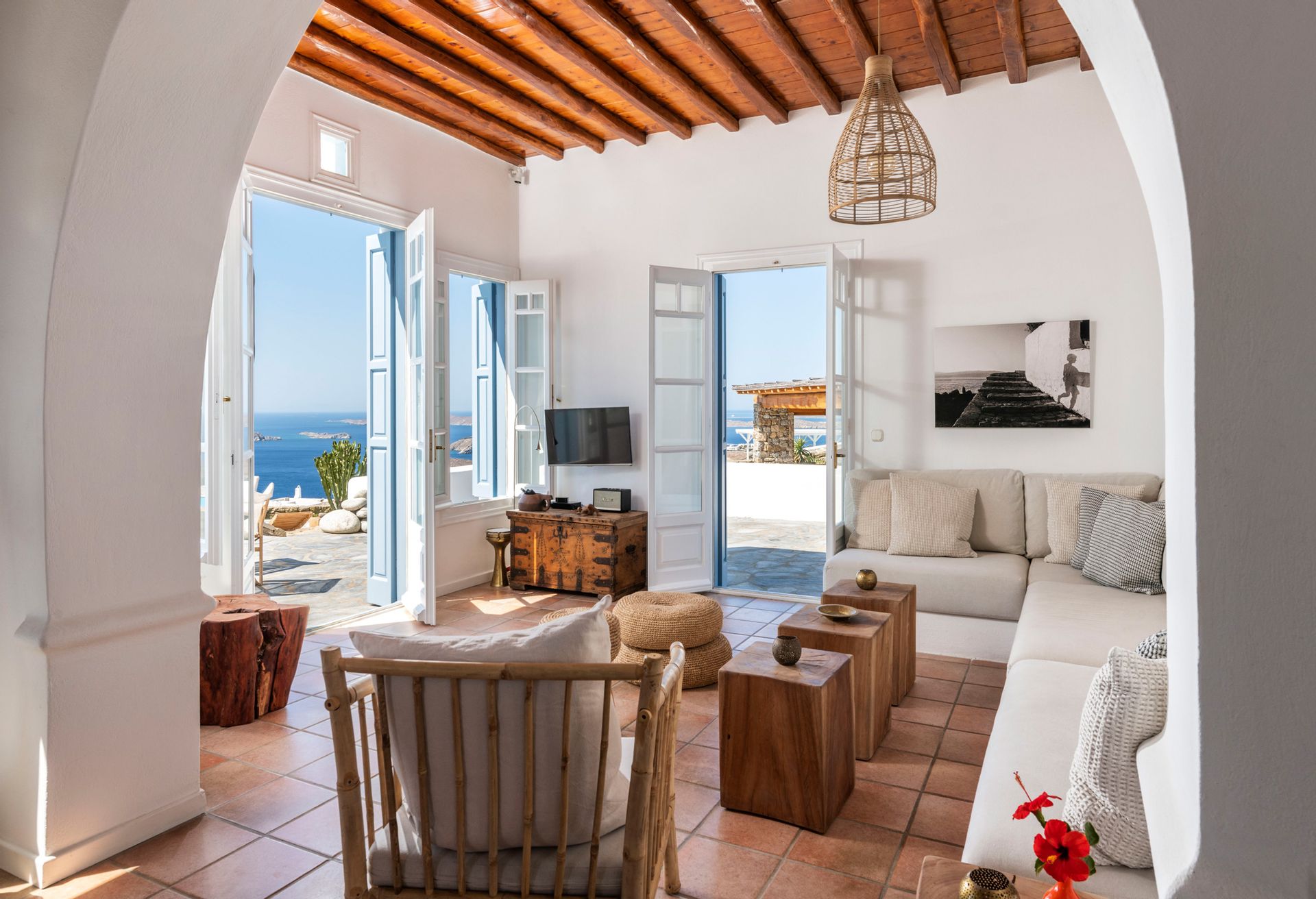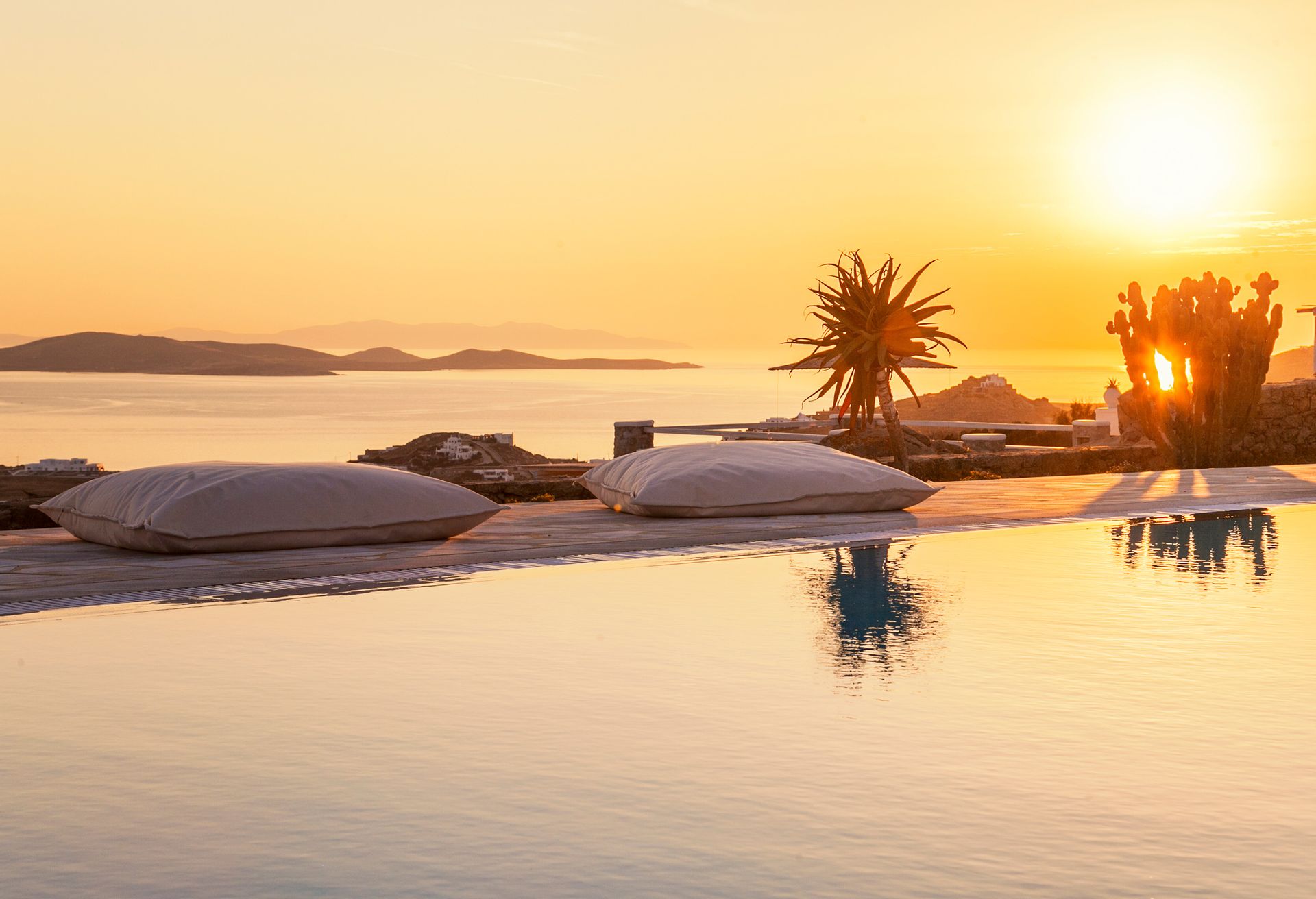 The villa offers stunning views to the sea, the surrounding islands and rather uniquely, to both, the sunrise and the majestic sunset.