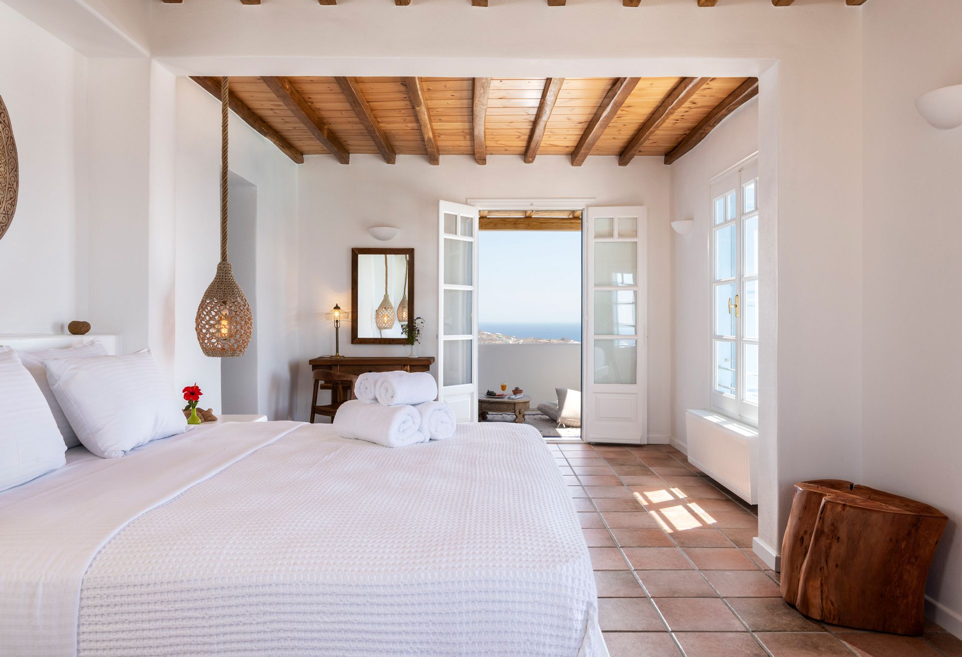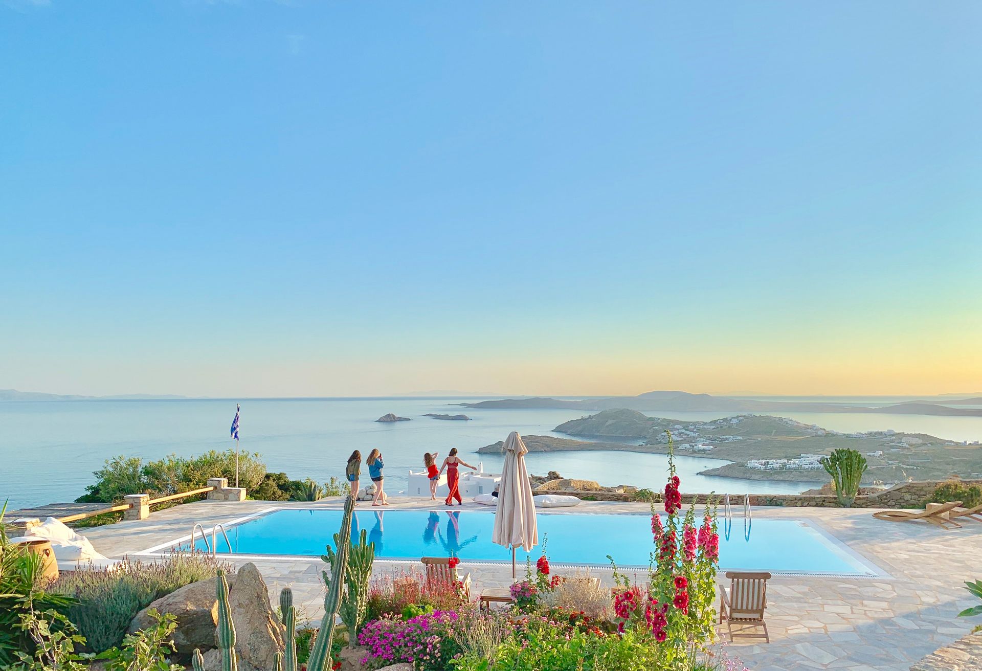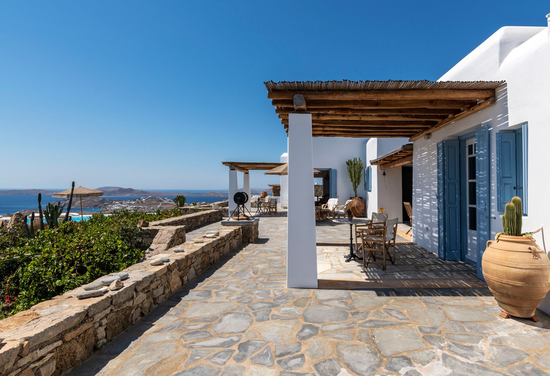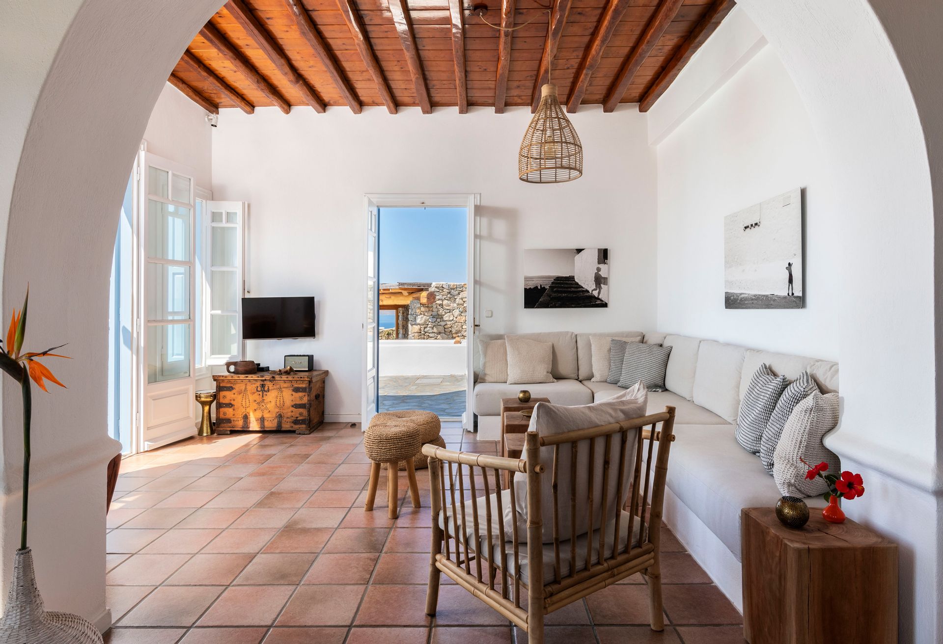 The villa offers stunning views to the sea, the surrounding islands and rather uniquely, to both, the sunrise and the majestic sunset.