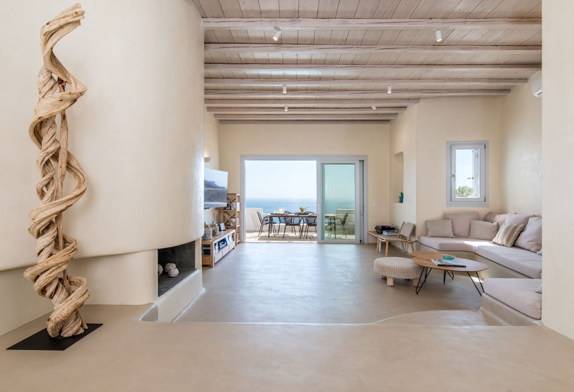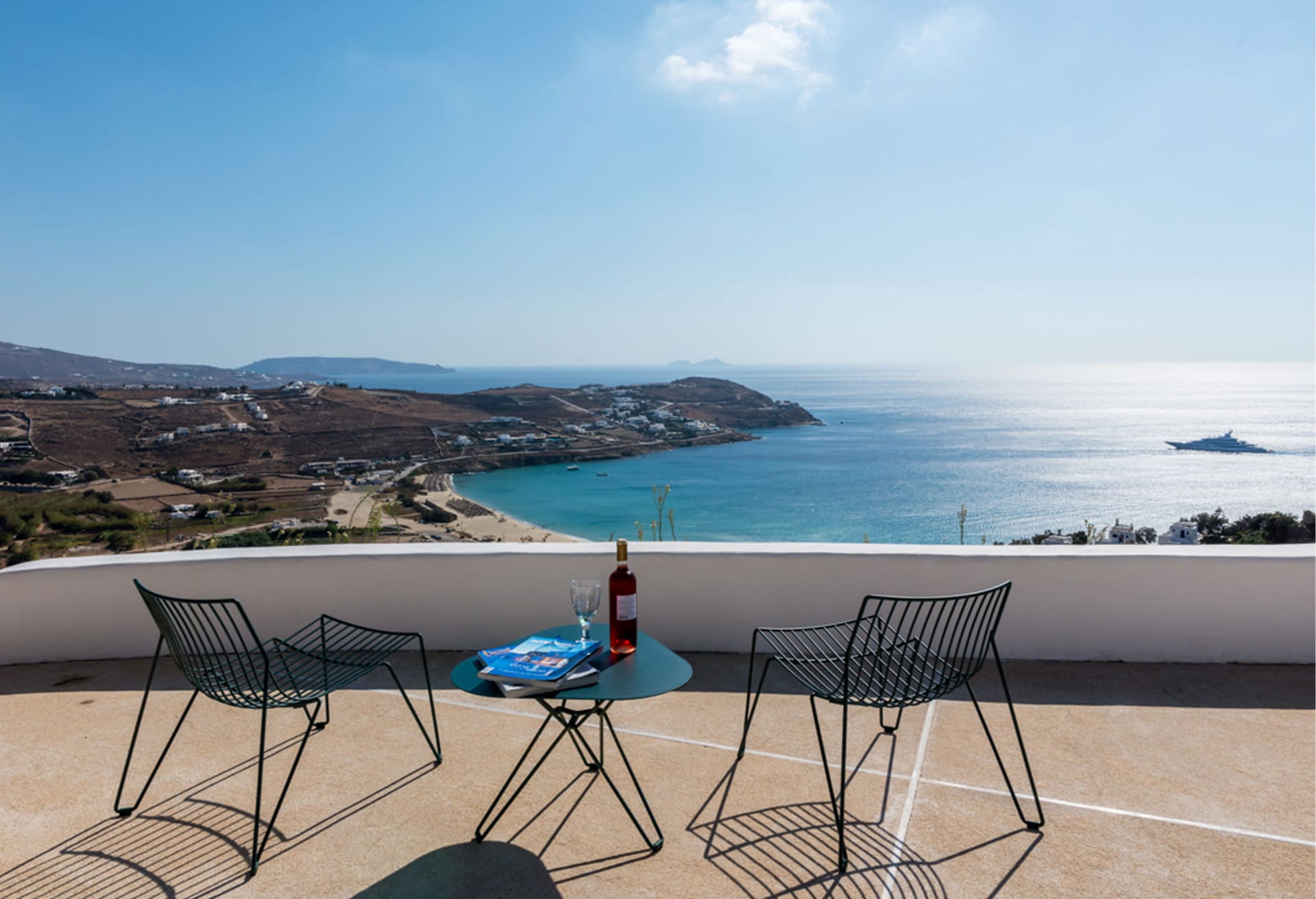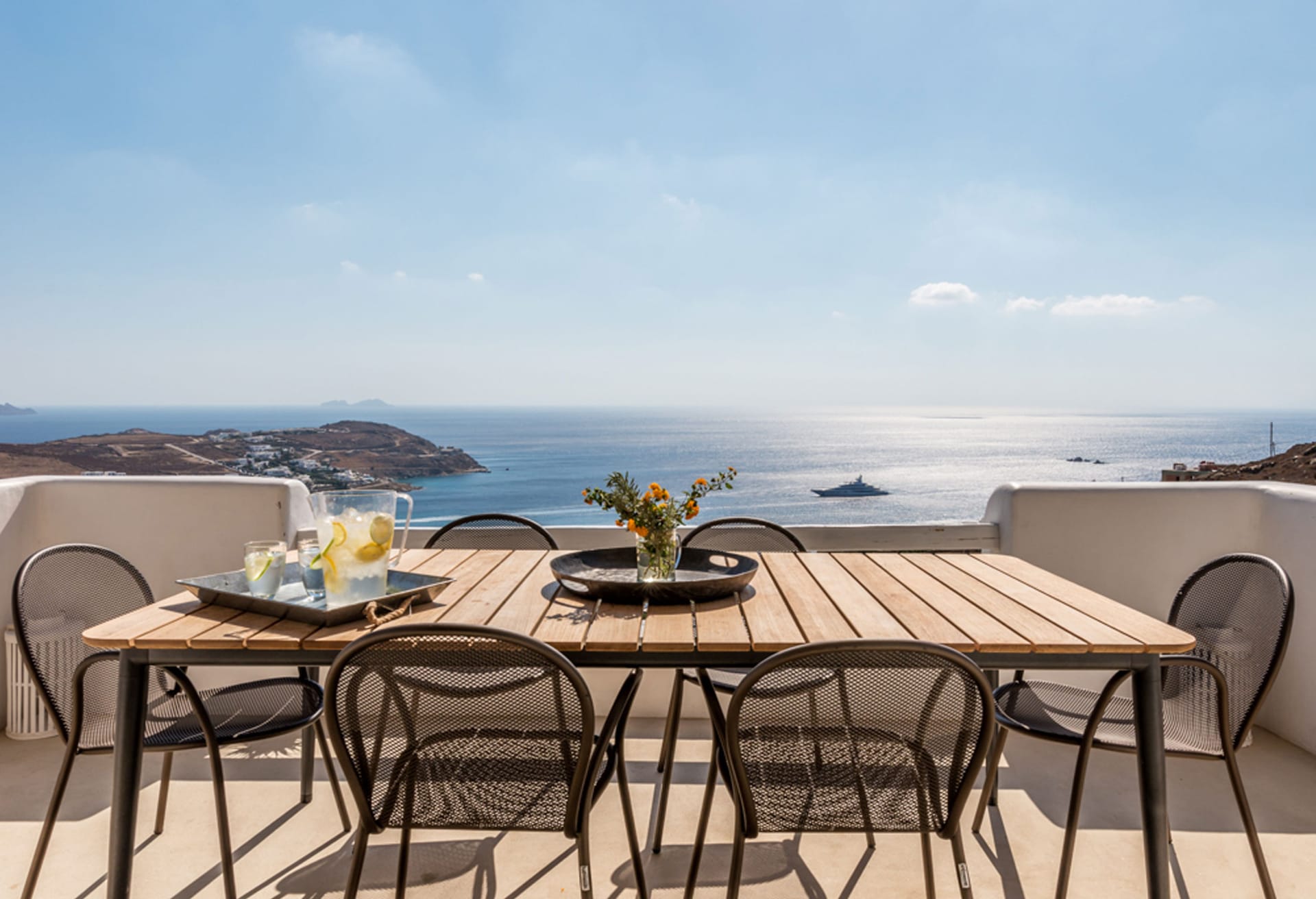 This 250 sqm Villa enjoys some of the island's most impressive views, streching accross the Aegean blue waters all the way to neighbouring Naxos island.