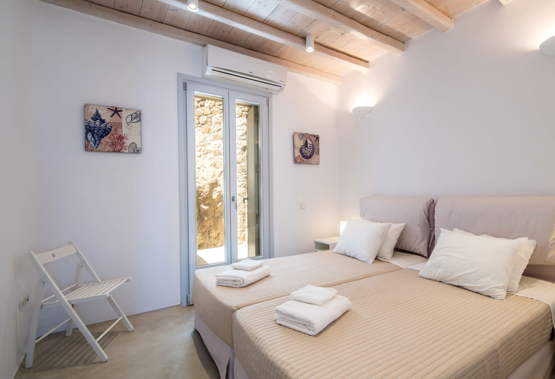 - 1 bedroom with twin beds (that join into a queen size bed), A/C, en-suite bathroom with shower, closet, hairdryer, access to the patio, no view