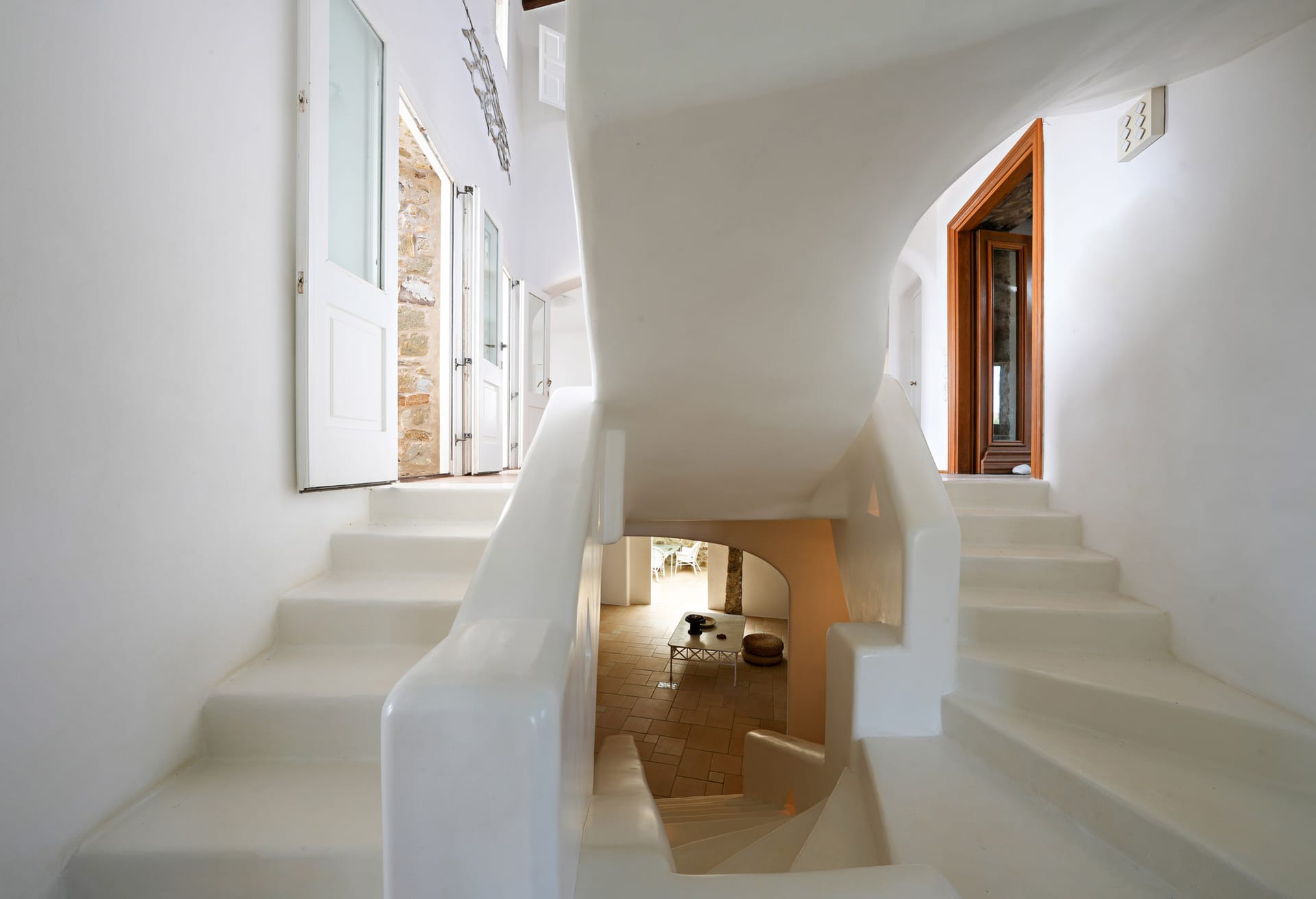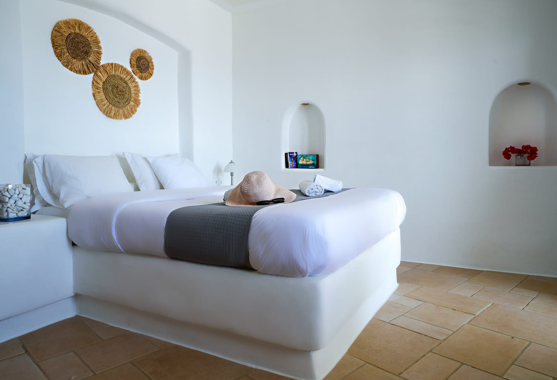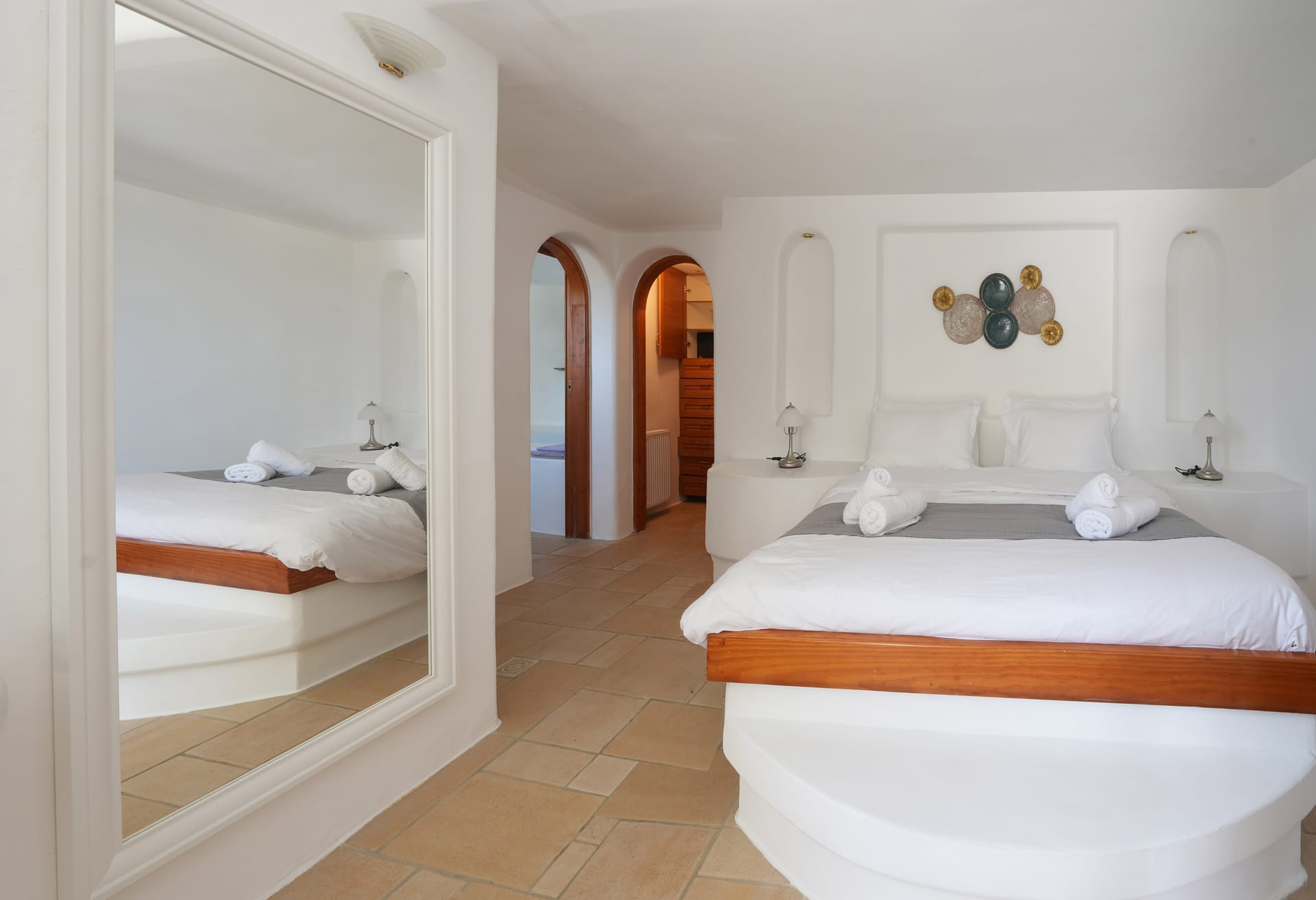 Whitewashed walls and traditional stone encapsulates the Cycladic spirit. The Villa’s spacious terrace entices you to enjoy the Greek sun and the Aegean breeze all day long.