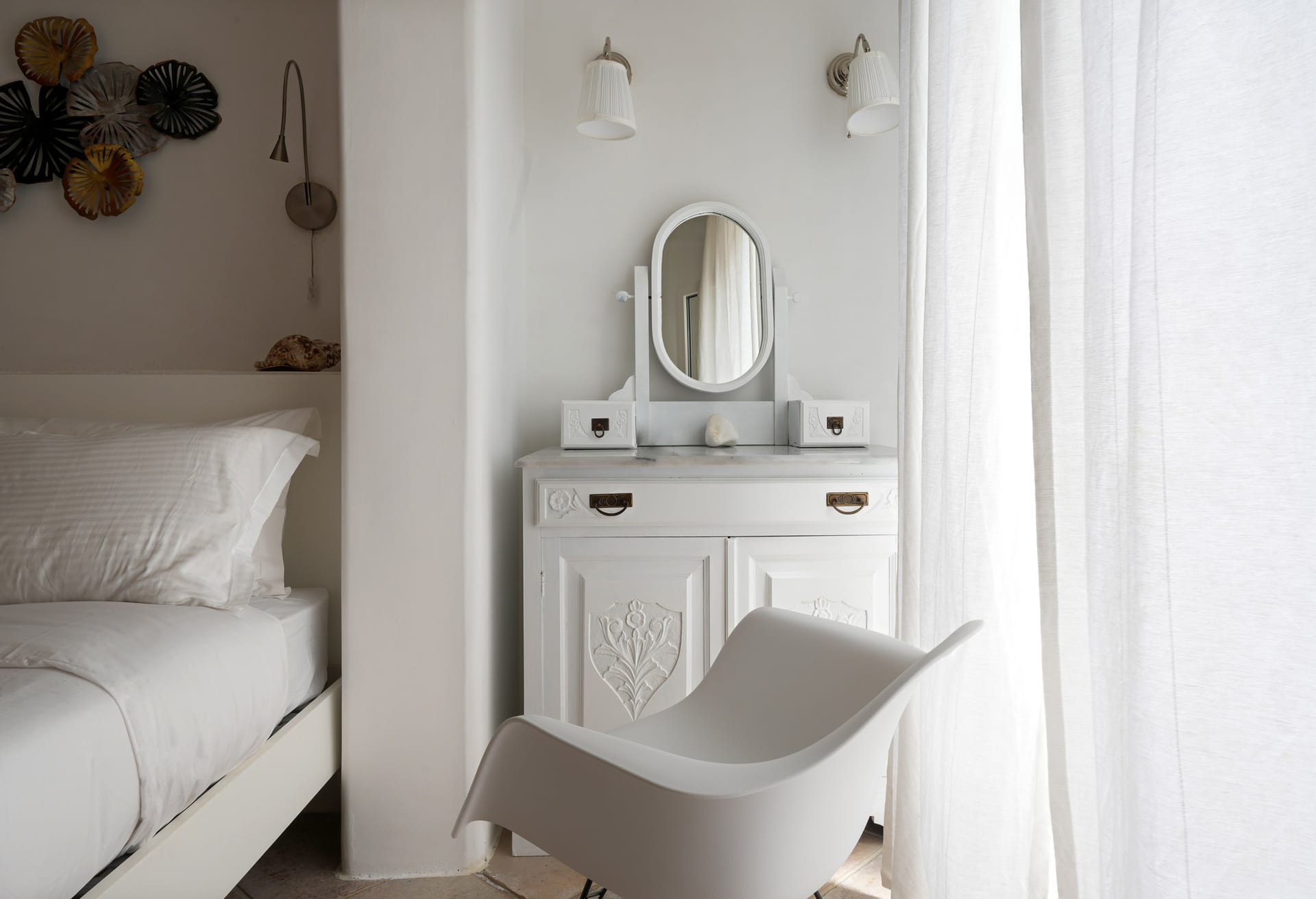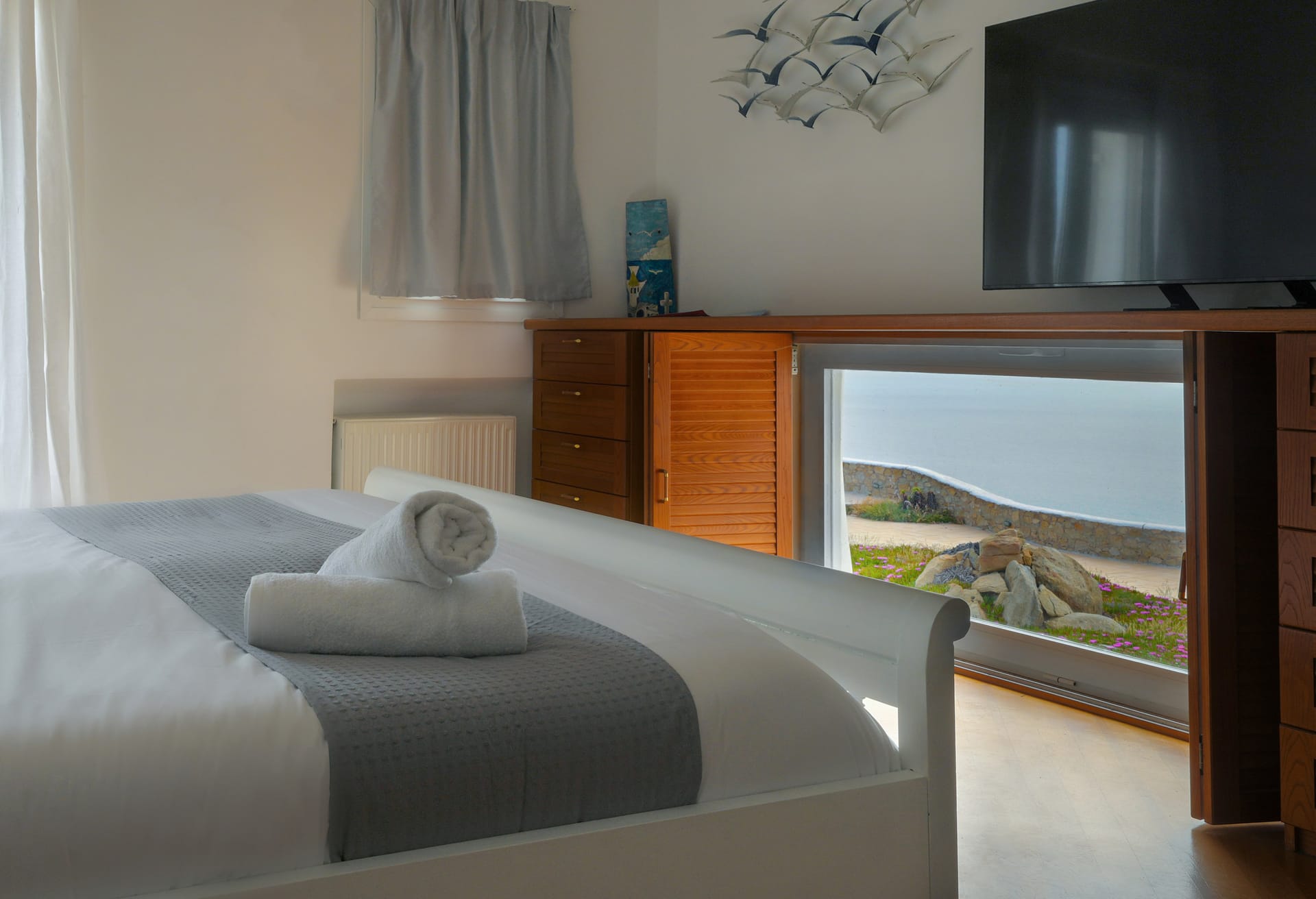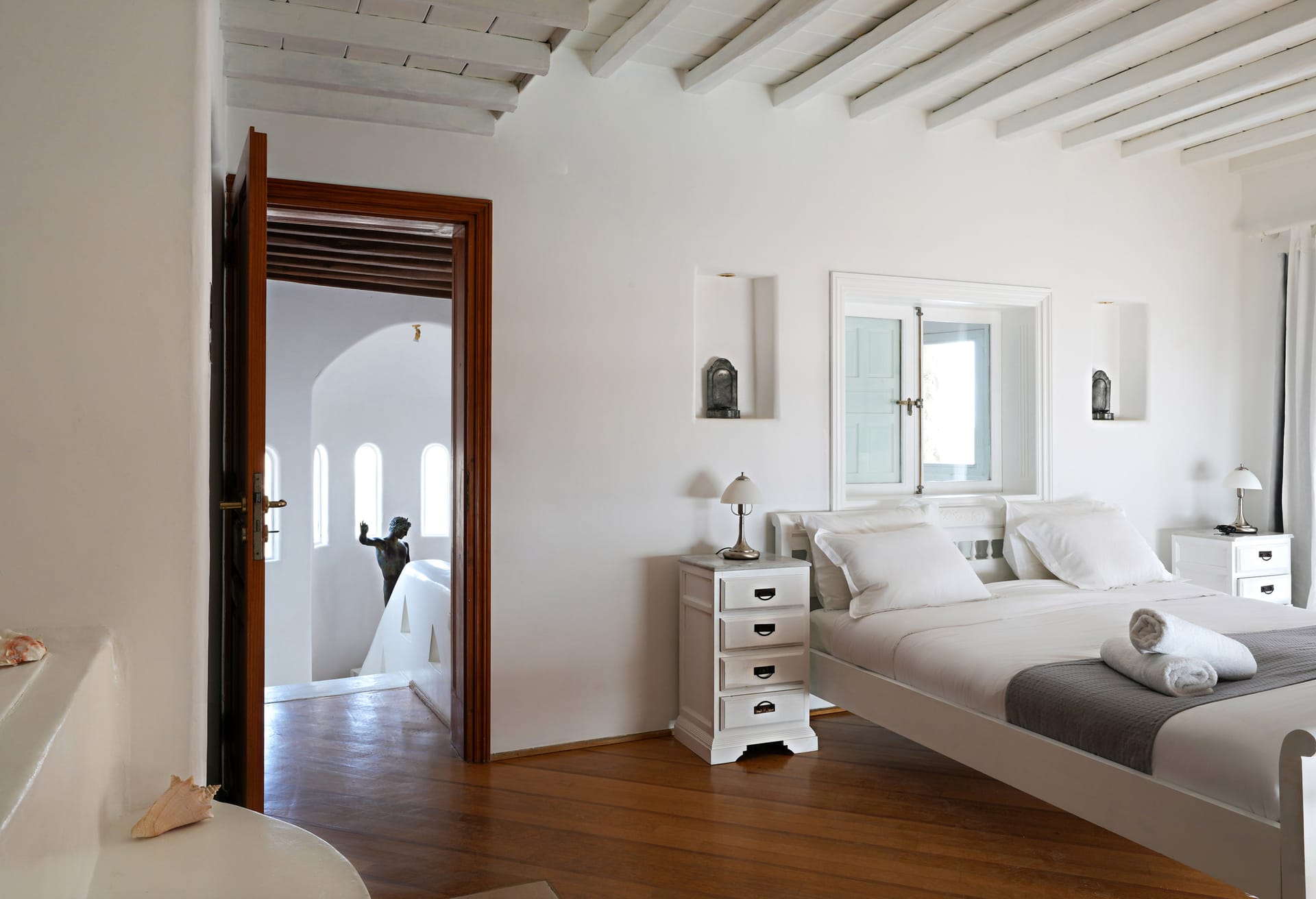 Whitewashed walls and traditional stone encapsulates the Cycladic spirit. The Villa’s spacious terrace entices you to enjoy the Greek sun and the Aegean breeze all day long.