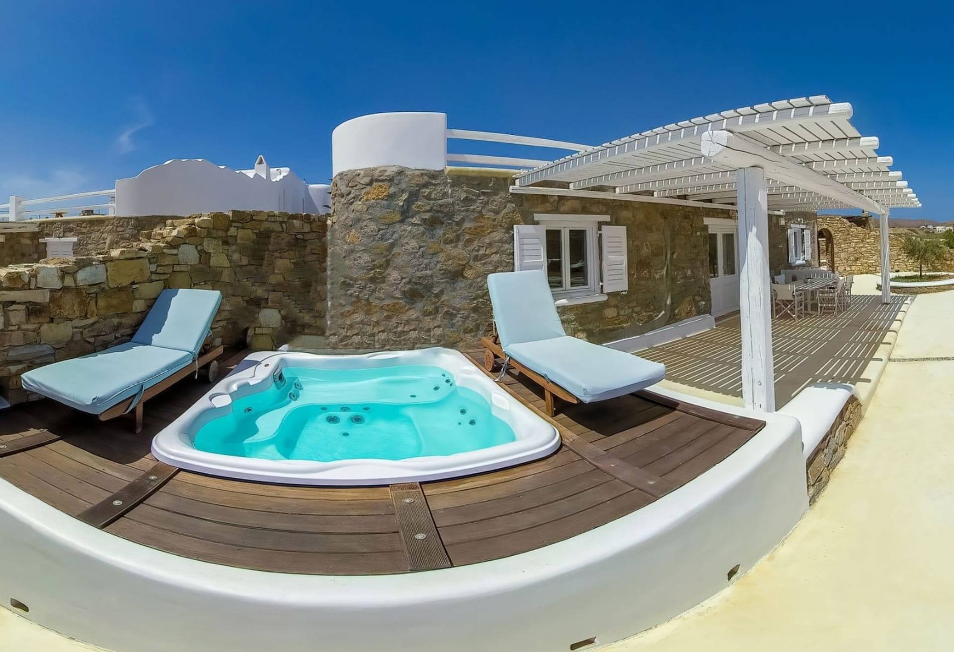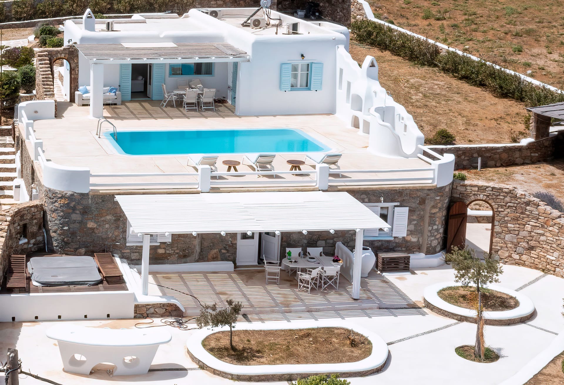 Rethink villas in Greece with seclusion and luxury on Mykonos the most famous island of the Aegean.