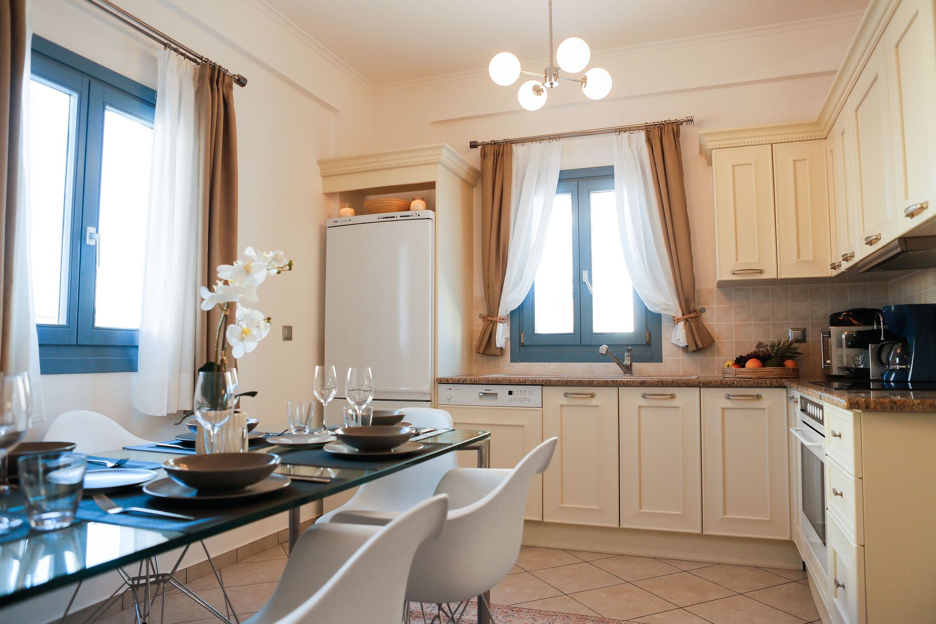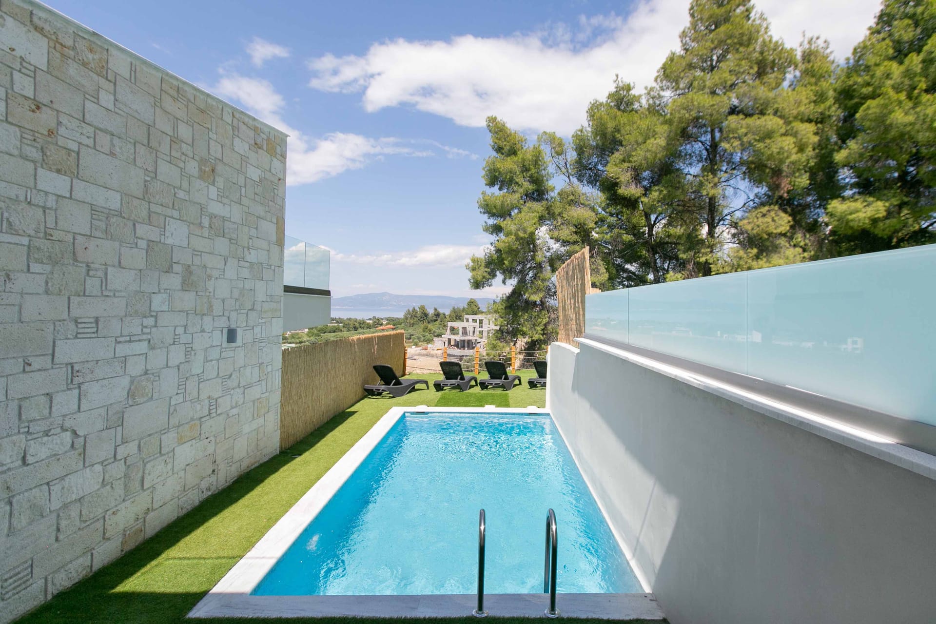 Villa Hestia 2 features a master suite with an en-suite bathroom that leads to the pool area on the ground level as well as two double bedrooms sharing one bathroom.