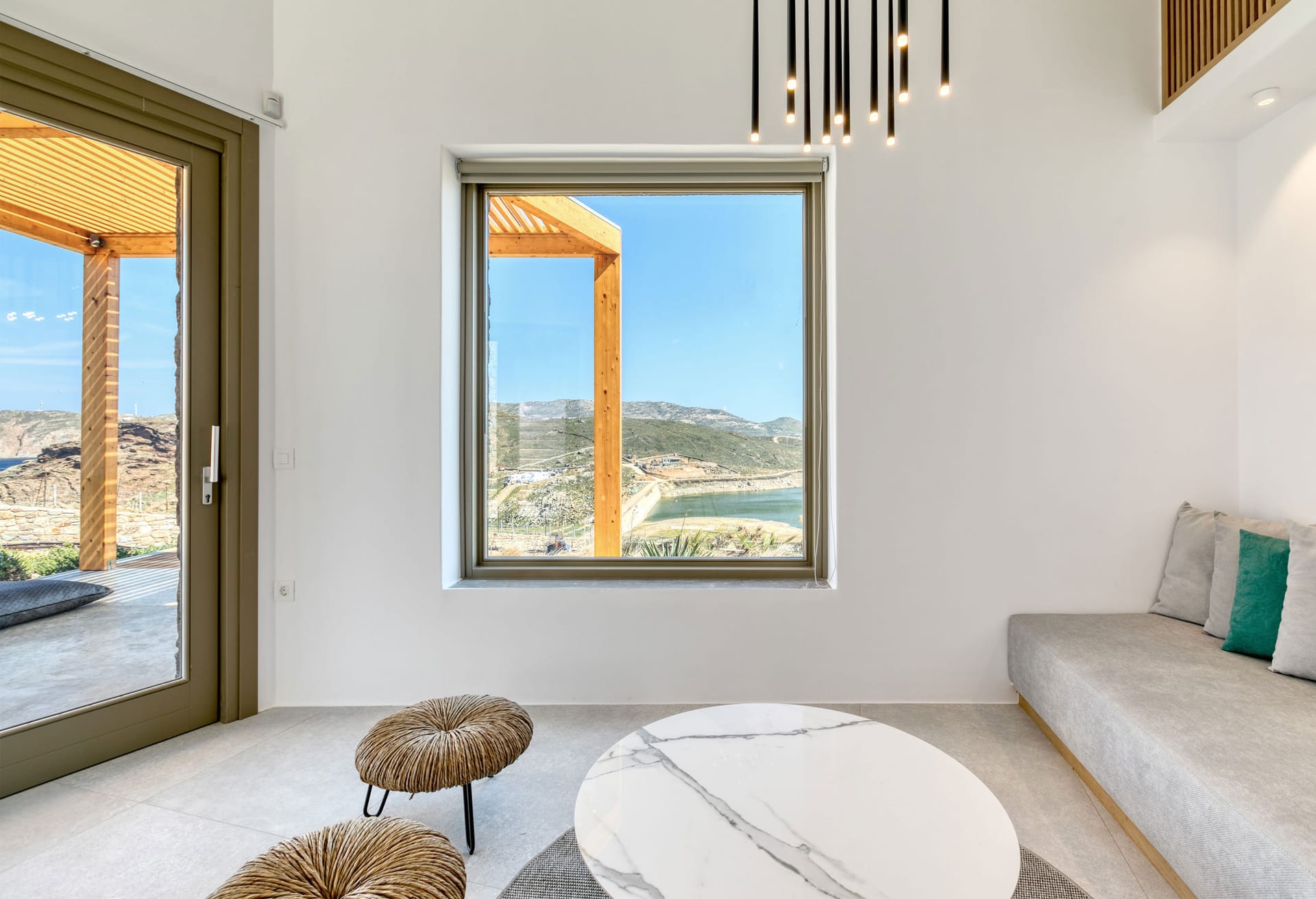 Villa Hestia 2 is cited at a privileged position overlooking stunning Panormos Bay, depicting spectacular views of the deep blue Aegean Sea, Panormos Bay and of the rugged, unspoiled hillsides.
