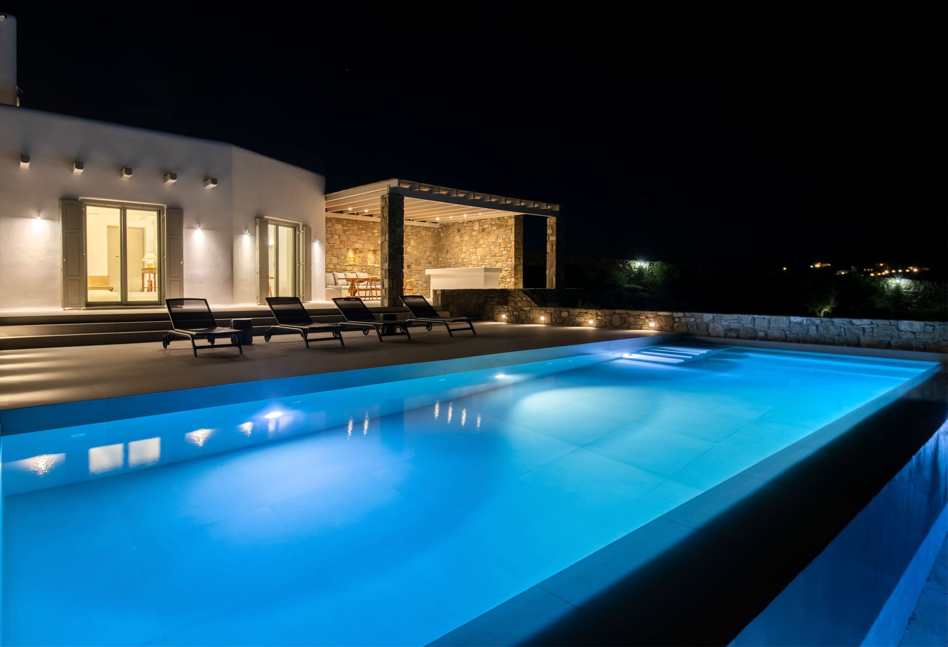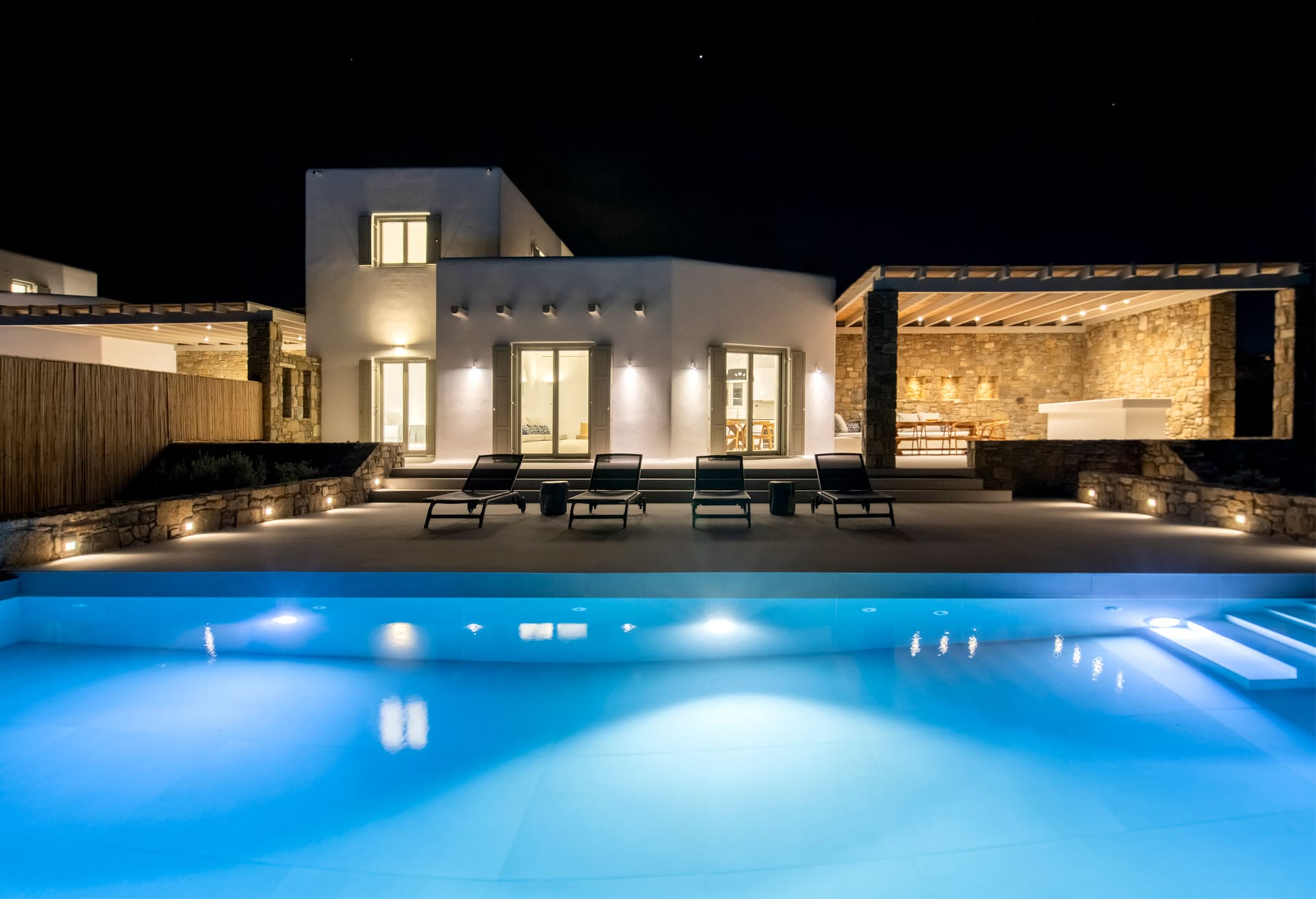 Brand new luxury property. Luxury villa Ivory 2 is located in Mykonos Kalafatis just 10 minute walk from the nearest beach.This luxury property features 3 bedrooms, 3 bathrooms, a private pool with an outdoor bar and garden.