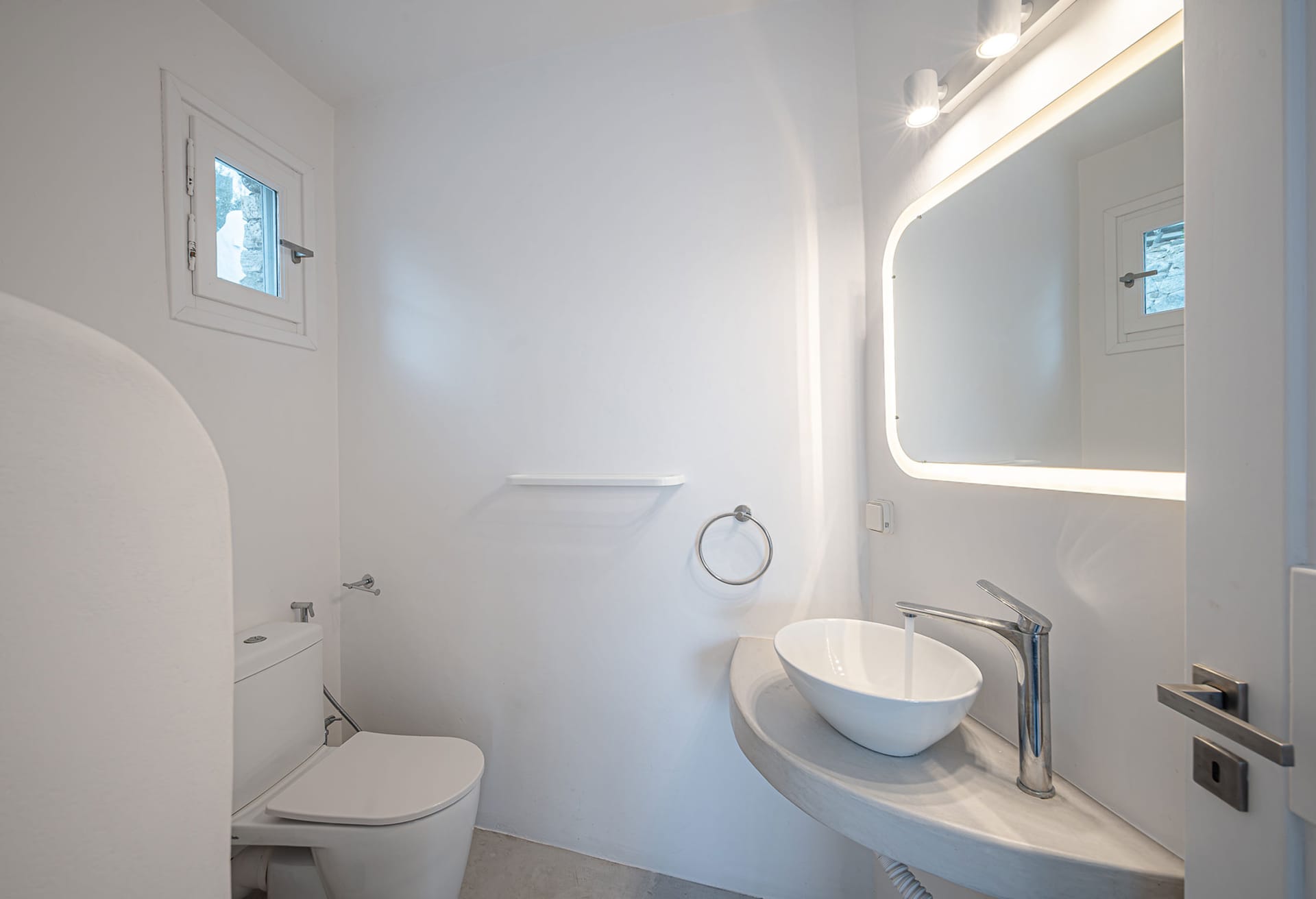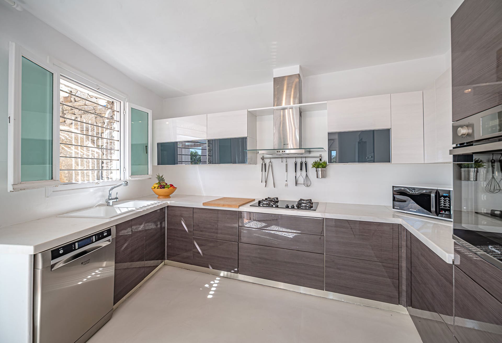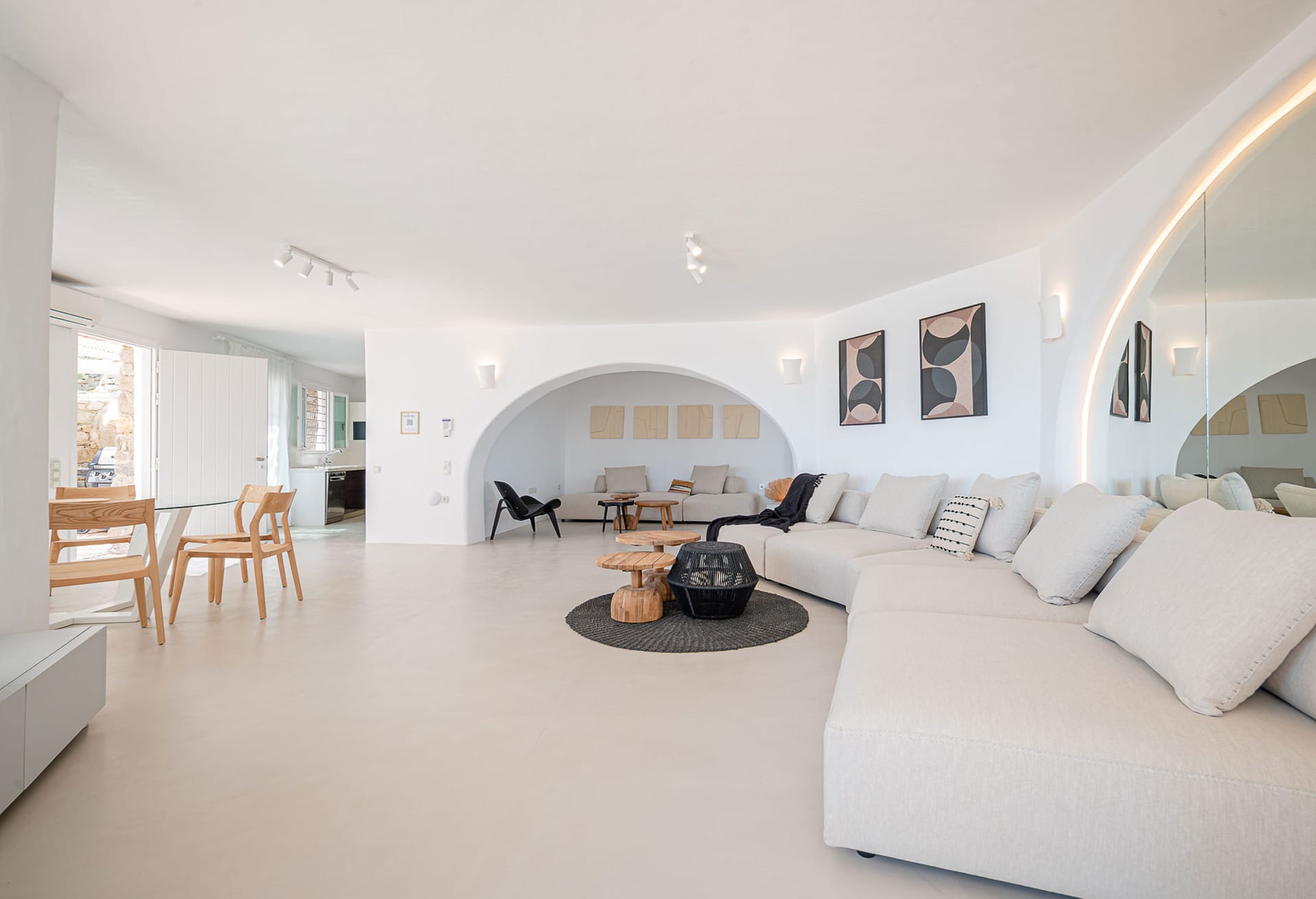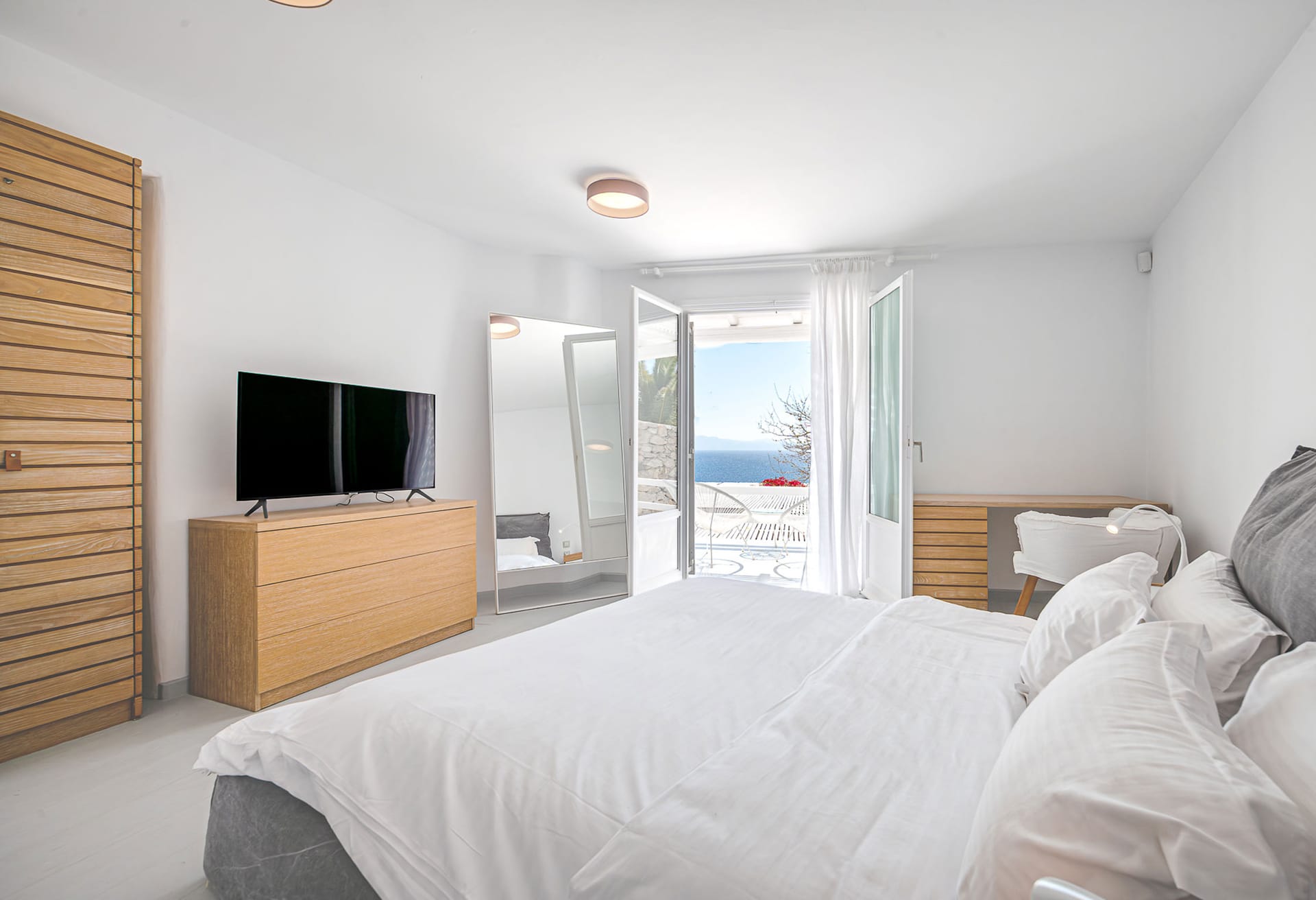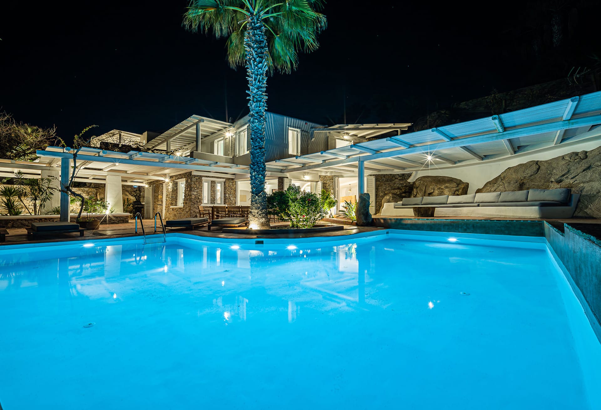 The nearest beaches are Nammos, Ai-Yiannis, Glyfadi and Ornos beach. The distance from the town center and airport is between 4 and 5 kilometers.