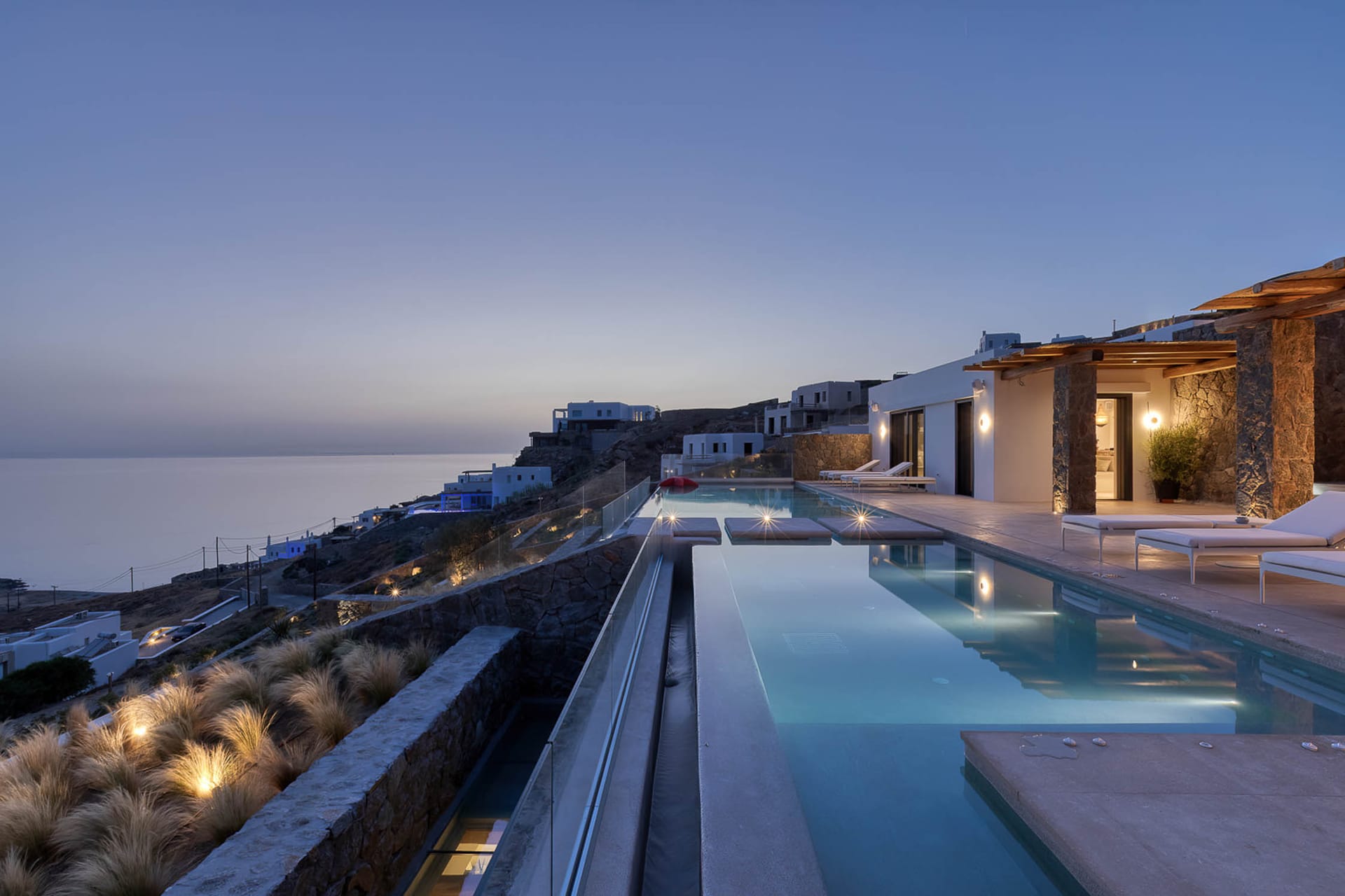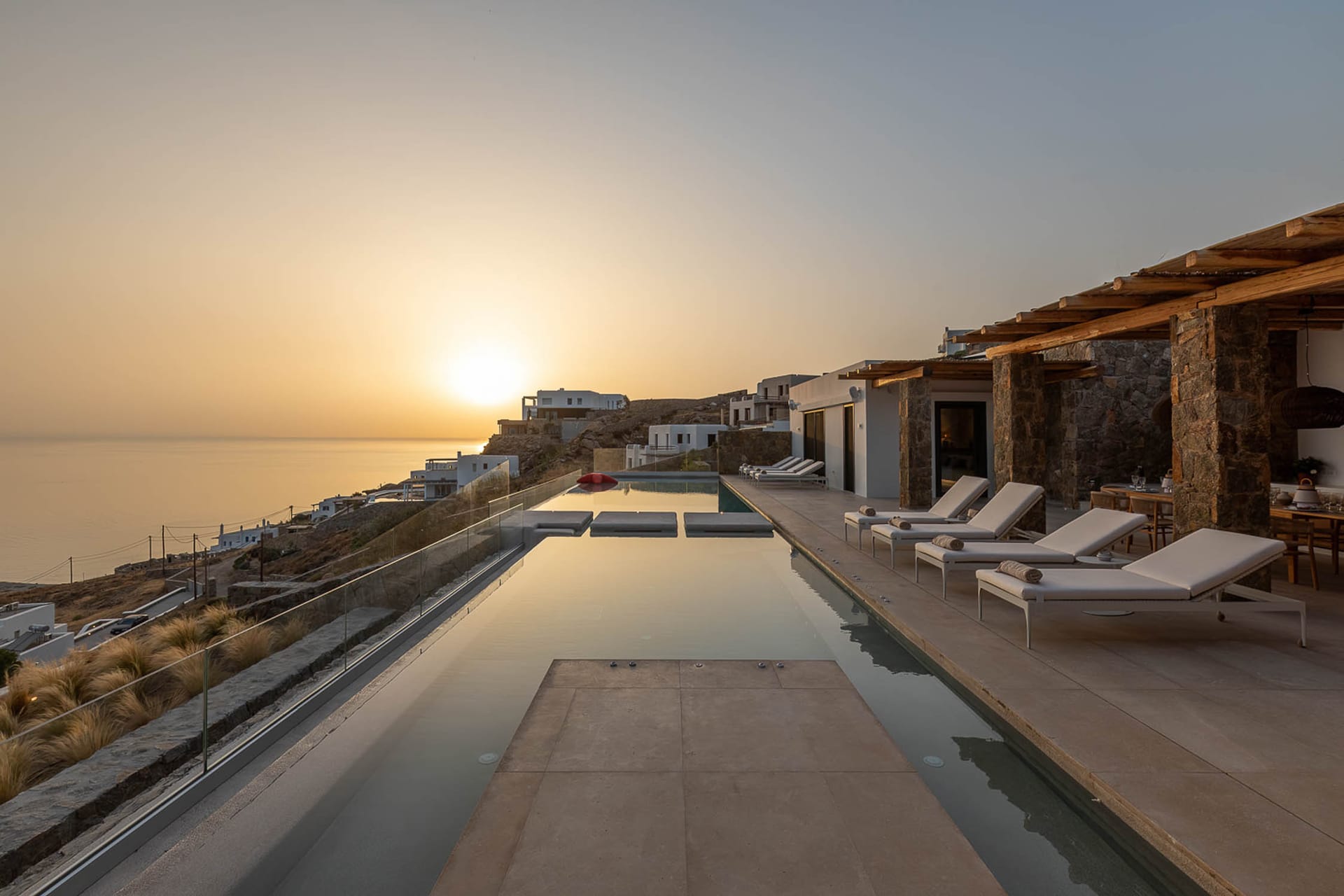 Kinsley 2 promises an unparalleled luxurious experience, offering breathtaking sea and sunset views, along with the highest level of comfort and convenience. This villa provides everything needed for an unforgettable stay in Mykonos, combining elegant design with modern amenities and spectacular surroundings.