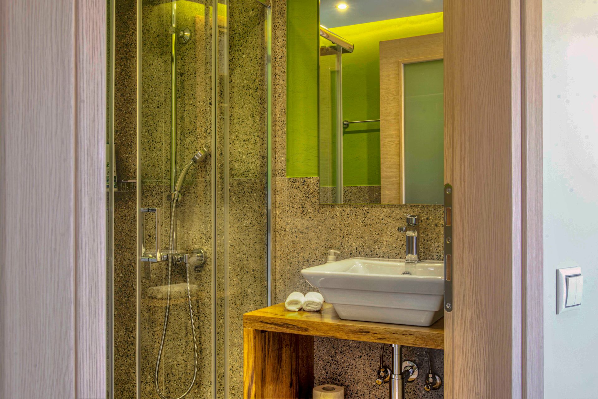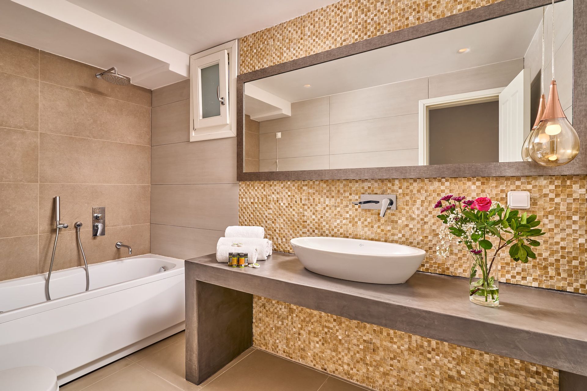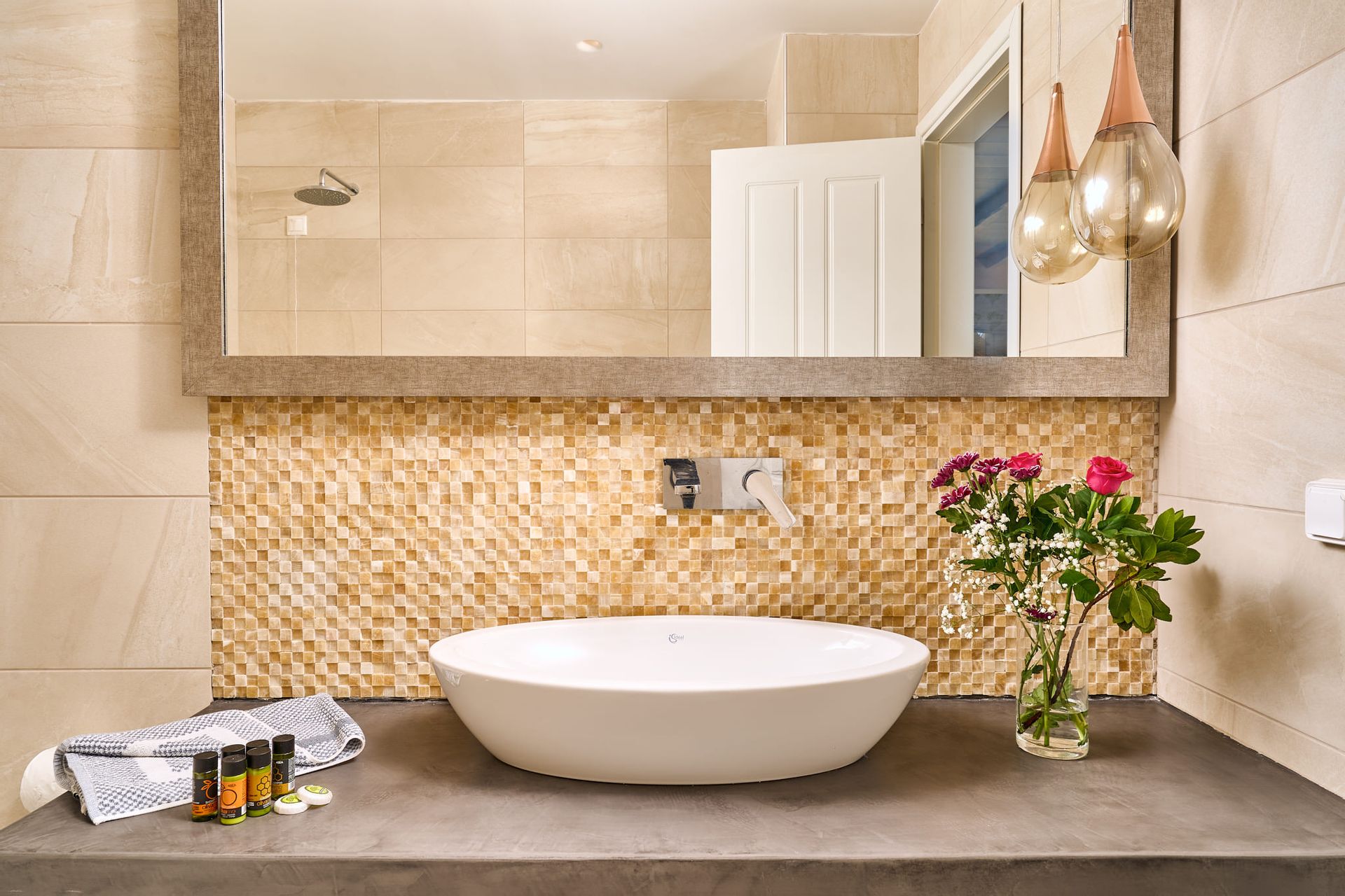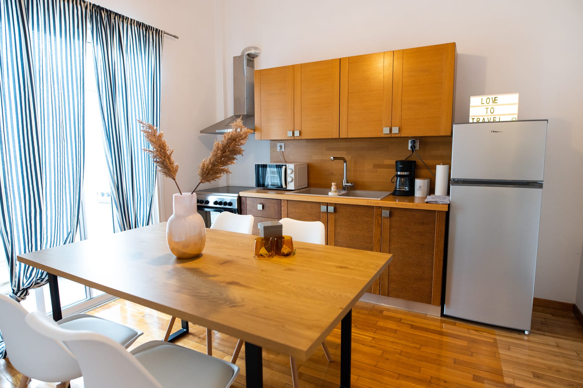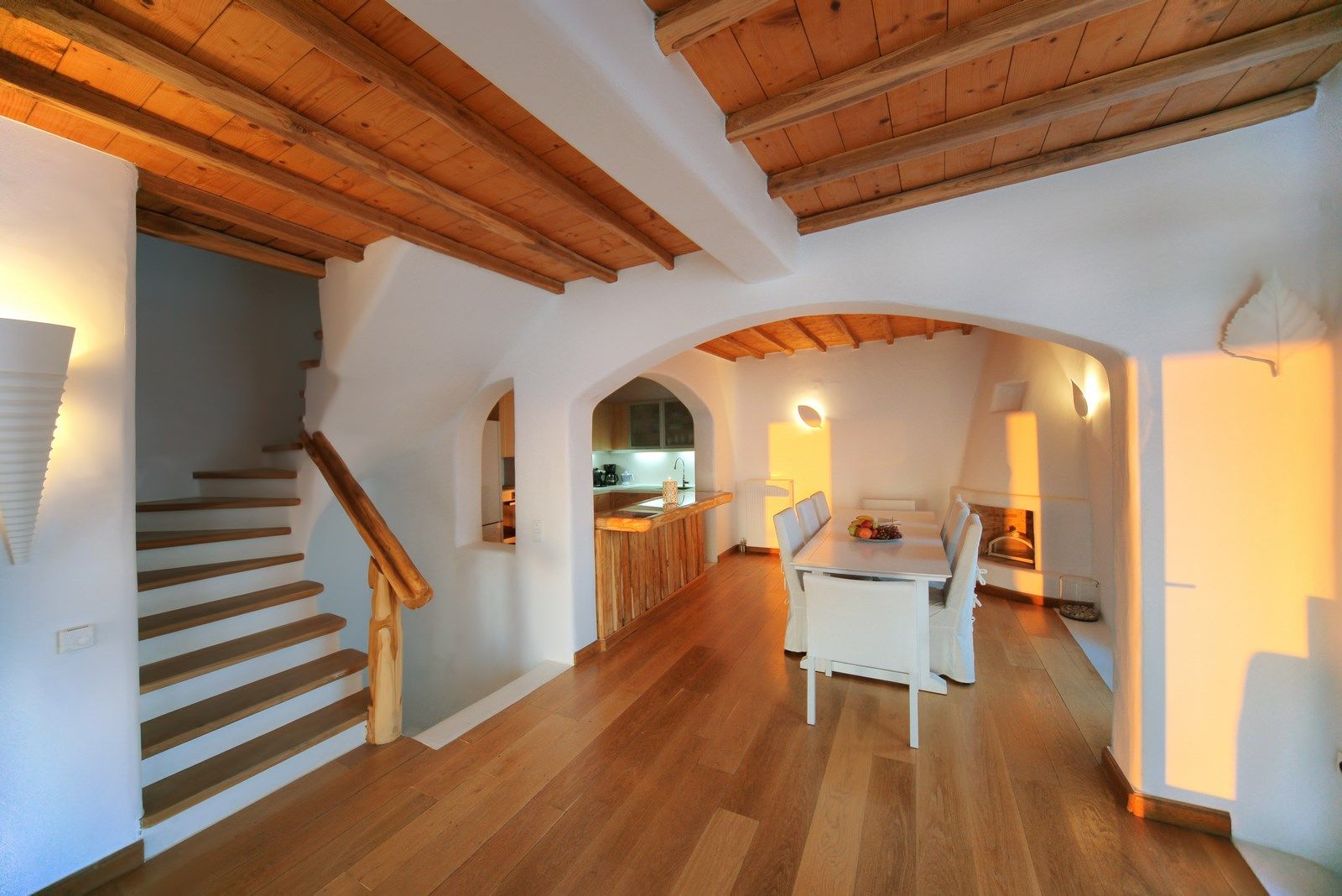 The main villa offers a spacious open-plan living room with a dining area, all seamlessly connected to the pool area, with stunning views. The villa's kitchen is brand new and fully equipped with the latest appliances and pantry, while a WC is conveniently located on the pool level.