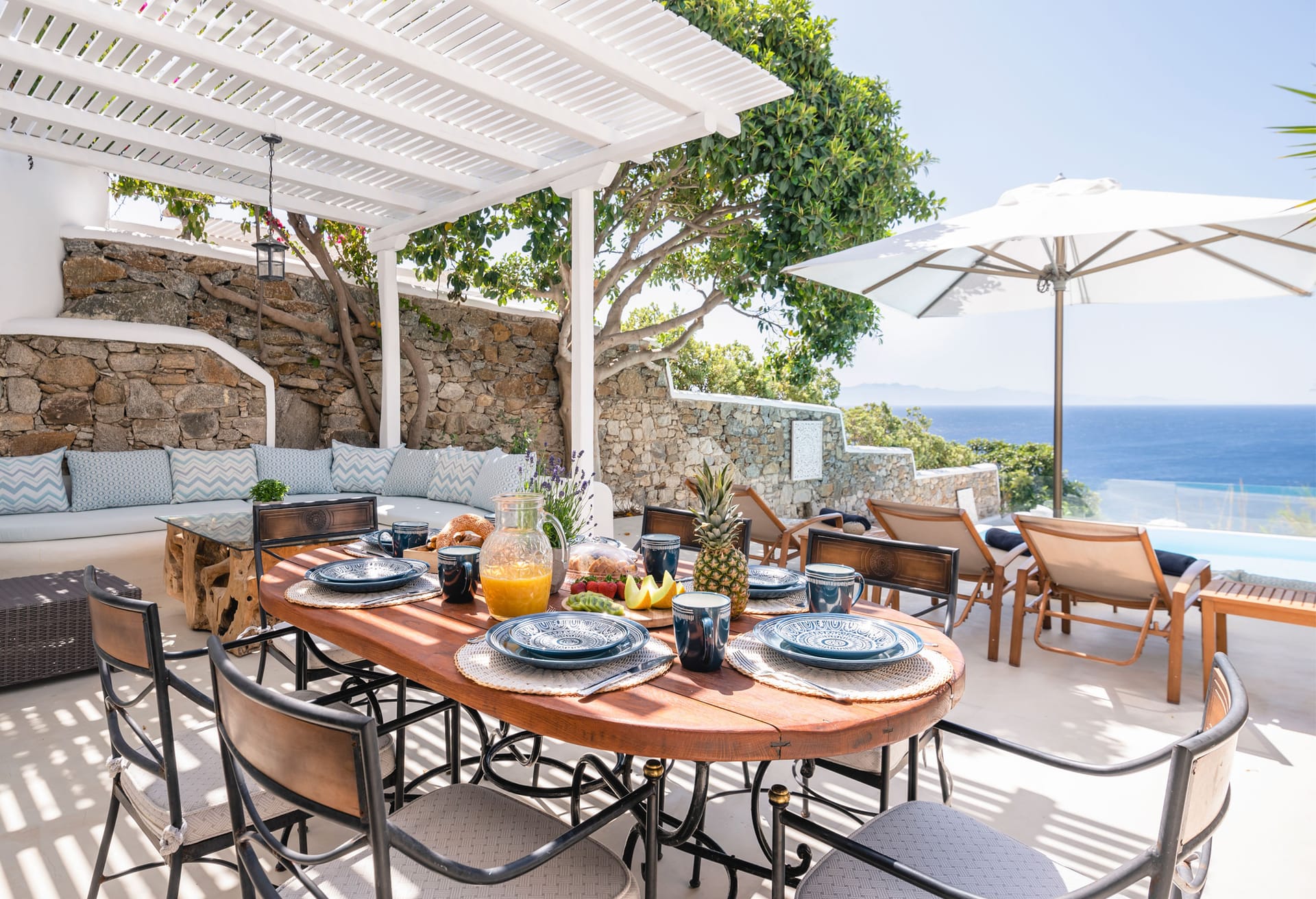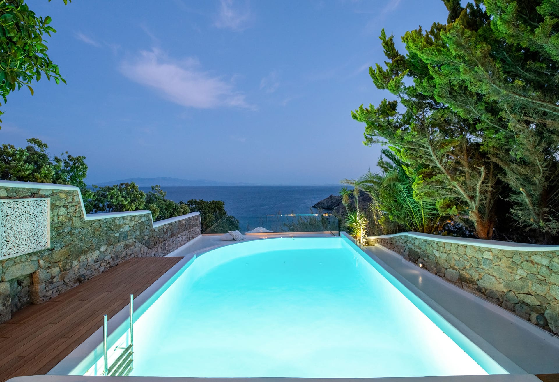 Villa Lucy is a private luxury estate located on a unique seaside spot at the exclusive southern part of Mykonos, Aleomandra. The property offers magnificent views, overlooking the Aegean Sea and Delos Island. The pool, exterior common spaces and beach access make an ideal combination for a family vacation, couples retreat or small group gatherings that are looking for a unique luxury experience.
