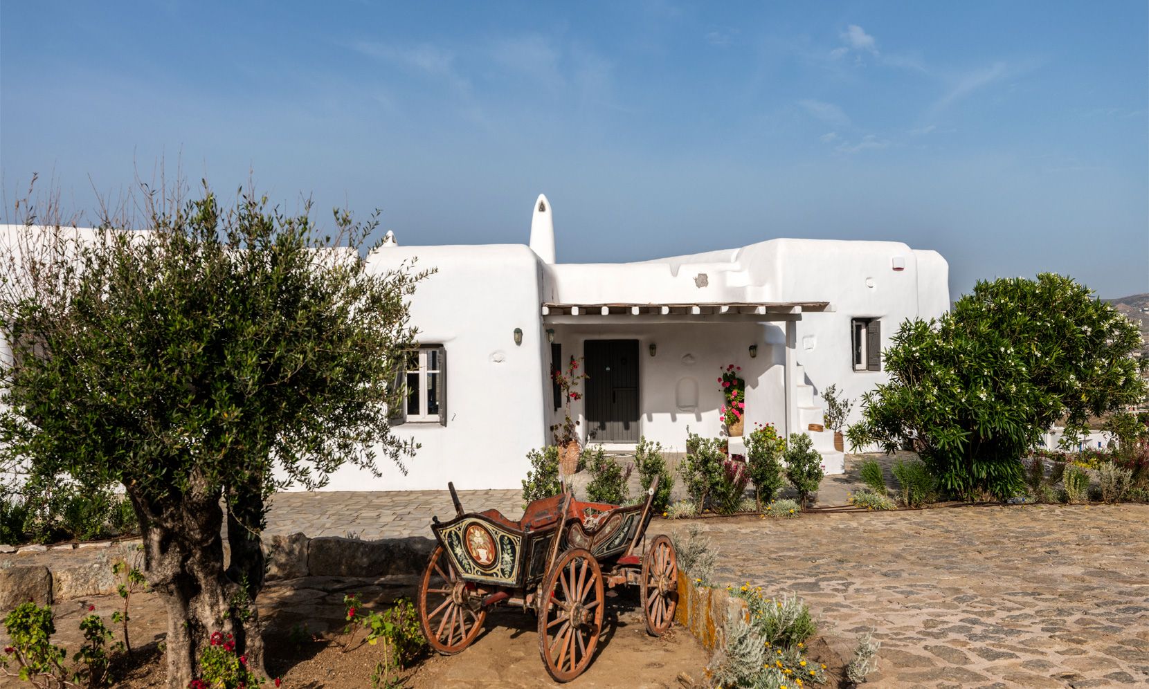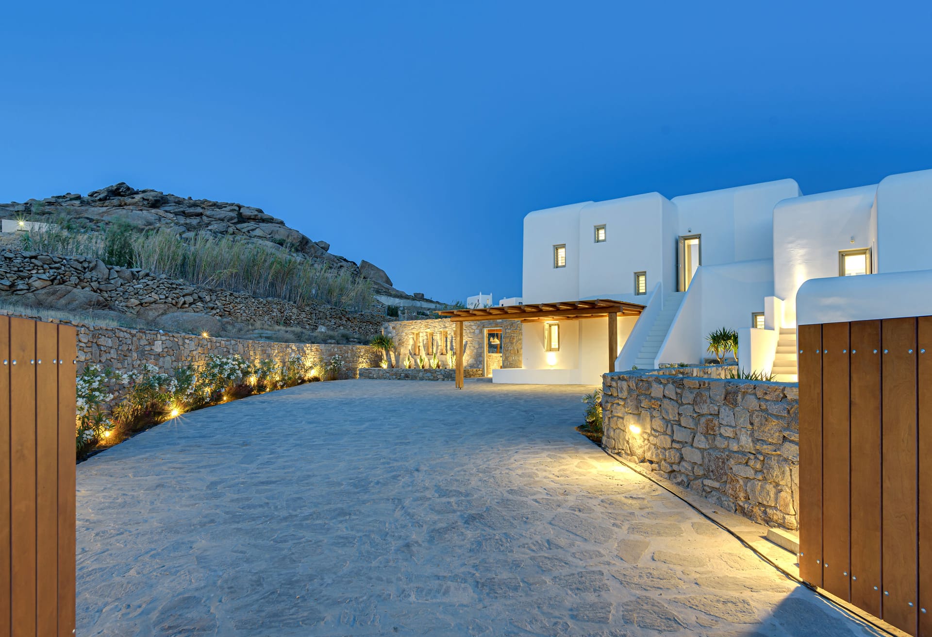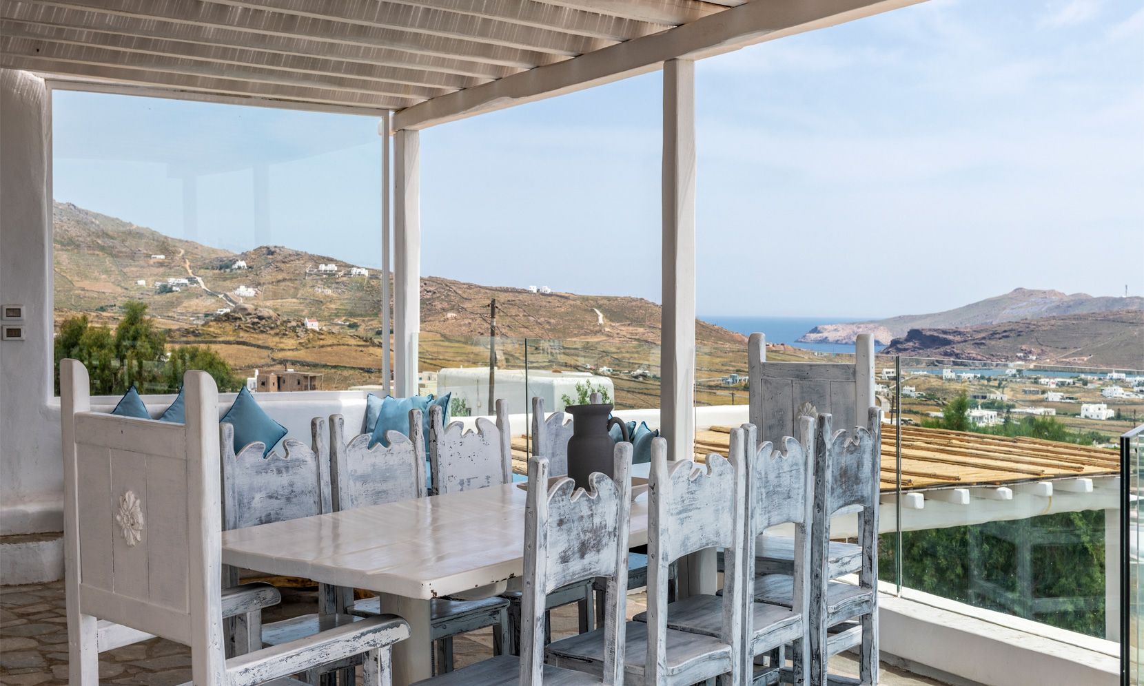 Ideally situated on a hillside and just 800 m. away from the sea, Mykonos Villa Madelyn gazes at the beautiful rocky landscape and the beach of Kalafatis with the fishing village of Agia Anna, in Divounia.