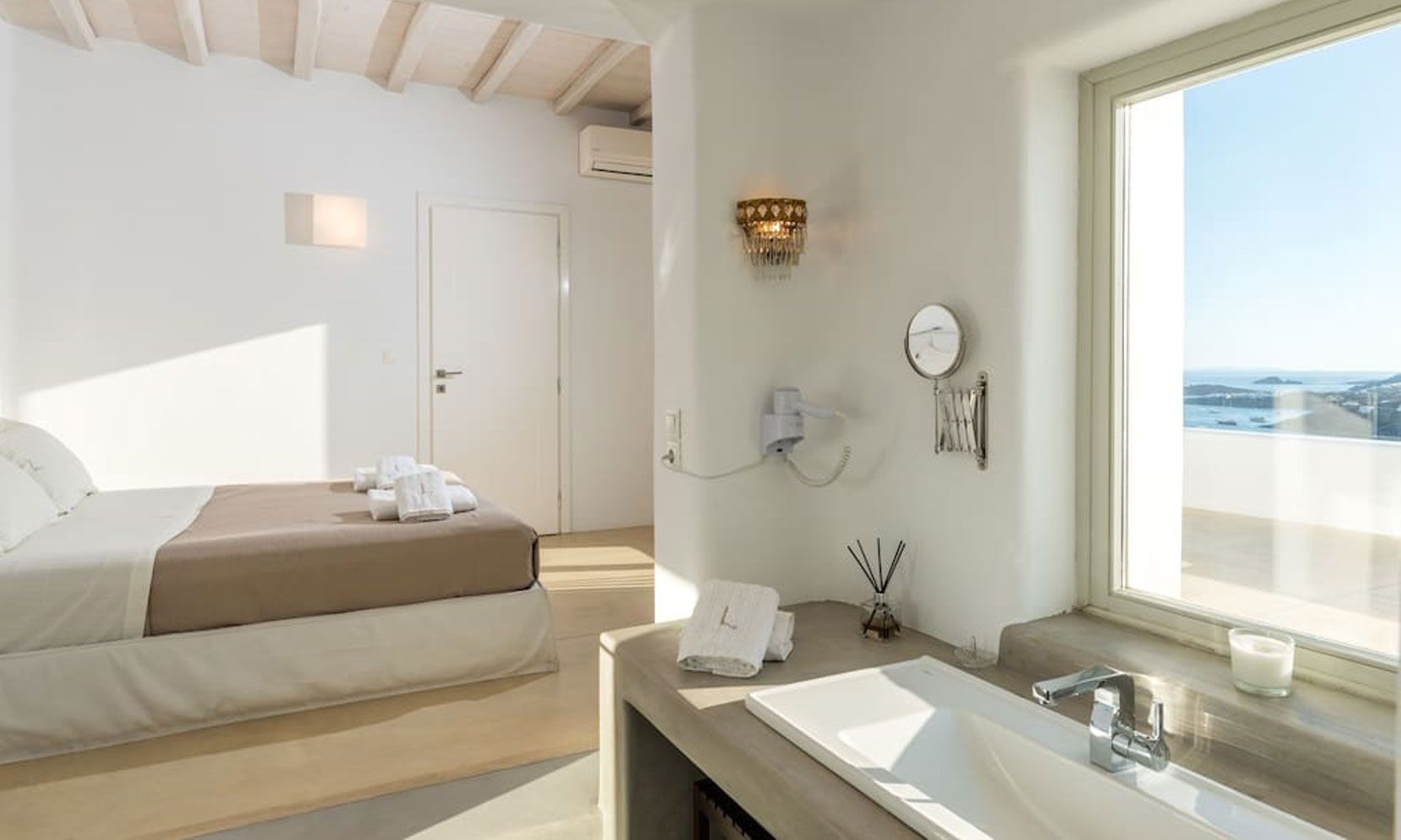 The Spacious Retreat encapsulates the spirit of Mykonos with charming details and a splendid hilltop view. In this hilltop setting you’ll feel like the master of beauty and serenity.