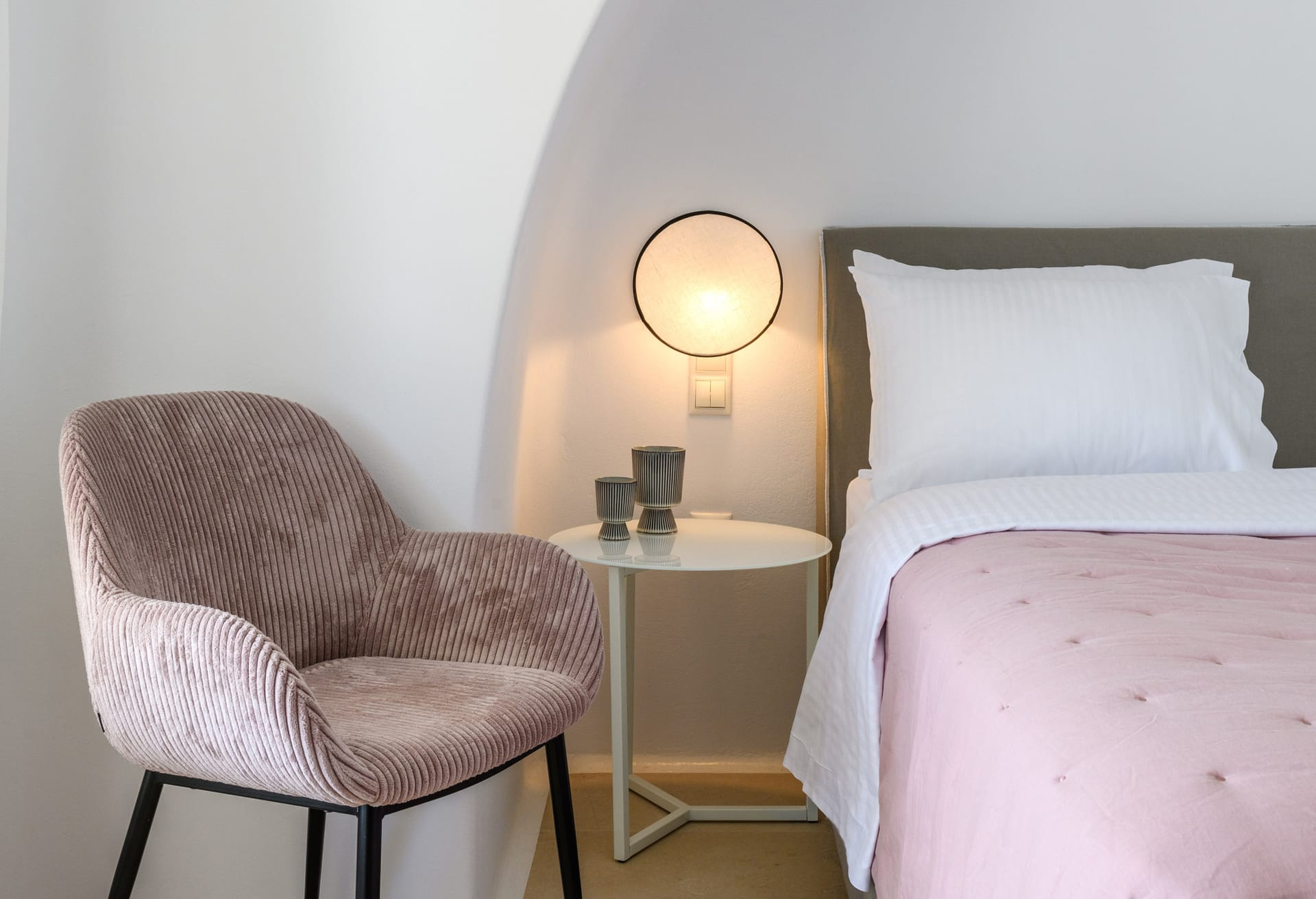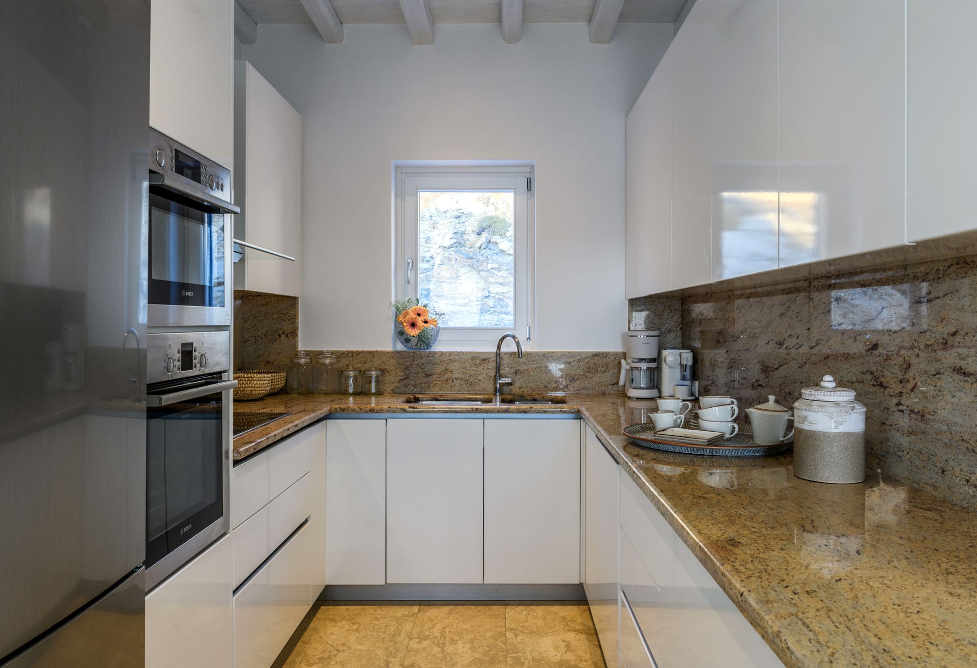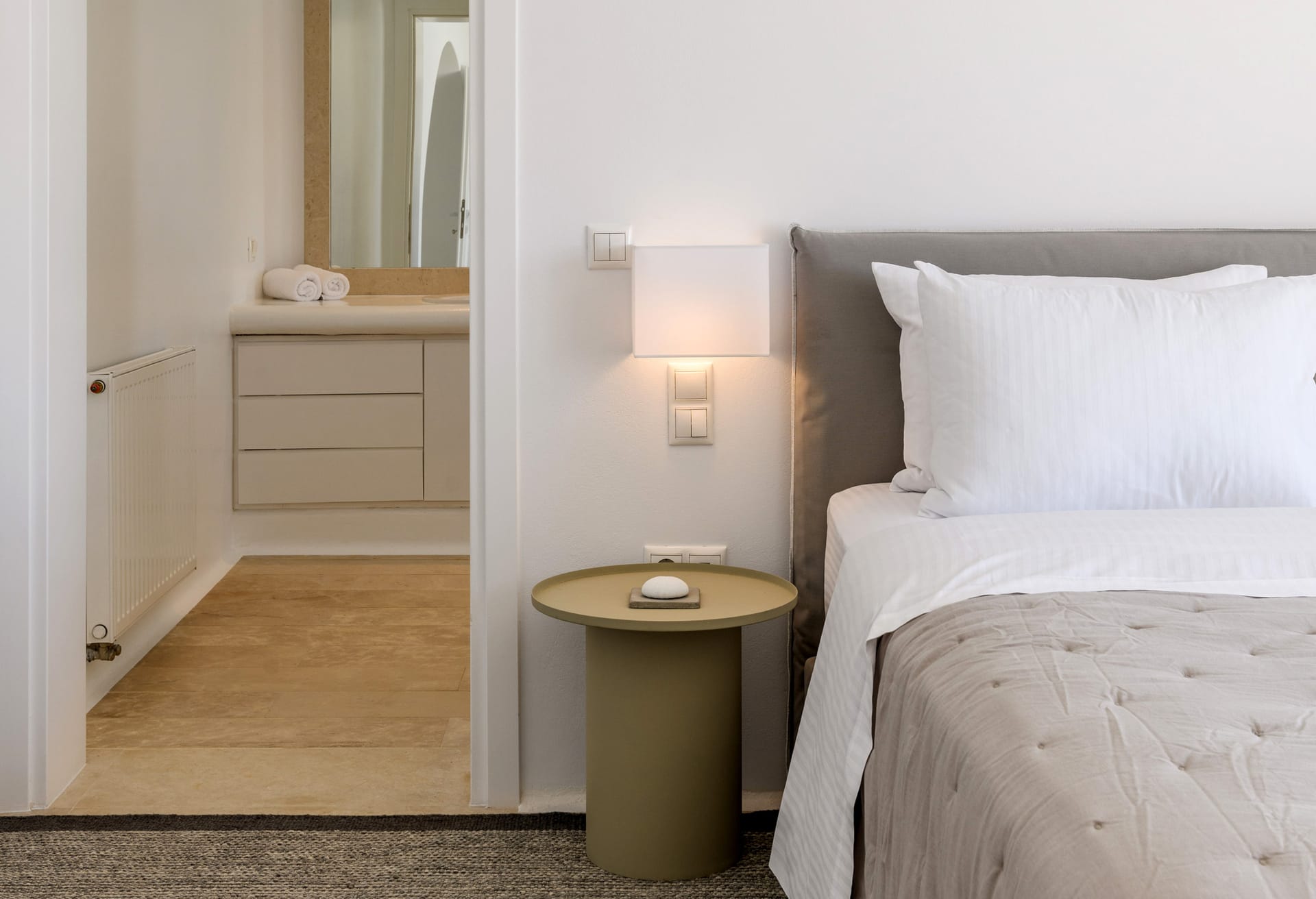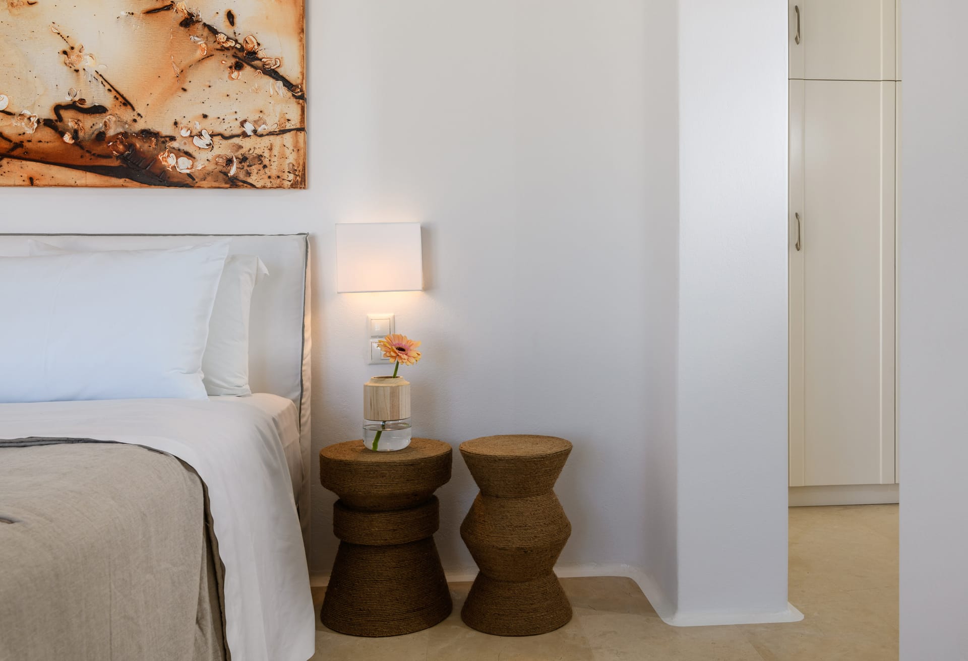Mykonos Villa Mikaela combines state-of-the-art amenities and traditional minimal architecture with spacious living areas and terraces. The white-washed interiors, decorated to the highest of standards, combine contemporary design with art and luxury and offer plenty of cozy corners that create a relaxing ambiance.