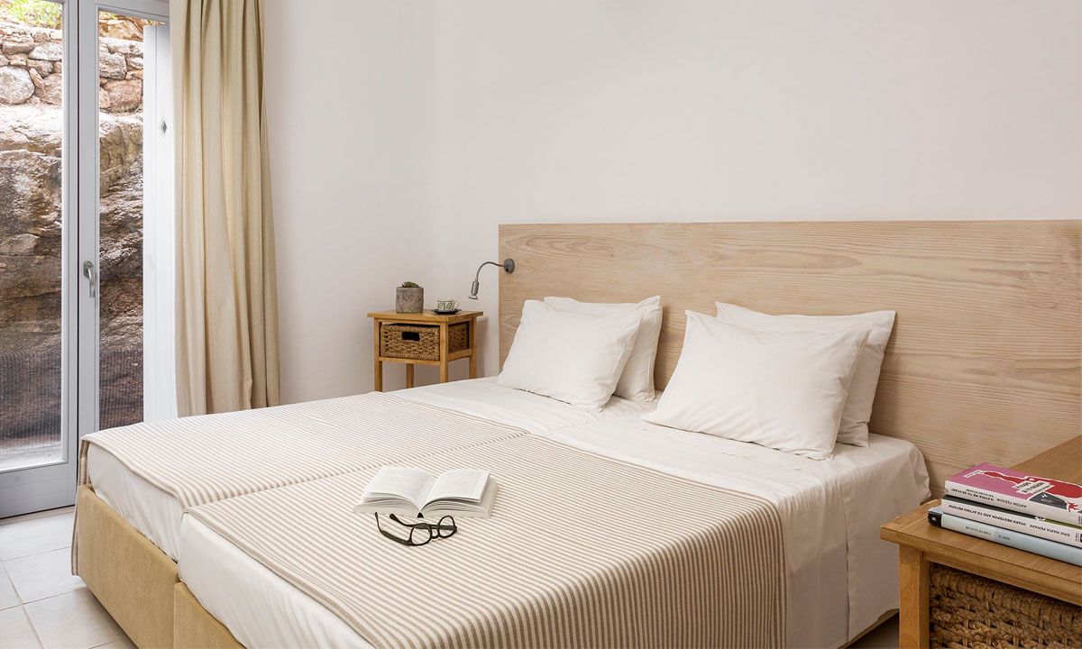 The villa can accommodate up to 8 persons in 3 spacious, tasteful and airy bedrooms and an inde- pendent guest room, all with en-suite bathrooms. Three of the bedrooms enjoy sea and pool view.