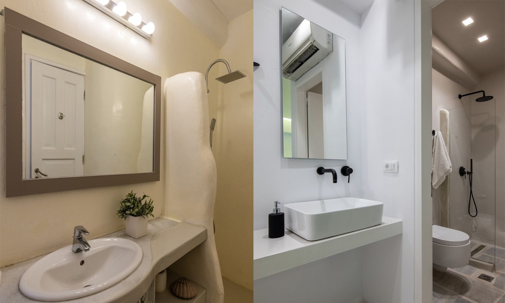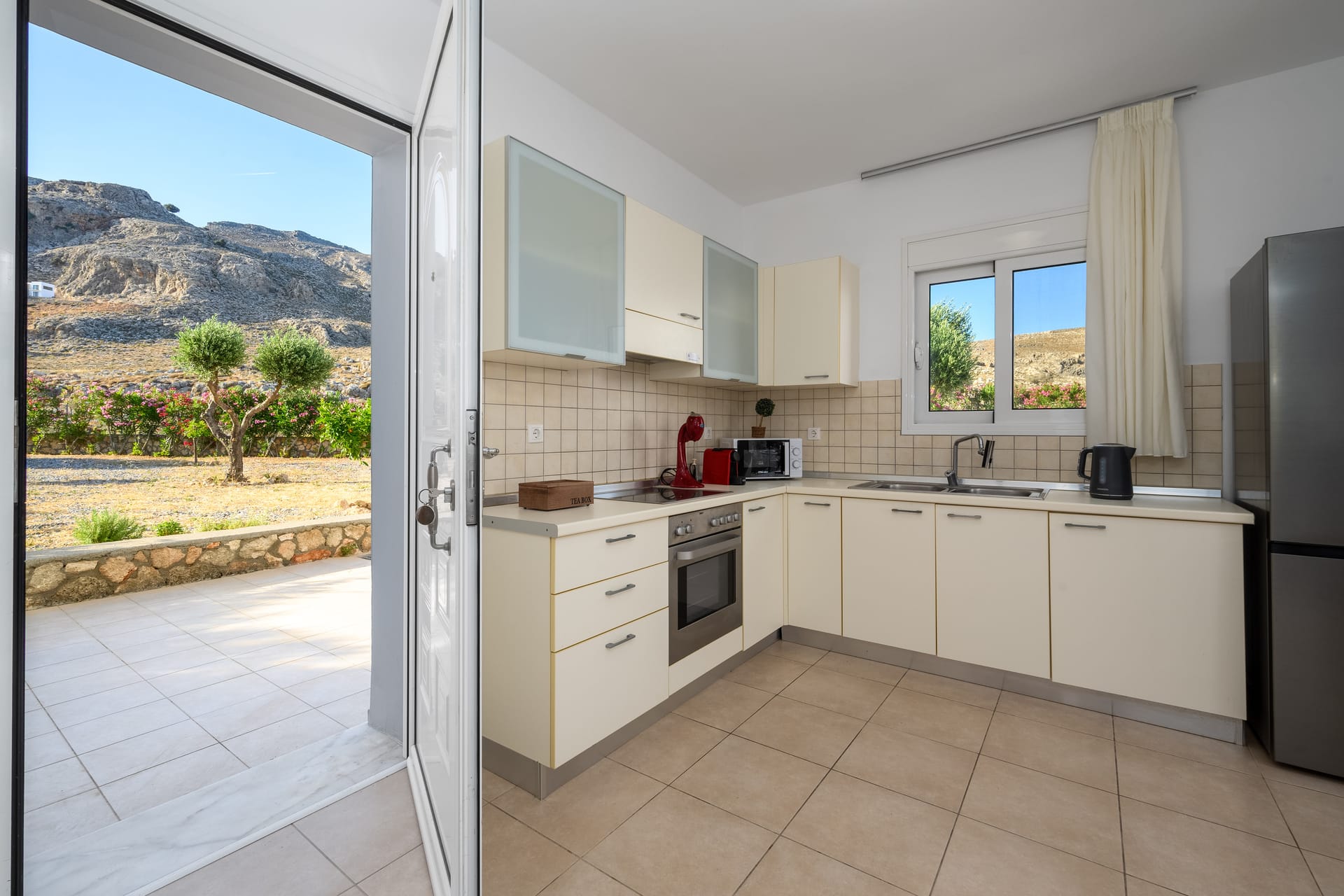 One double room (1.80×2) with ensuite shower, AC, living room, kitchenette, TV, sea view, each