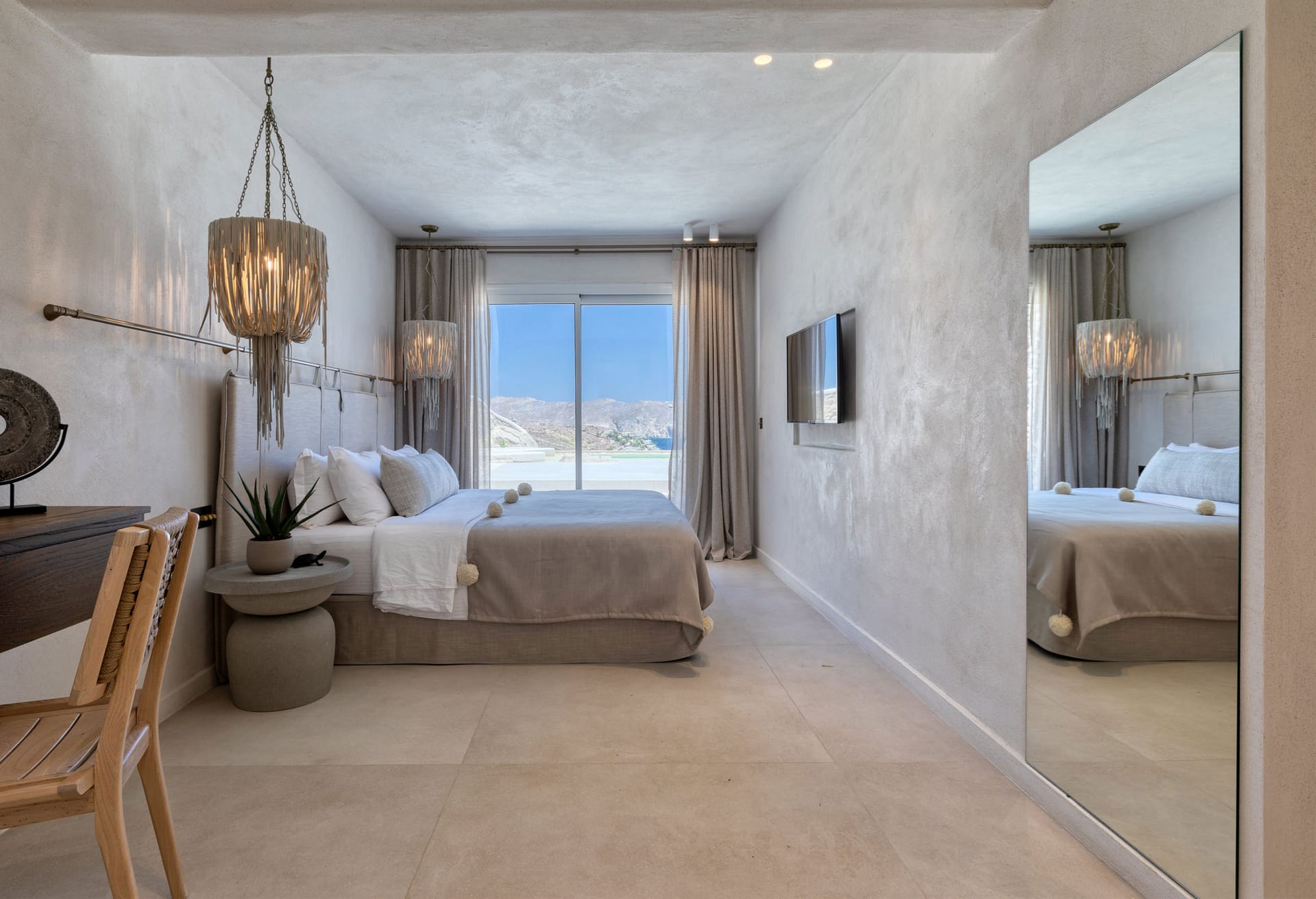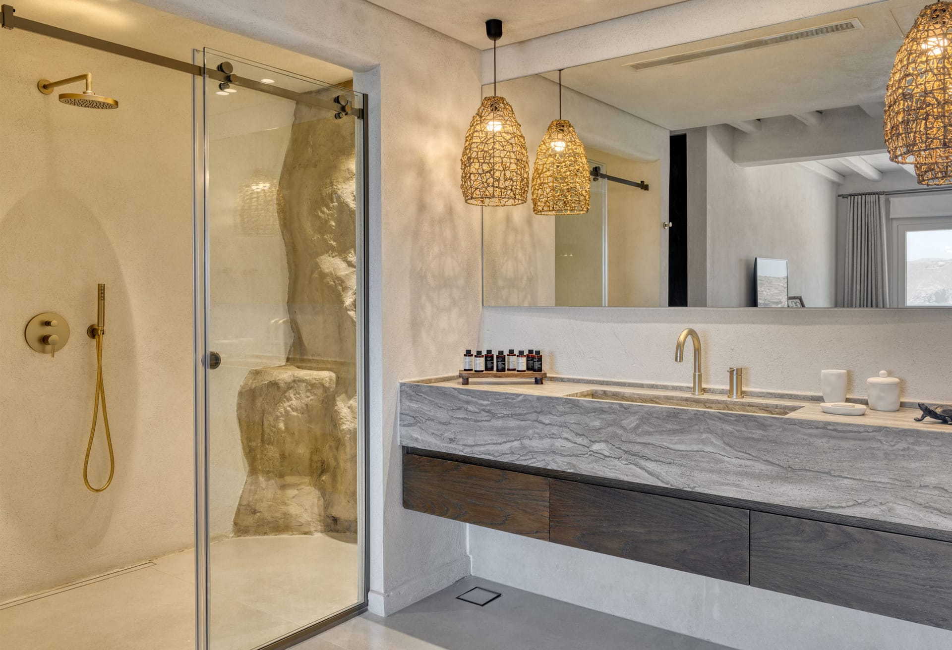 Mykonos Villa Nereides is comprised of 7 suites of 2 persons each and designed for luxury travelers. The villa has 2 private pools with infinite sea views, a variety of indoor and outdoor lounging and gathering spaces, a spa, gym, bar and a professional kitchen all in a relaxed and intimate setting. The villa is ideal for large families or groups of friends and can each accommodate up to 14 guests.