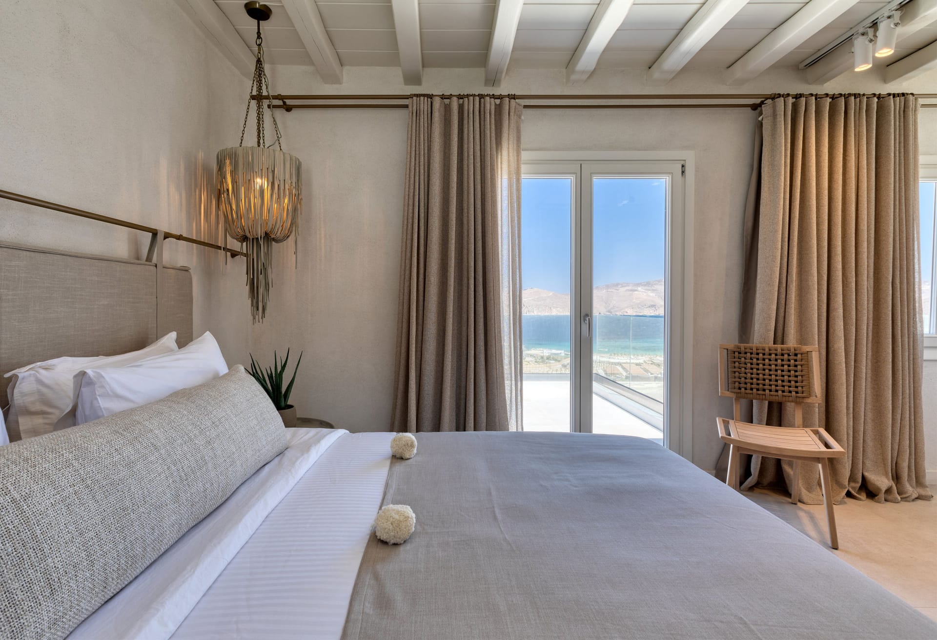 Mykonos Villa Nereides provides walking access to Panormos' long sandy beach with lovely on the beach restaurants and beach bars.