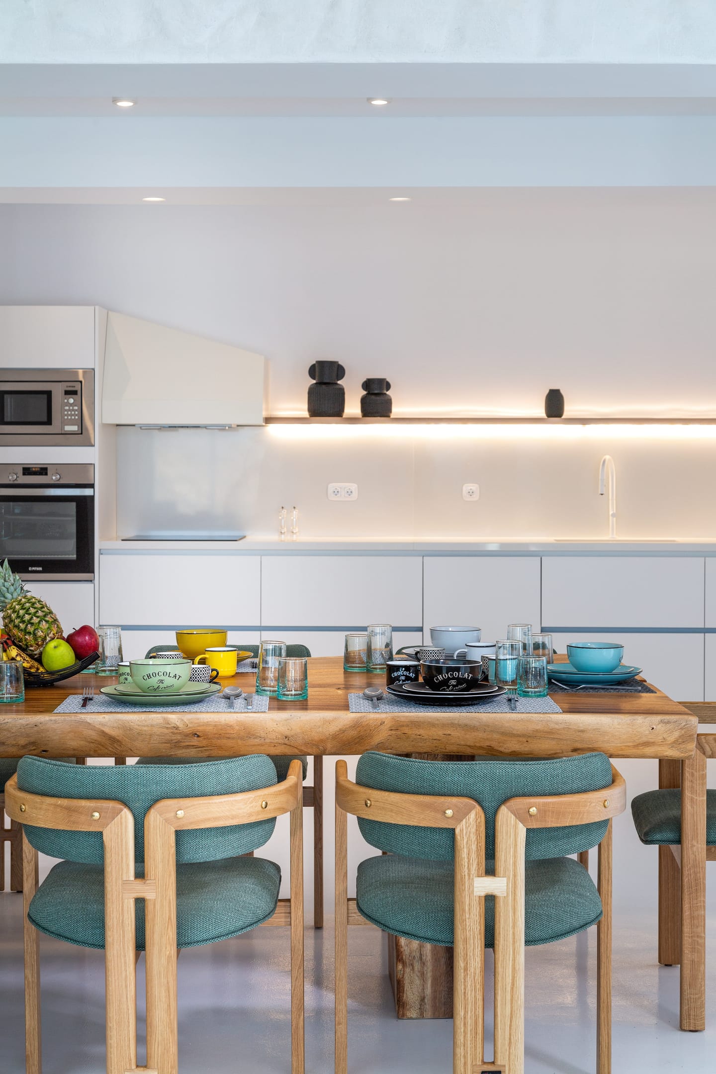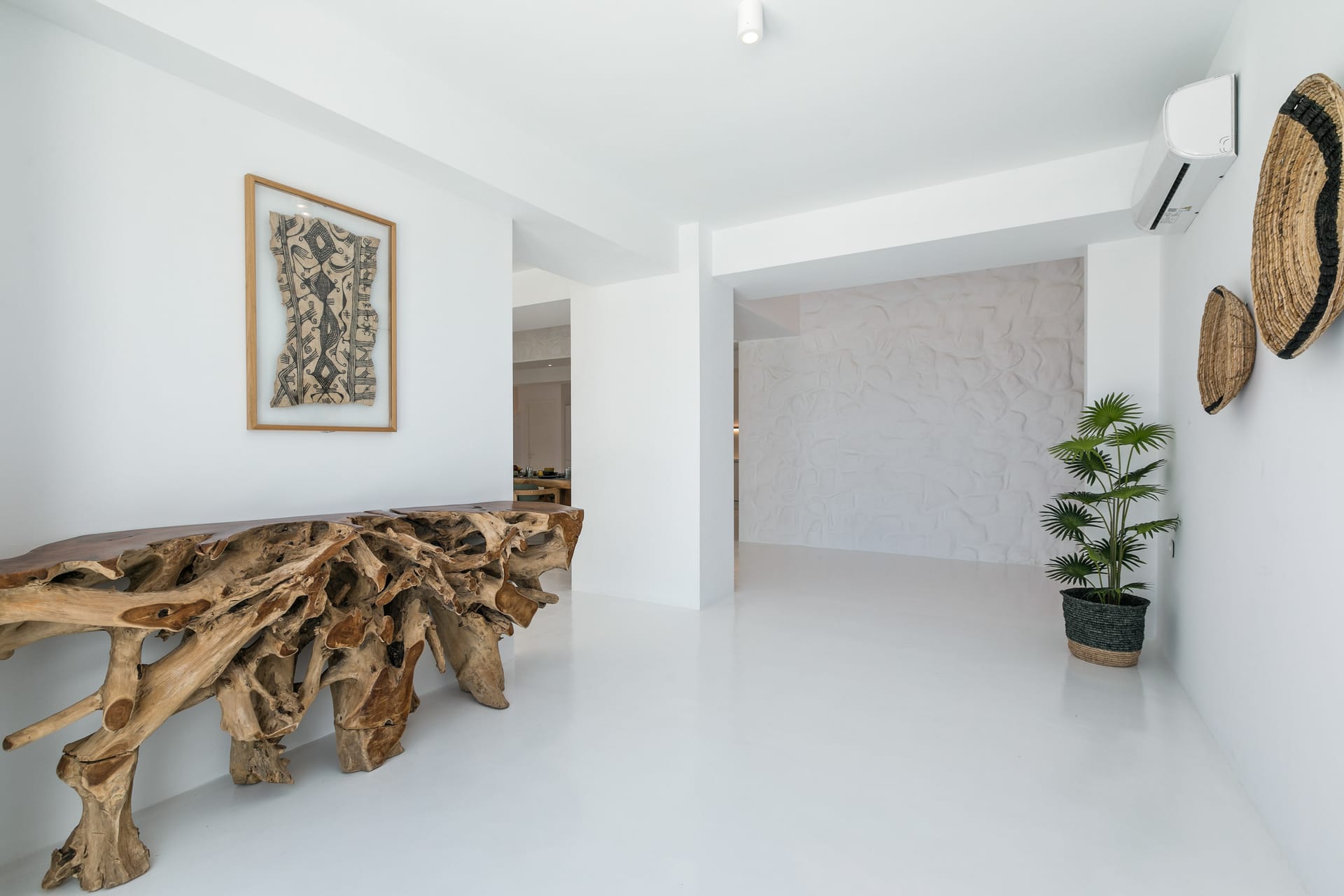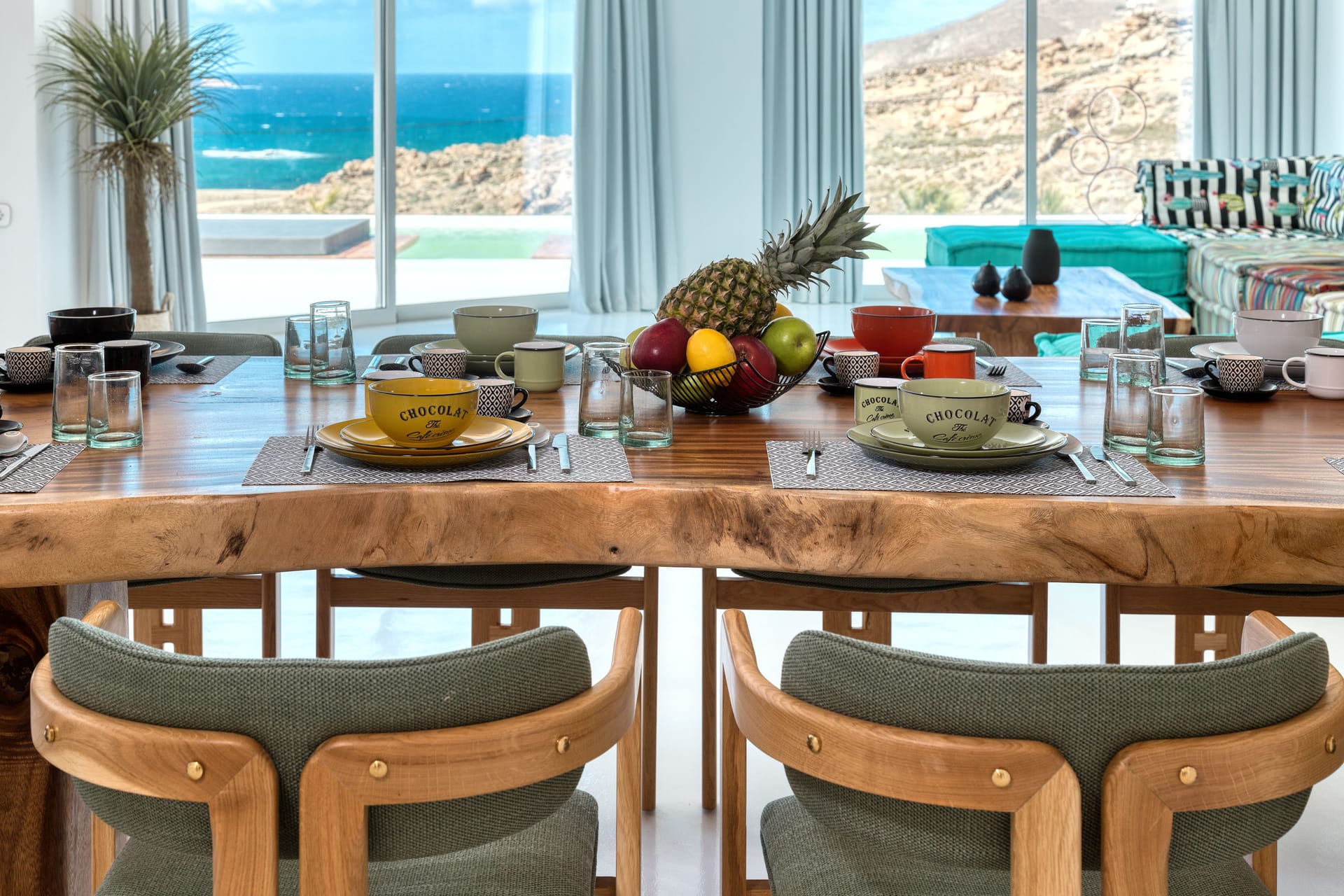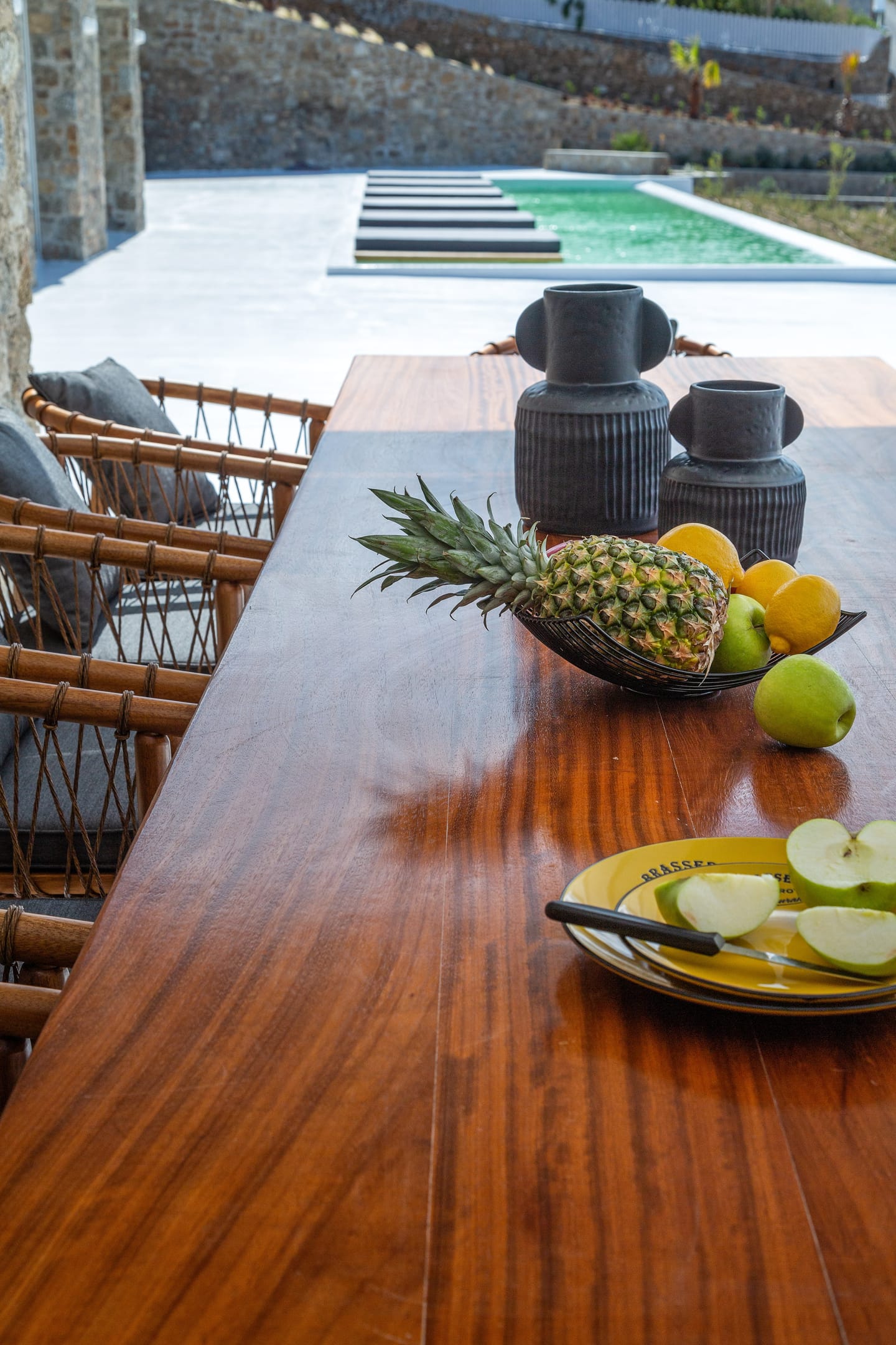 The luxury Mykonos Villa Noir interior design really speak for themselves. Fully equipped to the highest standards and featuring amazing private and communal areas, the villas guarantee pampering moments and intimacy for their lucky guests. From king-size beds to exceptionally equipped kitchens, huge living room areas and dining tables that waiting for you. Their minimal design and unique decoration are the perfect excuse to get those fab Instagram photos coming!