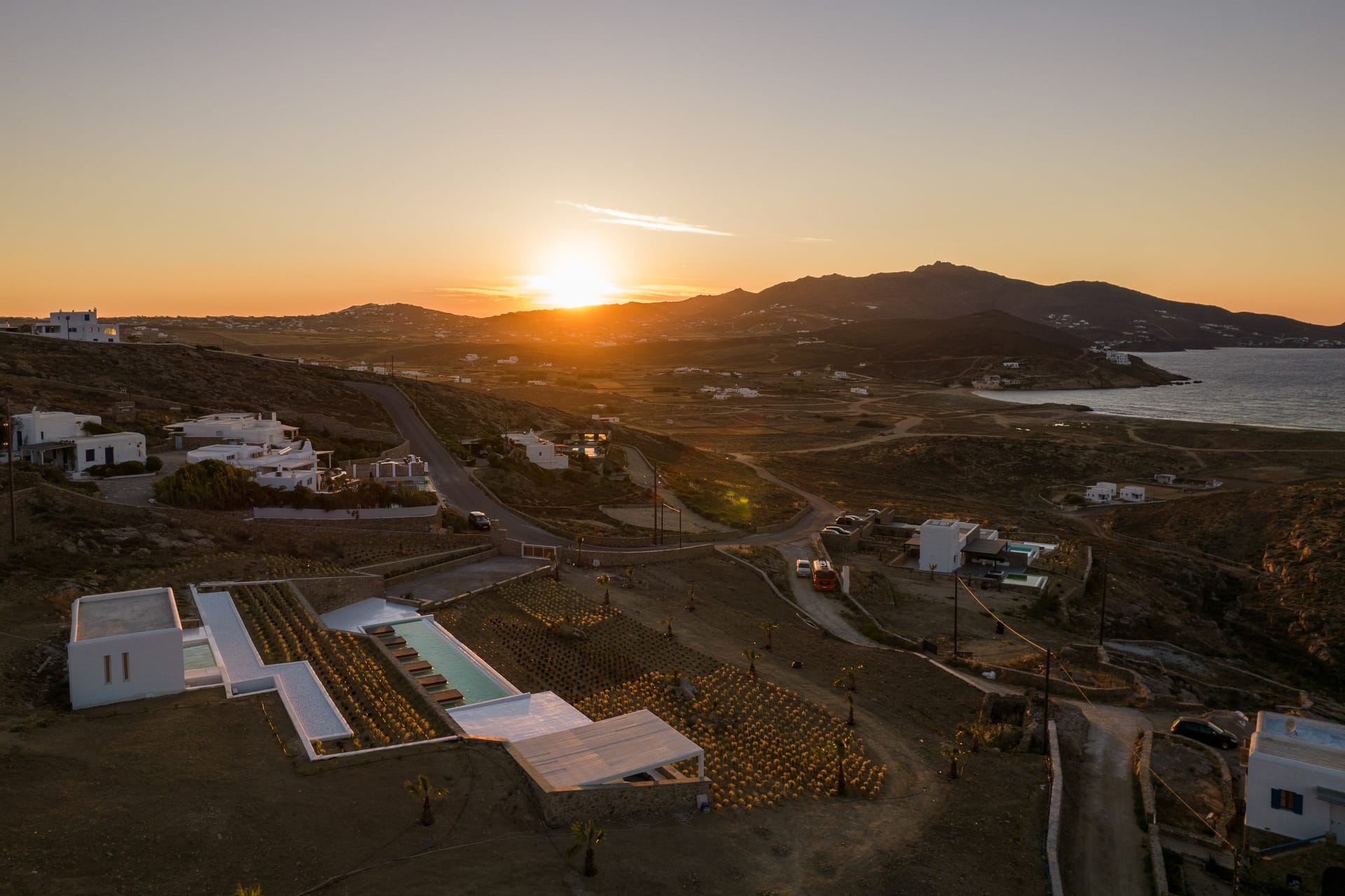 The villa has 6 deluxe en-suite bedrooms for guests to enjoy every moment of their Mykonos getaway in absolute zen. The villa is blessed with a fantastic location, located in the area of Ftelia , close to Ftelia Beach and Alemagou beach bar restaurant. The uninterrupted views from the villa terrace to the beach will amaze you.
