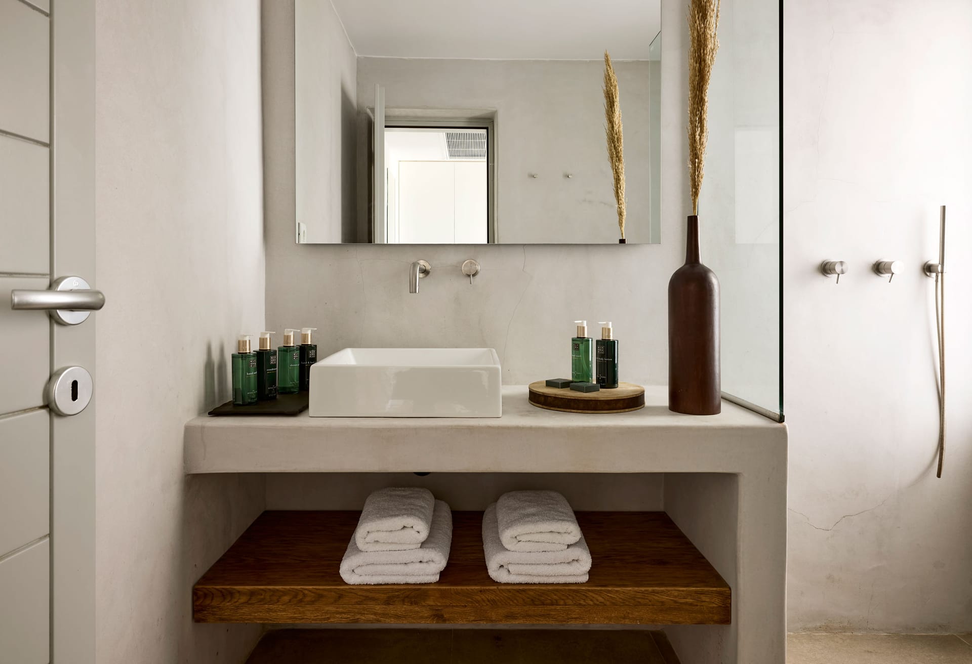 Apart from the main house this unique villa exhibits four independent suite bedrooms which are located at the pool level, the Jacuzzi level and the Spa level of the villa. All of the suite bedrooms are uniquely furnished exuding the luxury ambience of a boutique hotel. All villa suites feature spacious balconies or verandas, perfectly oriented towards the romantic sunset, rustic furnishing and layout.
