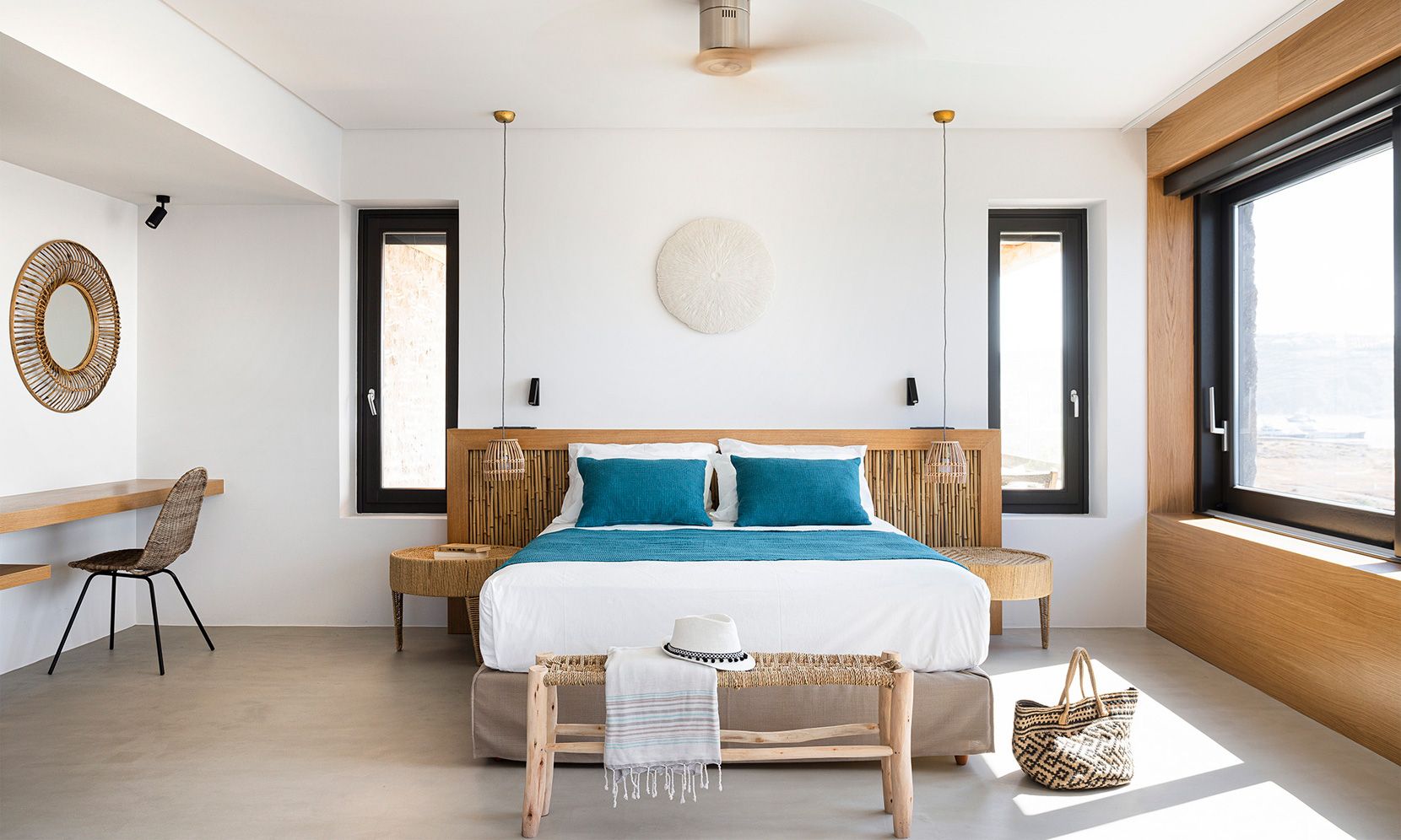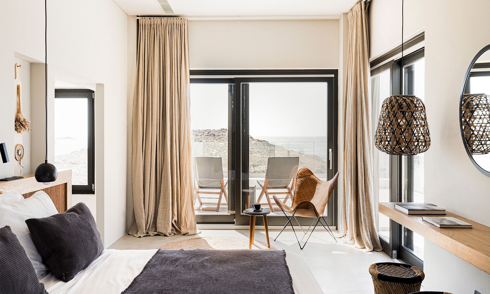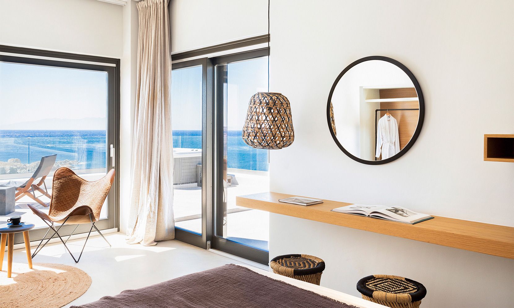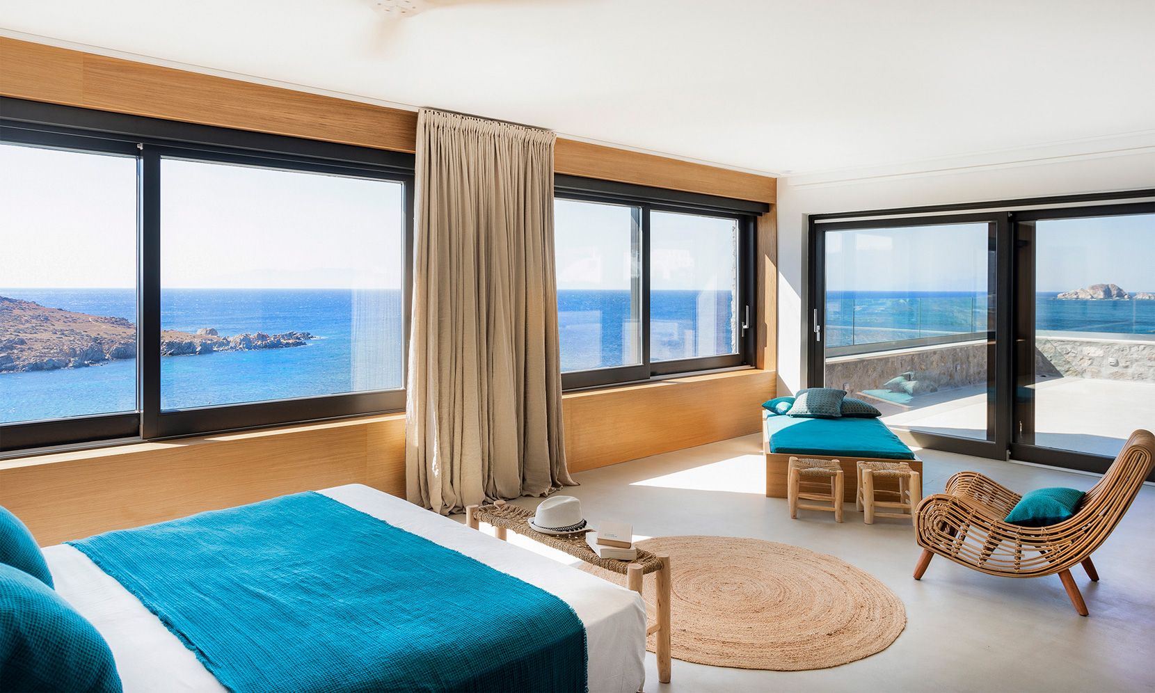 – 1 en suite double bedroom with sea view, queen bed and double rain showers/sinks (opens to the fire pit terrace)