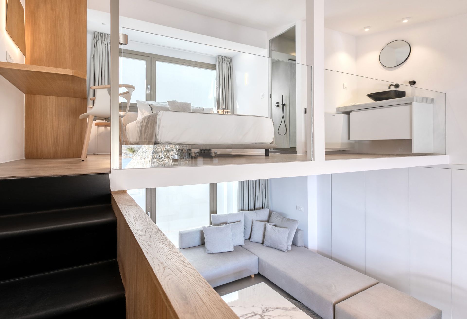 Airy and Minimal Panormos Bay Signature Maisonette combines chic décor and intimacy creating a sense of refined luxury.