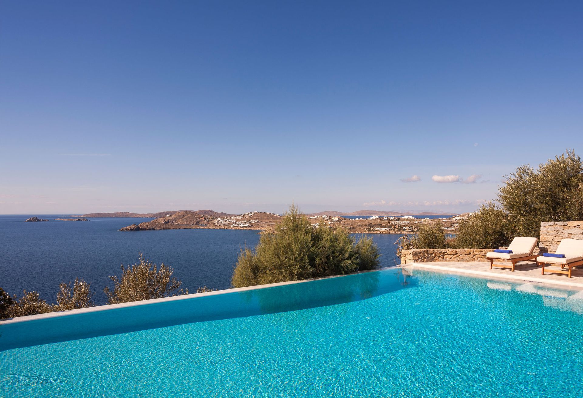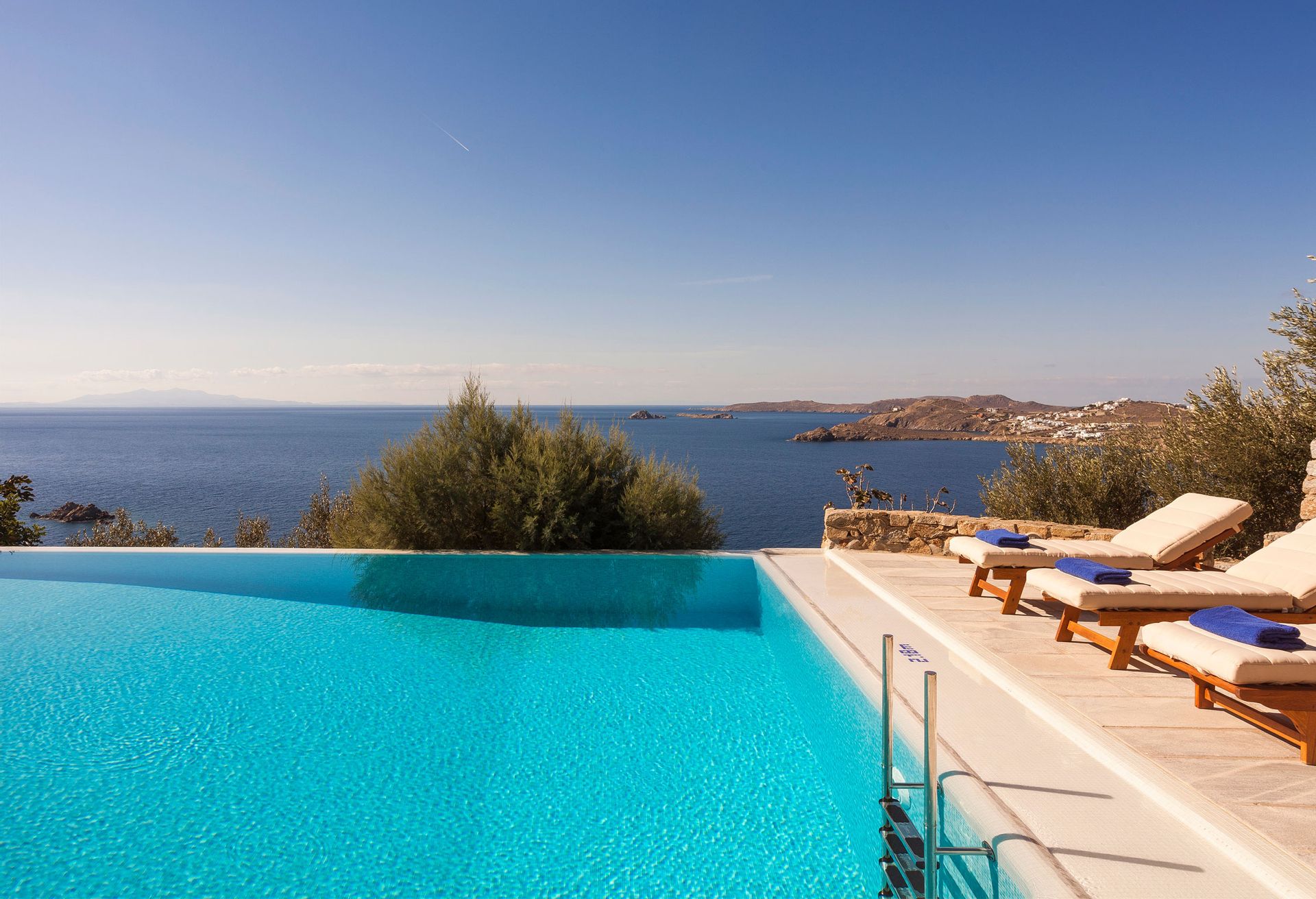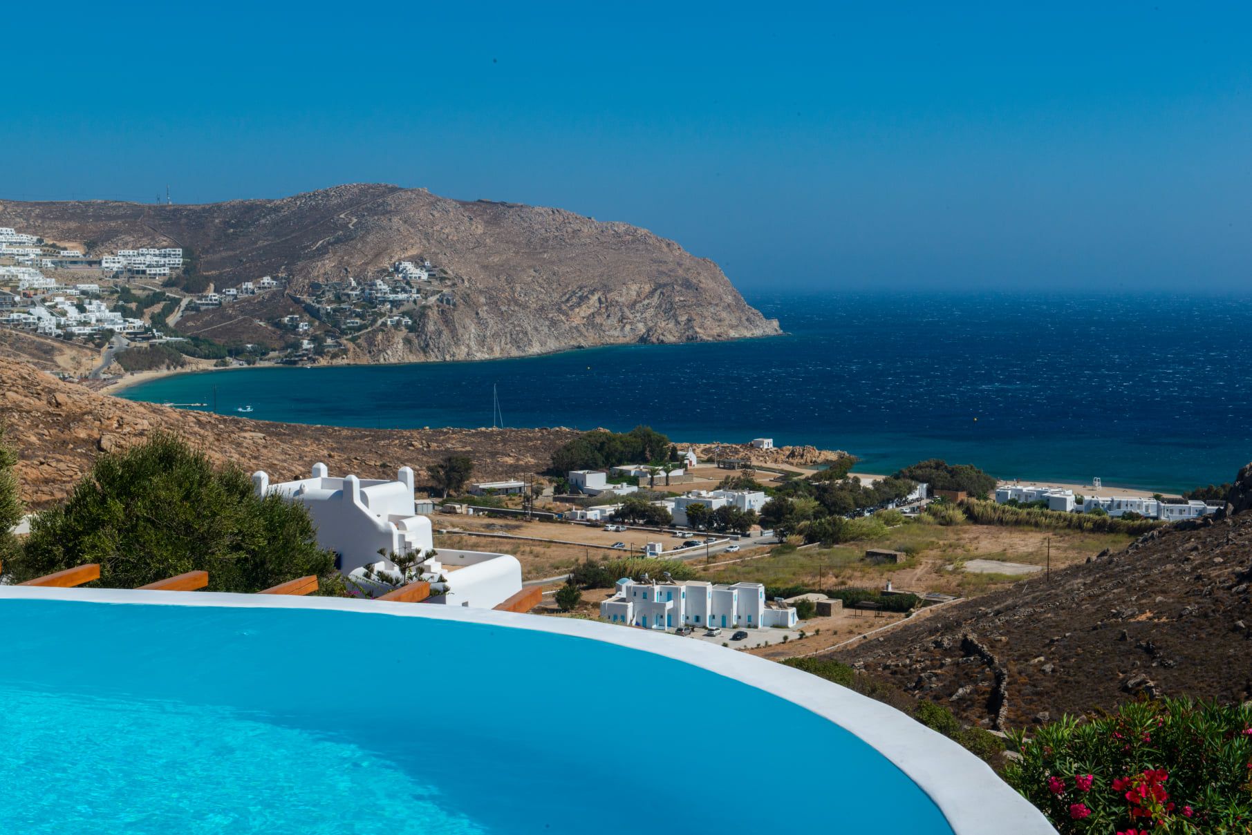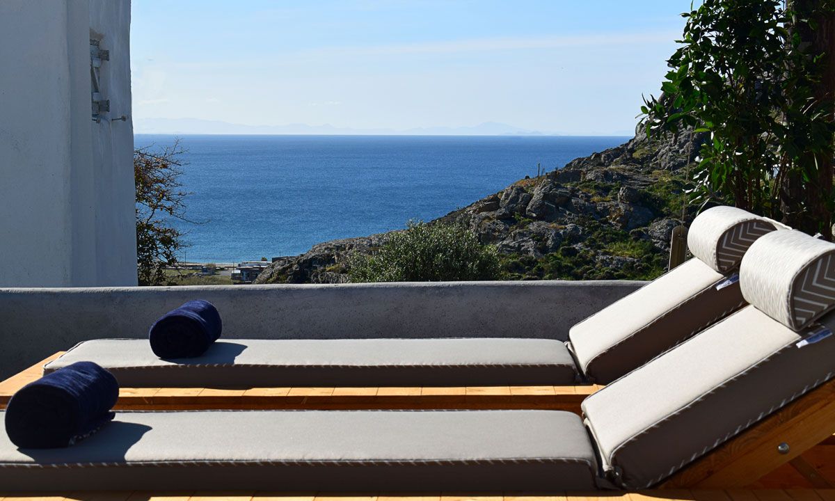 Villa Rhea is only a 10 minute walk from the famous cosmopolitan beach Kalo Livadi where all the restaurants, beach clubs and water sports are located.