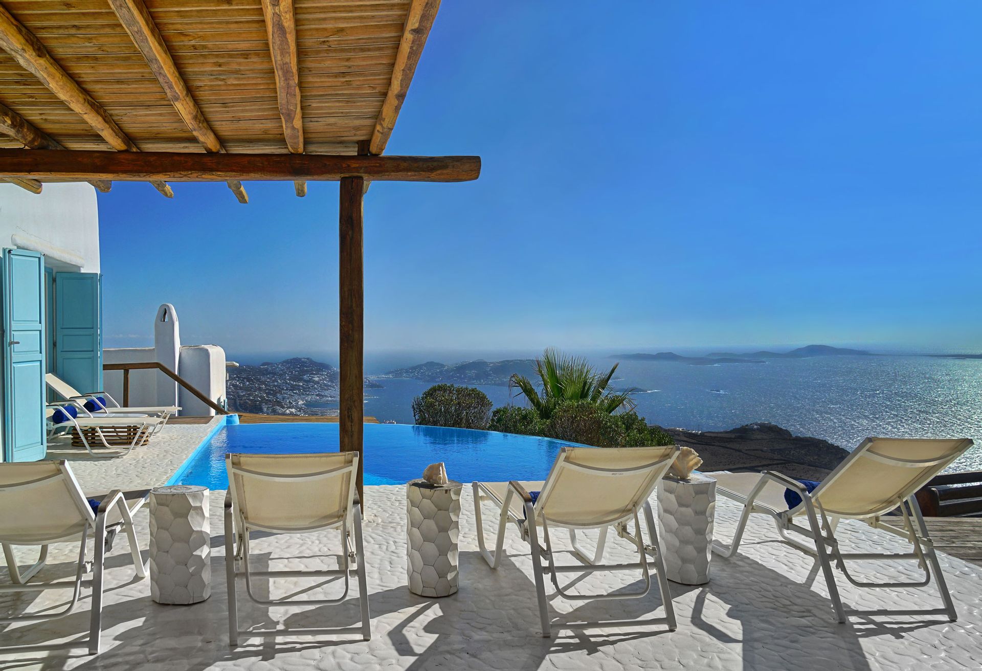 The state is built to offer the most panoramic breathtaking view, facing the sunset and sharing an 180 degrees view of Mykonos Island during day and night. Including 11 bedrooms, 12 bathrooms, 2 pools, 2 kitchens and other exclusive facilities, this villa of 1000 sq.m is made to offer the ultimate luxury, comfort ability and relaxation to all guests visiting Mykonos island.