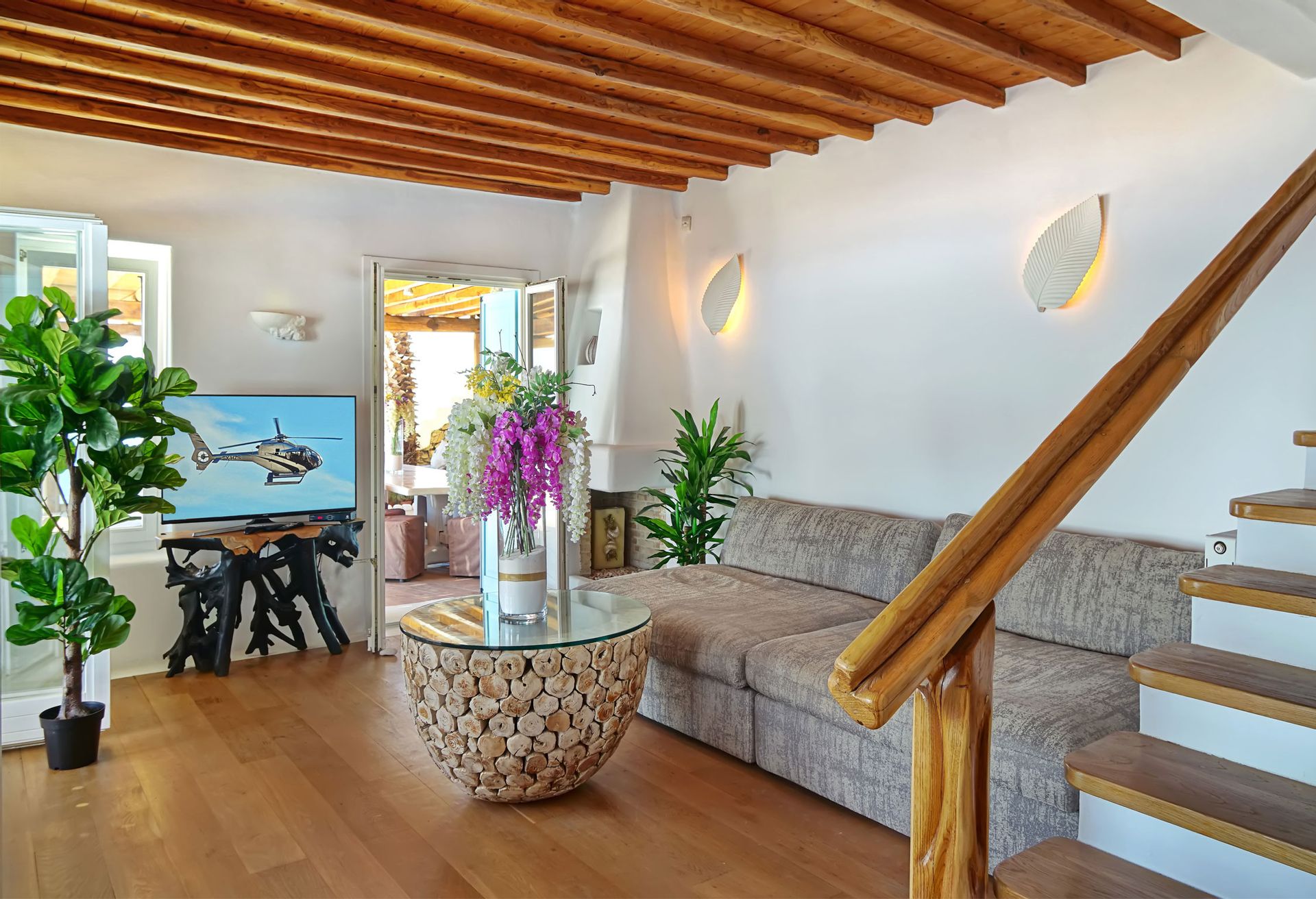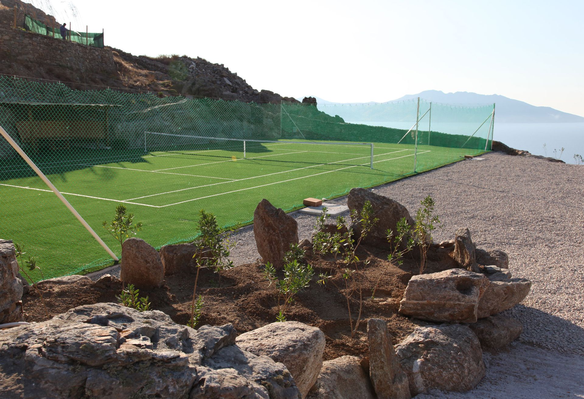 Built in the area Kastro, just 10 minutes from downtown by driving, the villa offers total privacy as the guests can also land in the helipad located just next to the villa. Mykonos Villa Thalassa 1 shares facilities like tennis court, gym and helipad and occupies a well trained multi-language staff for all needs.